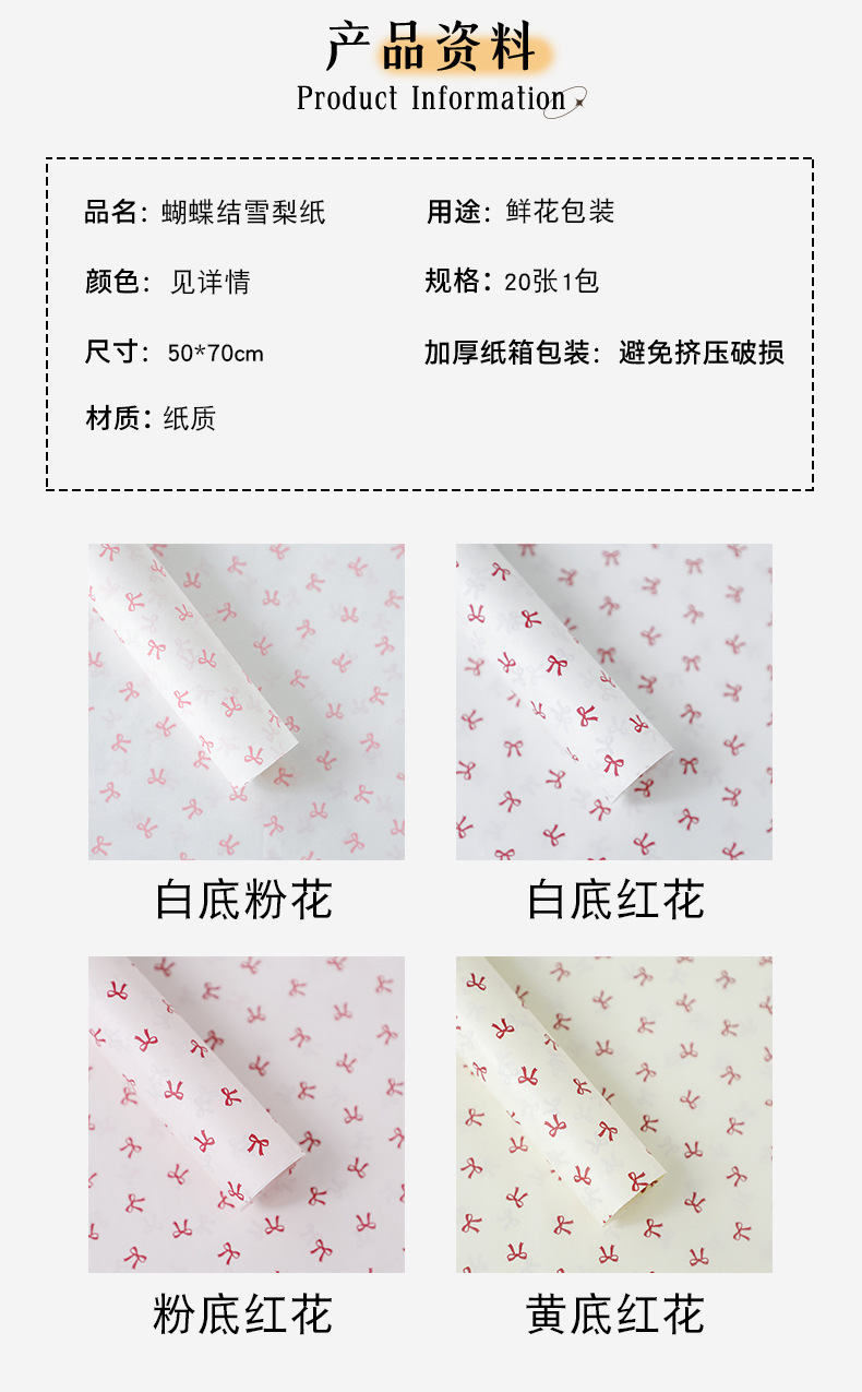 加厚印花蝴蝶结雪梨纸花束礼物包装纸鲜花女生手工diy花艺店资材