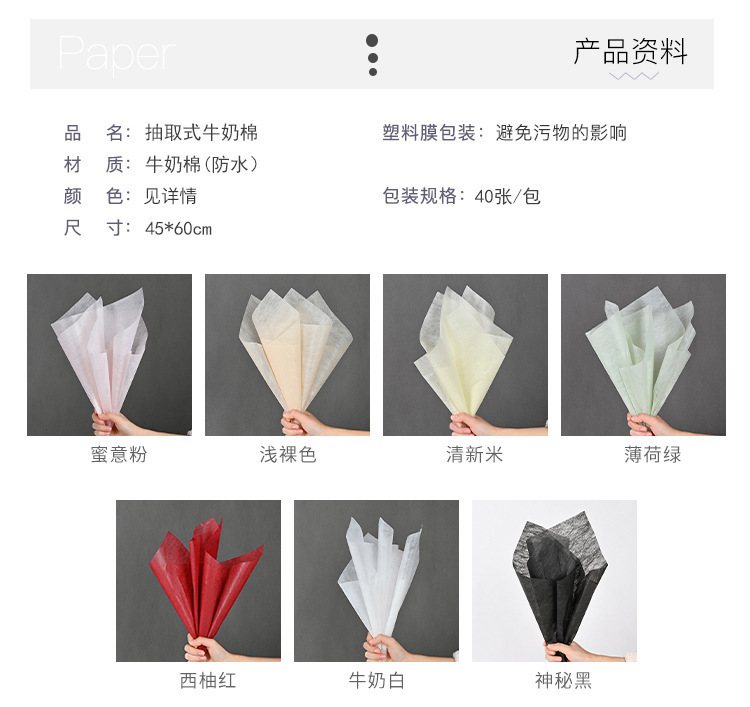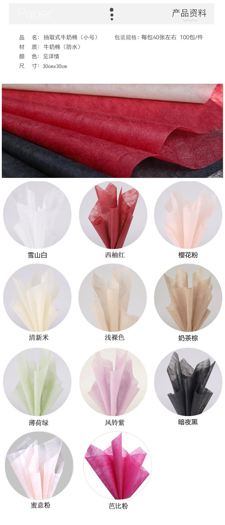 花颜花艺资材抽取式牛奶棉纸水果鲜花包装纸防水包花内衬纸花束纸