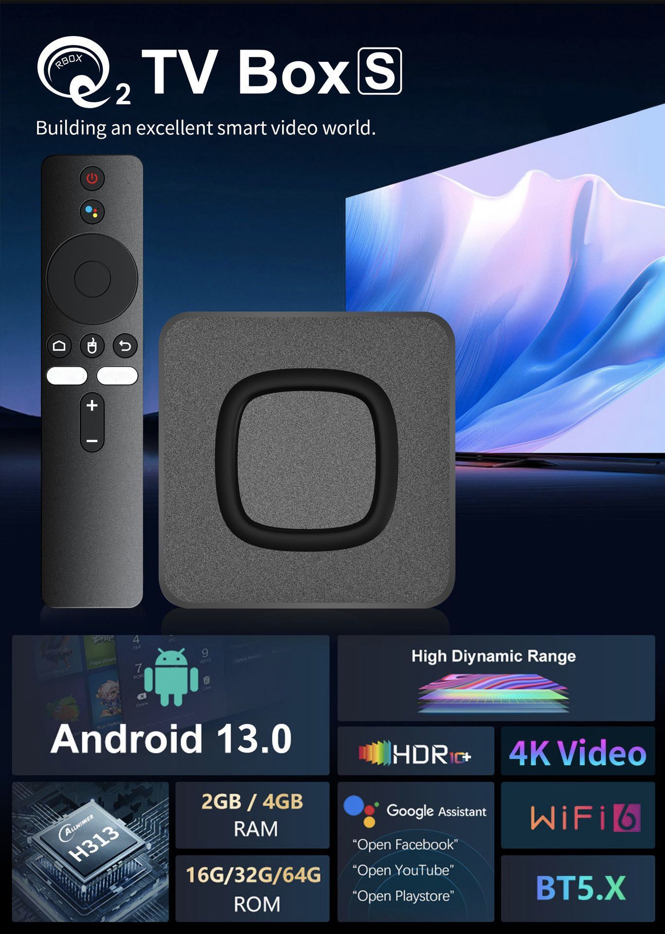 Q2 tv box网络机顶盒跨境电视机顶盒安卓14wifi 4k高清智能盒子
