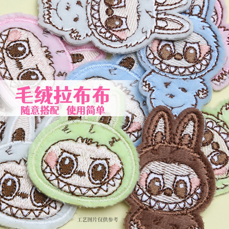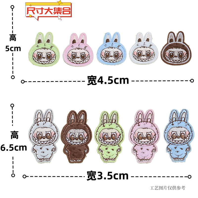 免缝毛绒小号兔子l*bubu装饰补丁布贴 衣服包包DIY刺绣周边