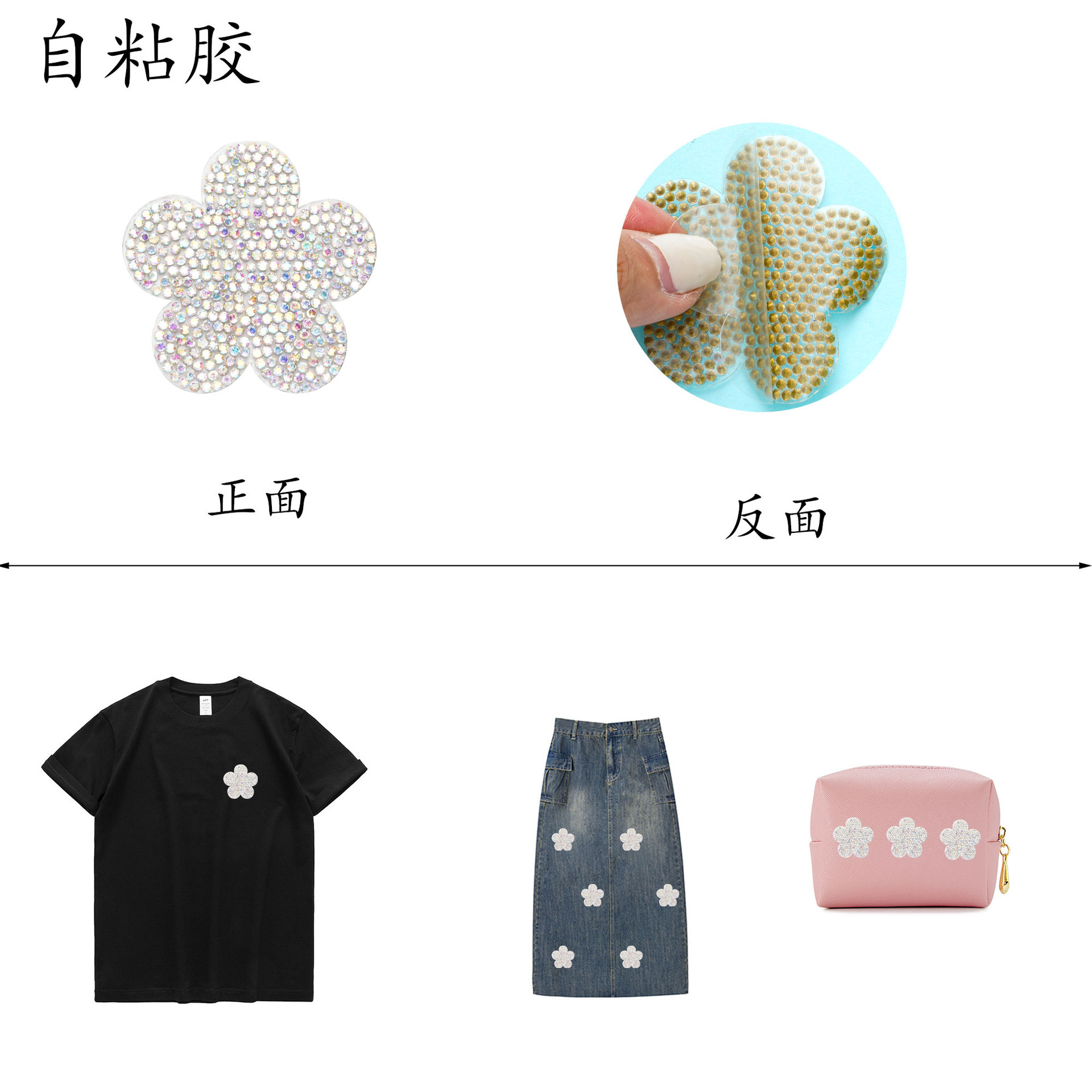 跨境AB彩钻花朵烫钻贴 DIY服装箱包装饰自粘布贴 烫钻烫图 补丁贴
