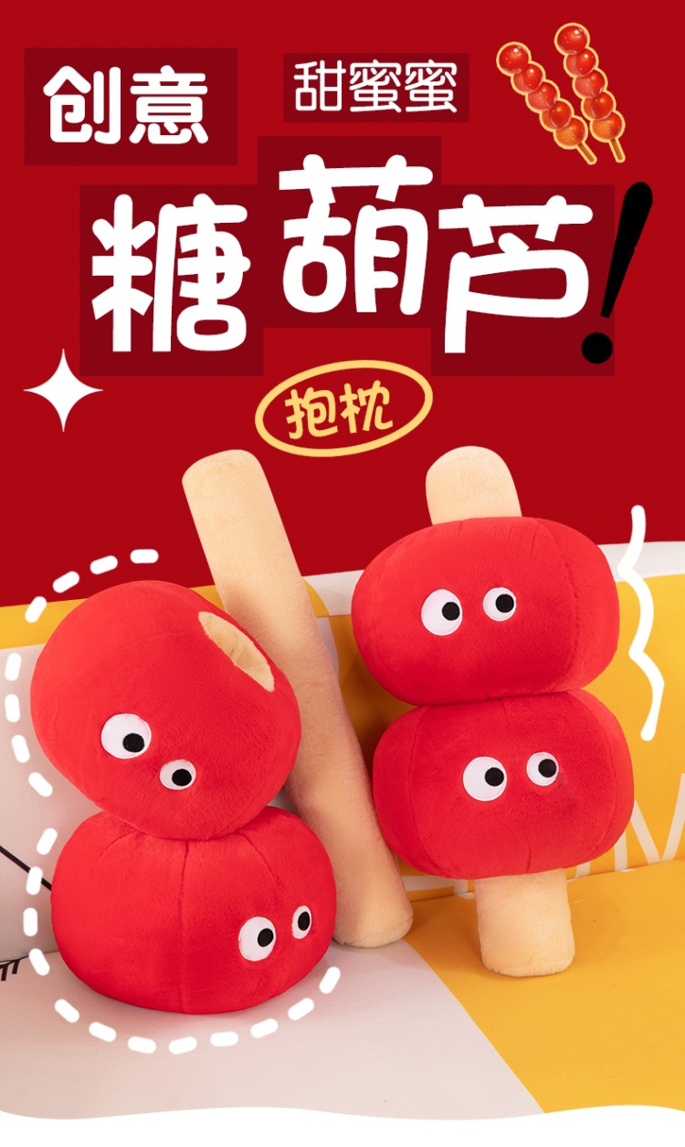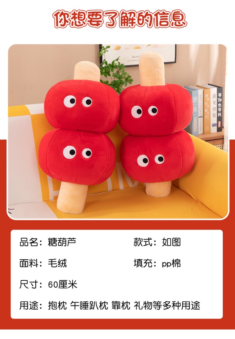 山楂冰糖葫芦玩偶可爱毛绒玩具摆件长条睡觉抱抱枕女生圣诞节礼物