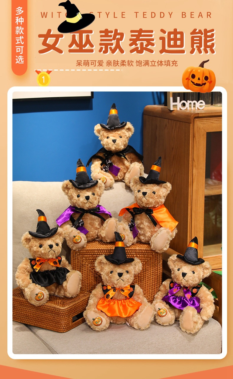 跨境新款南瓜熊毛绒玩具可爱万圣节装饰公仔儿童布娃娃玩偶礼物女
