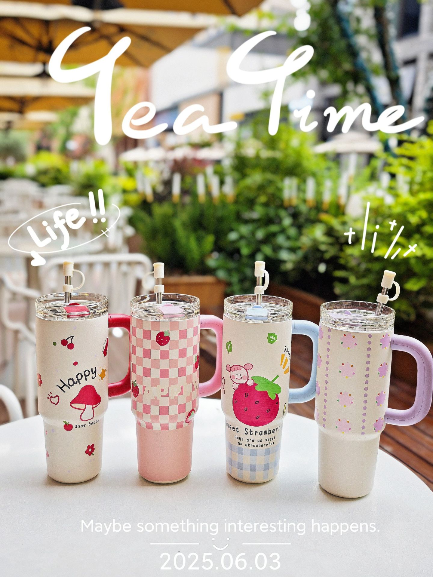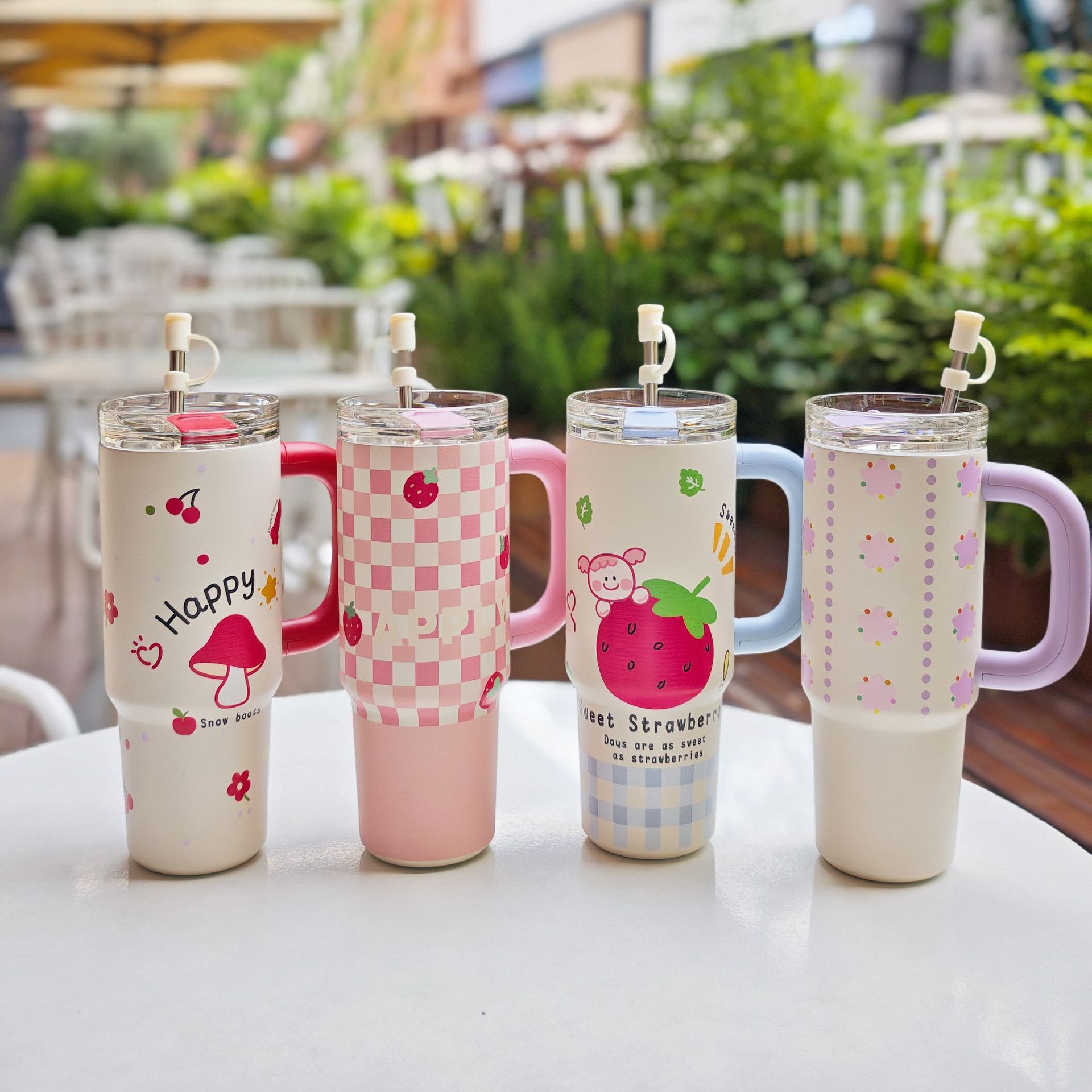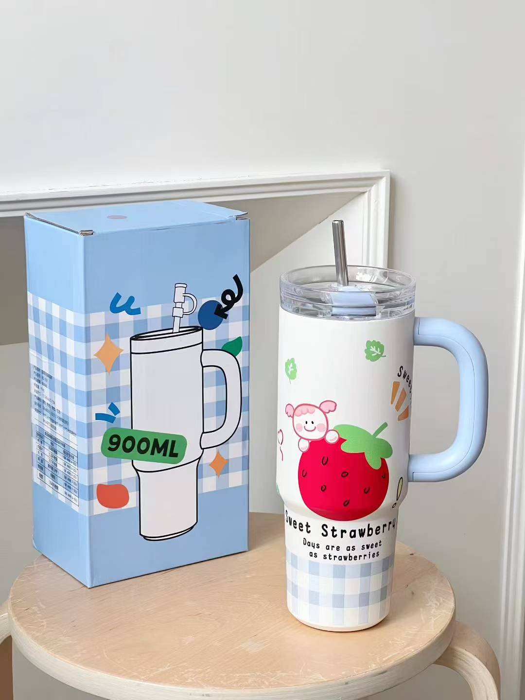 大容量水果冰霸杯女生高颜值保温杯真空带吸管杯不锈钢手把杯批发