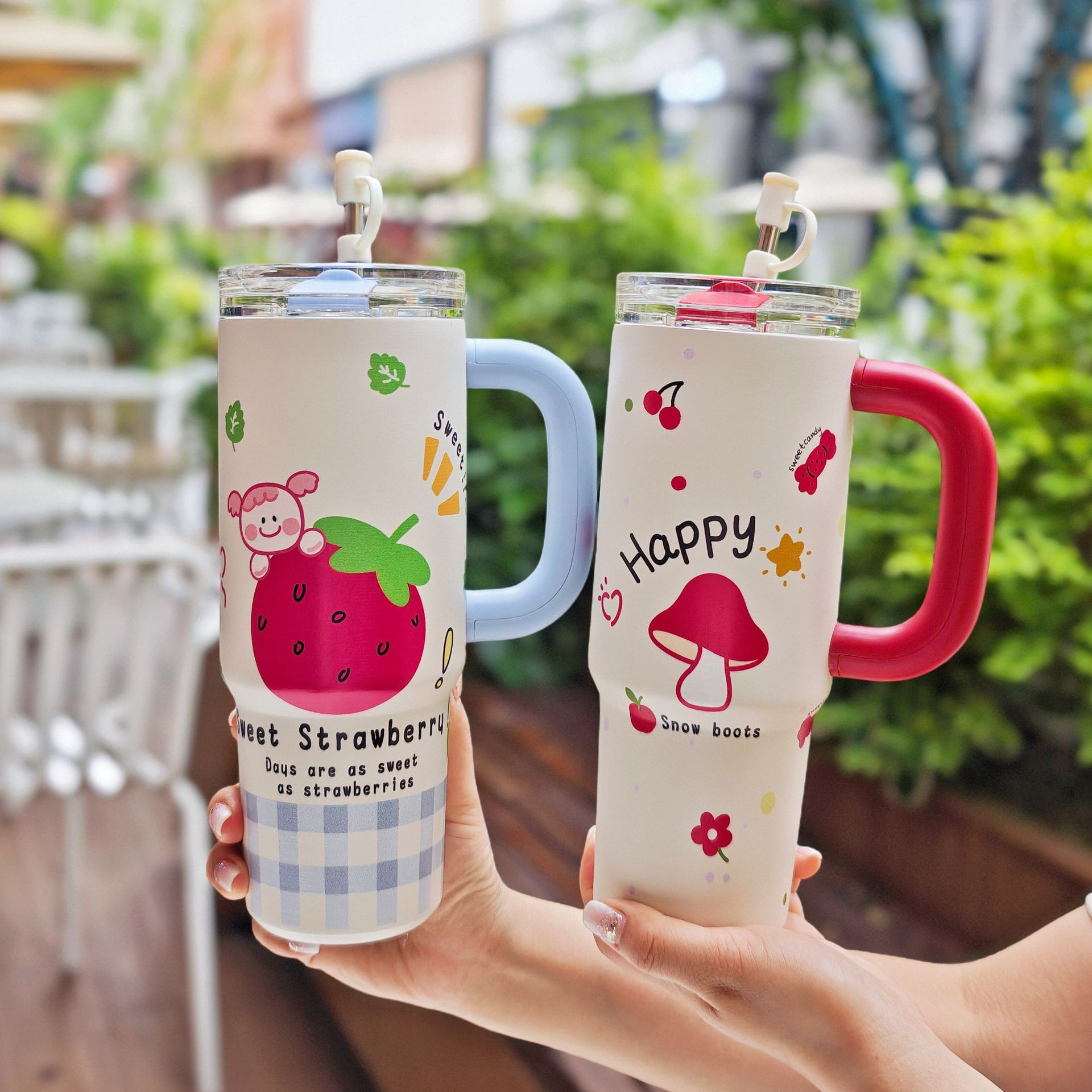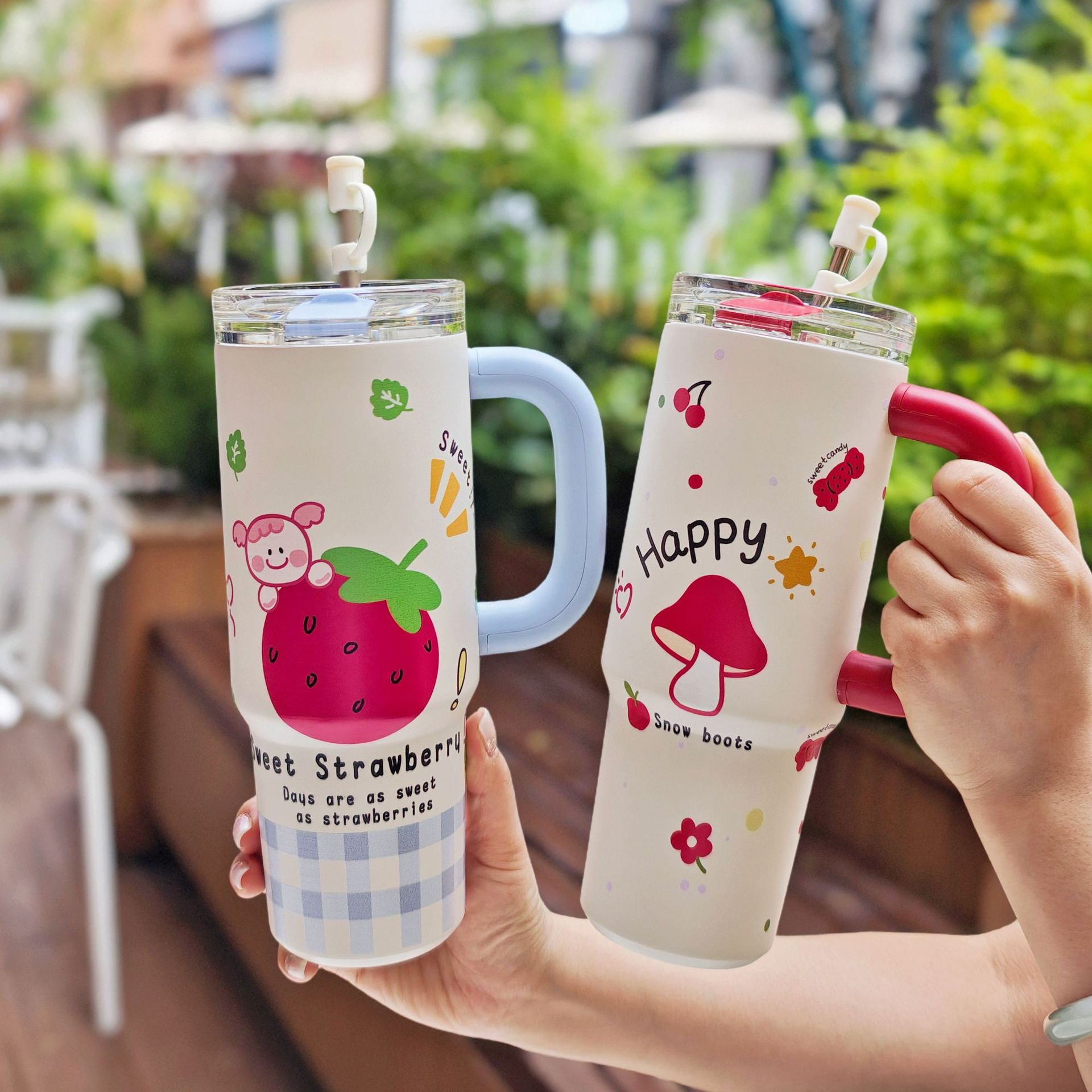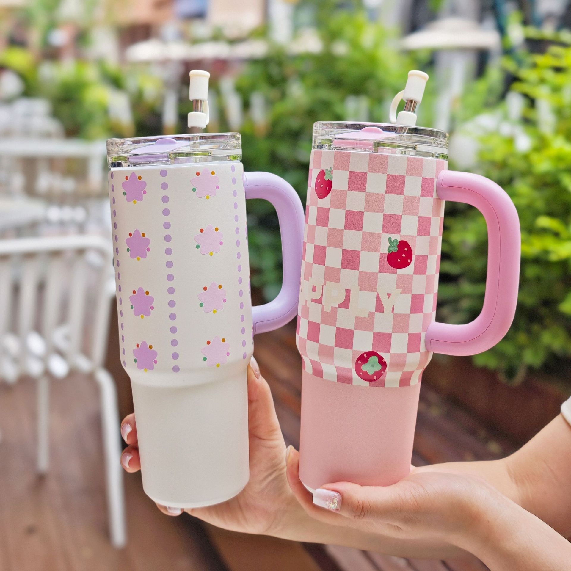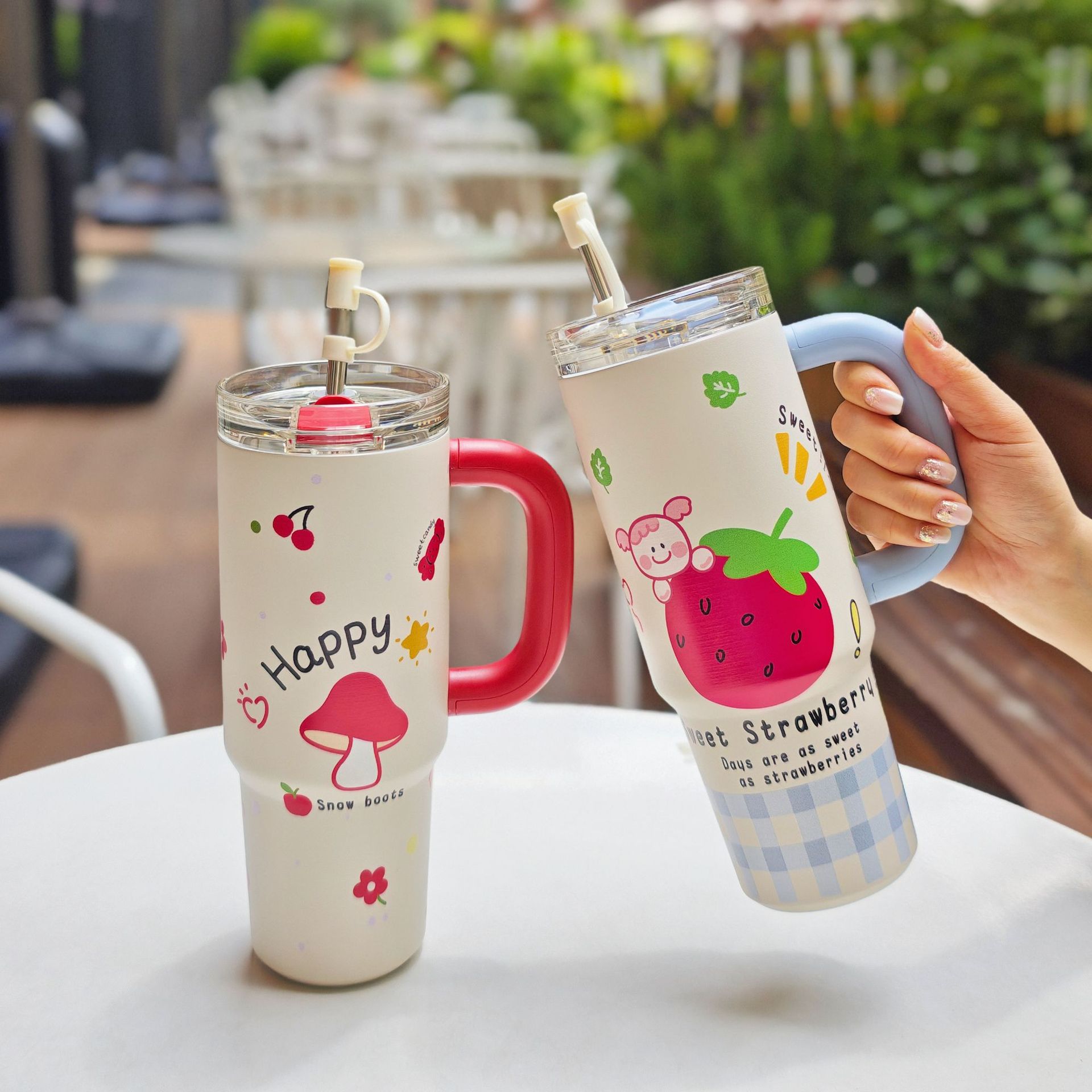 大容量水果冰霸杯女生高颜值保温杯真空带吸管杯不锈钢手把杯批发