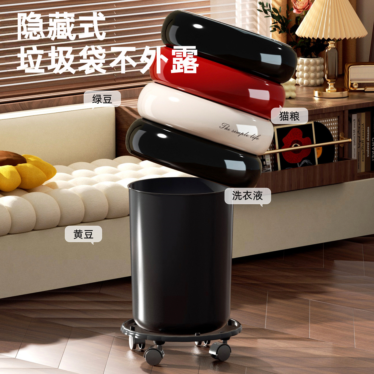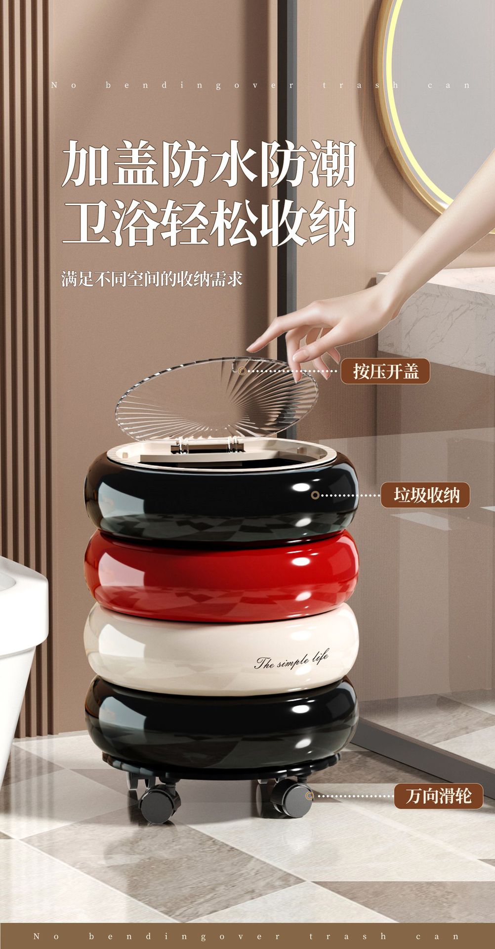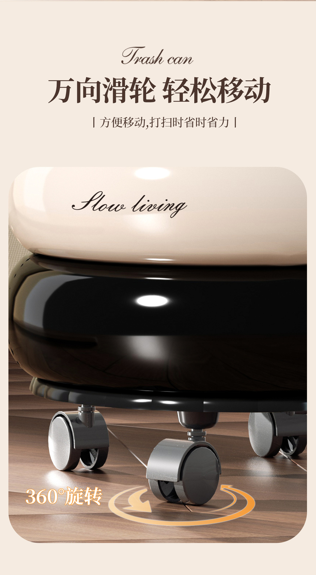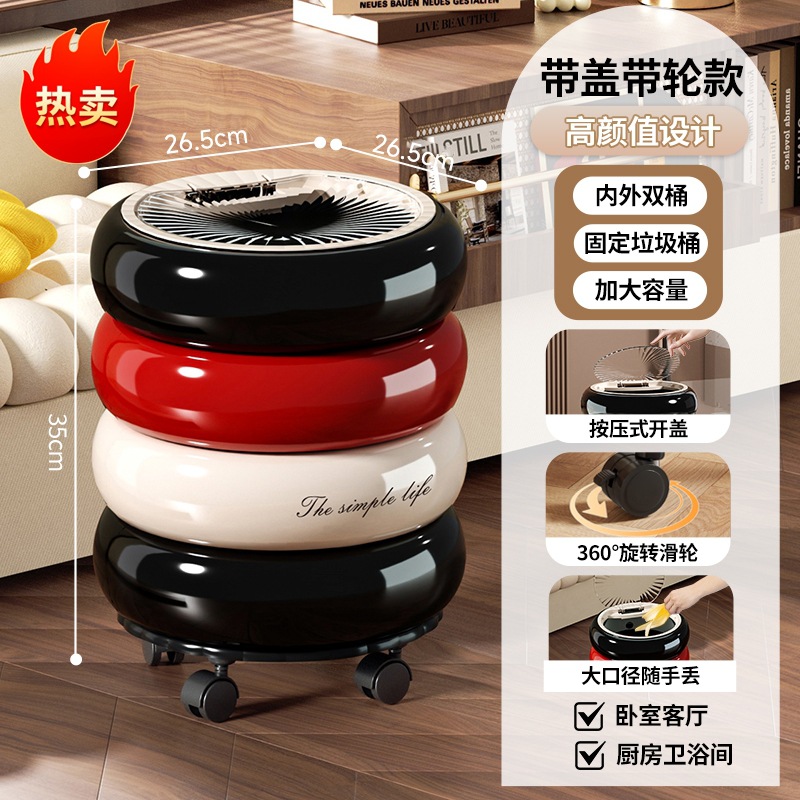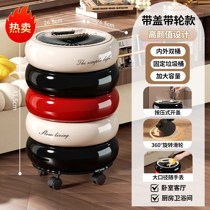 垃圾桶家用高级感大号大容量客厅卧室创意按压开盖万向滑轮垃圾筒