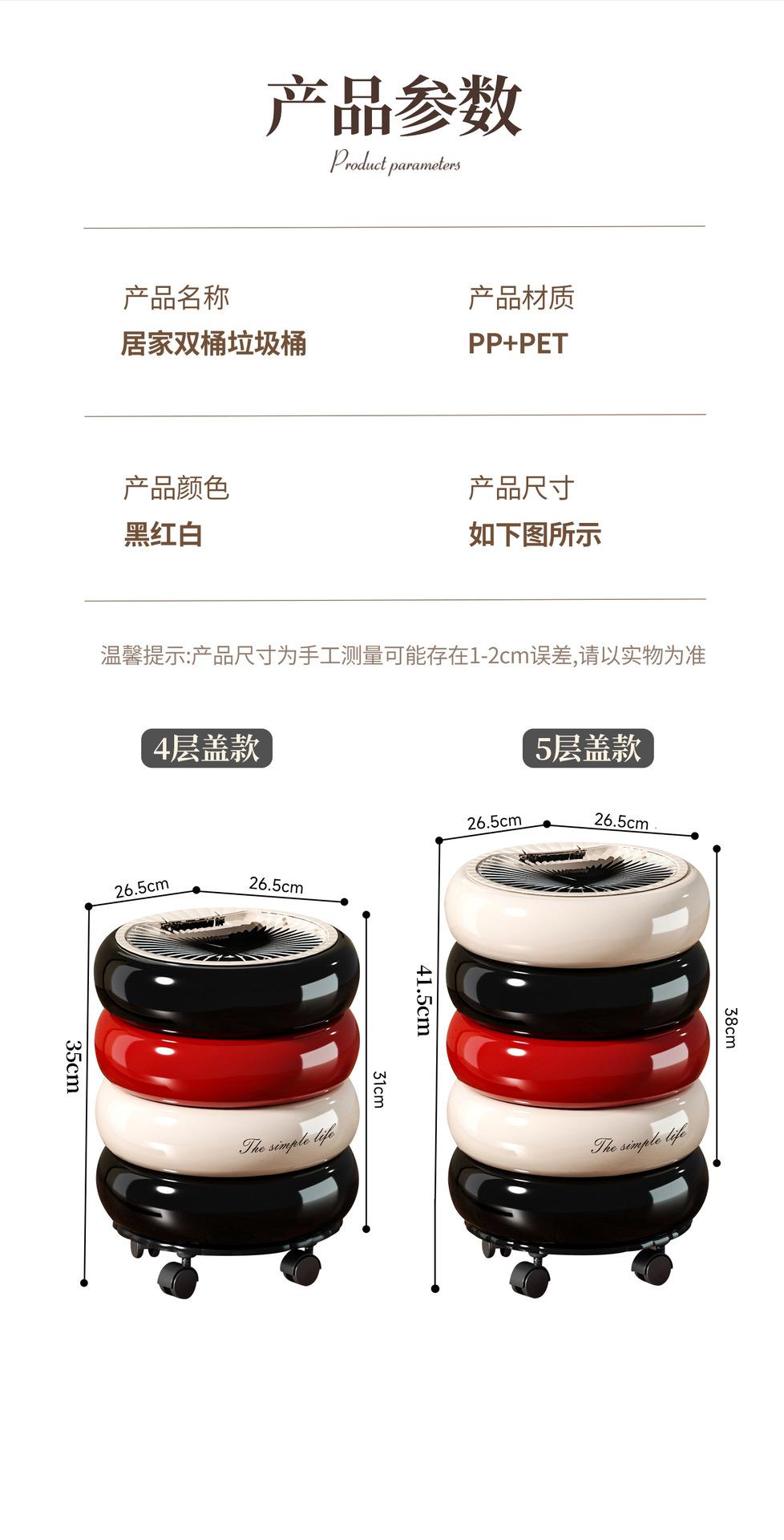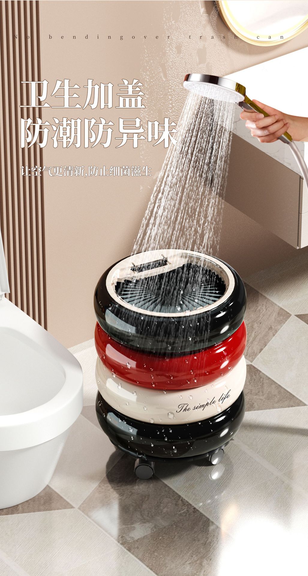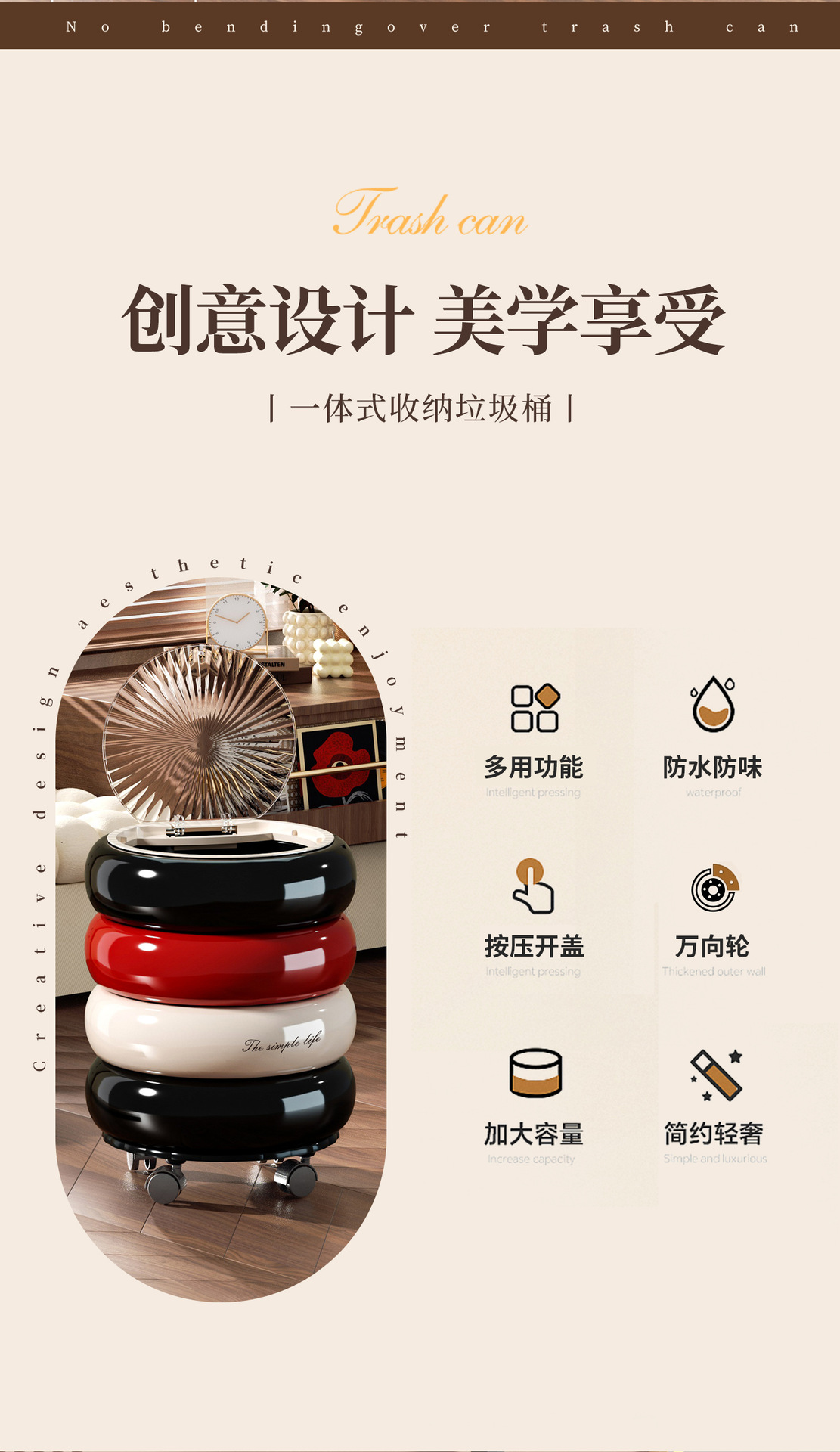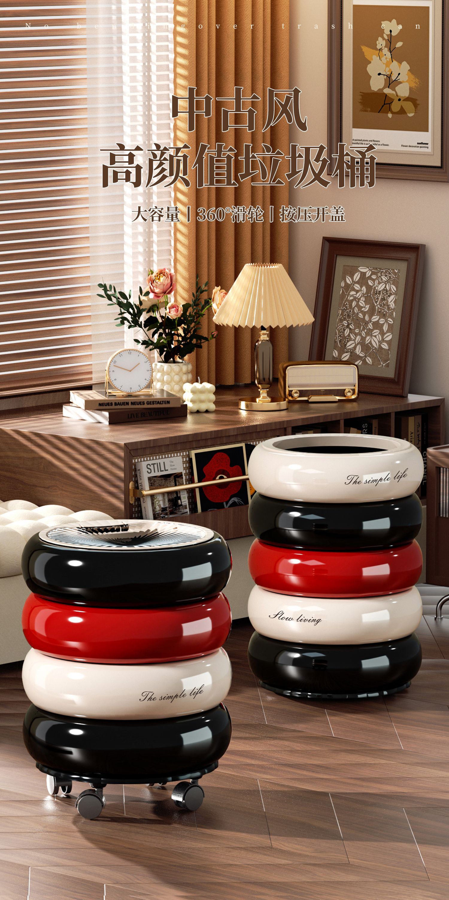 垃圾桶家用高级感大号大容量客厅卧室创意按压开盖万向滑轮垃圾筒