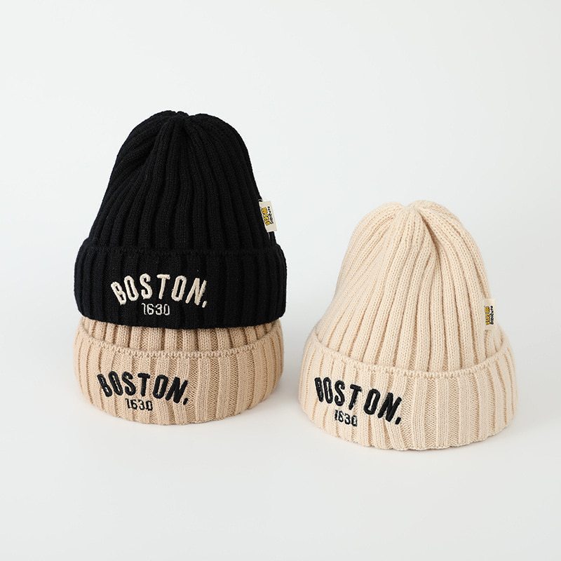 秋南 儿童帽子秋冬2025新款字母套头帽男童针织帽宝宝毛线帽批发