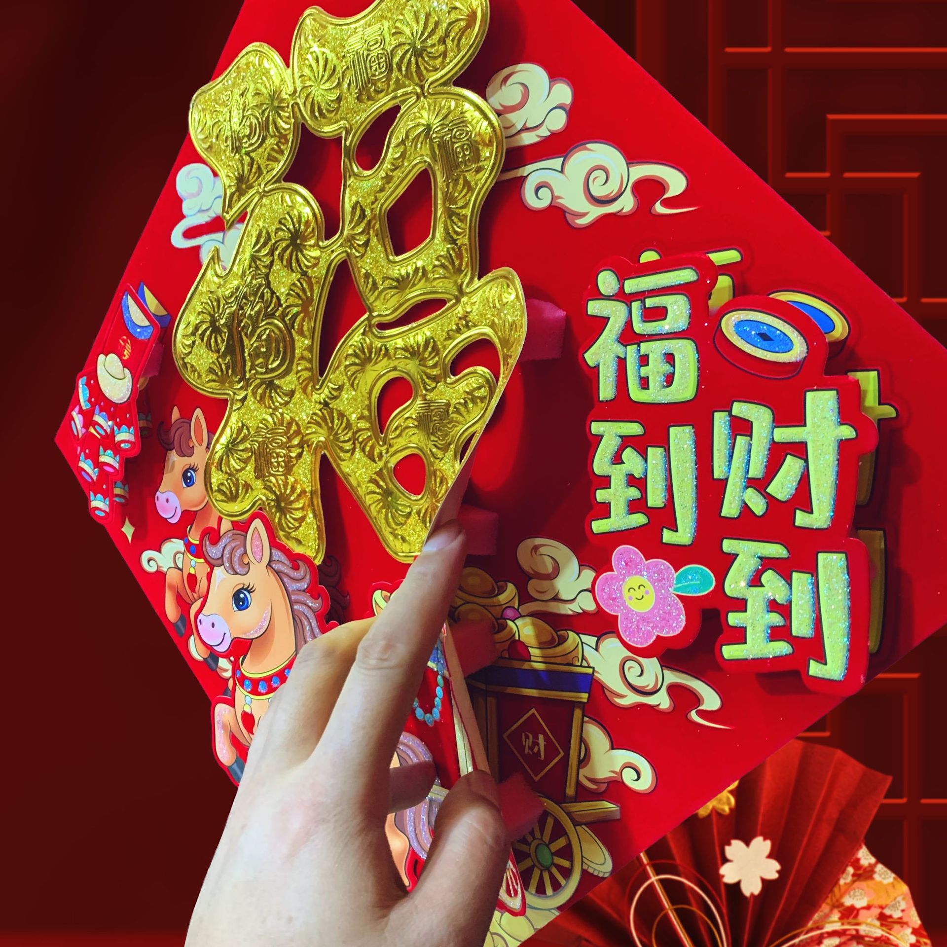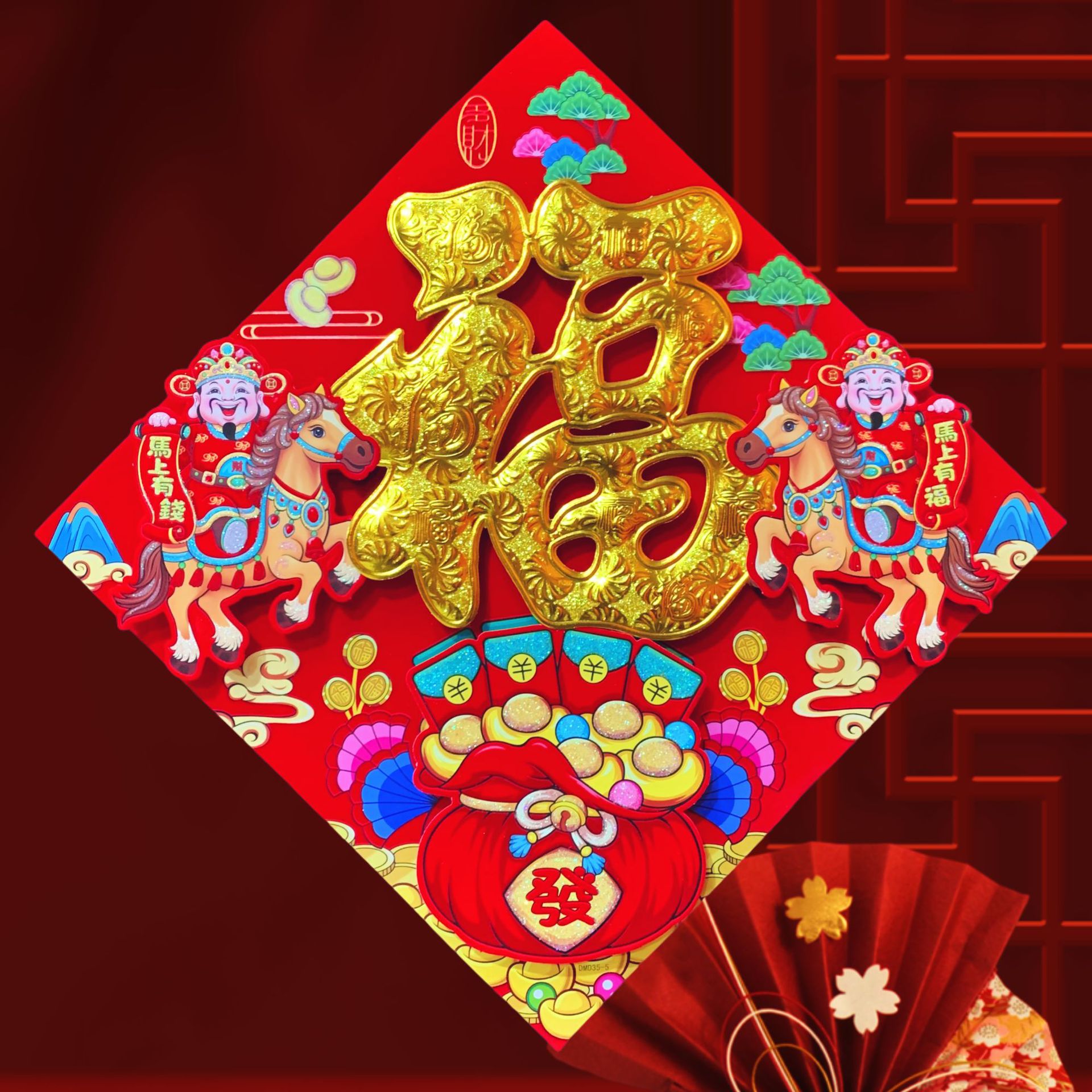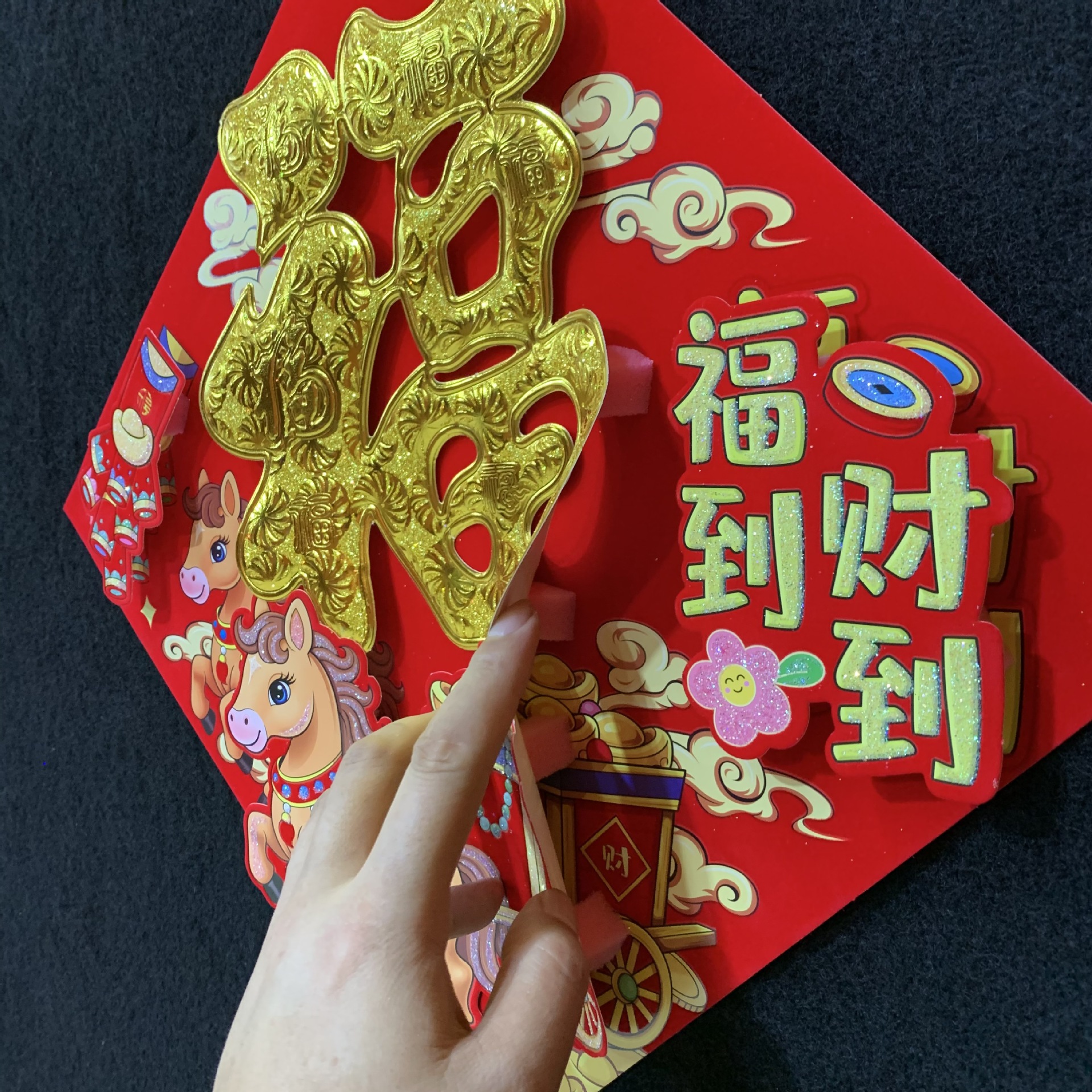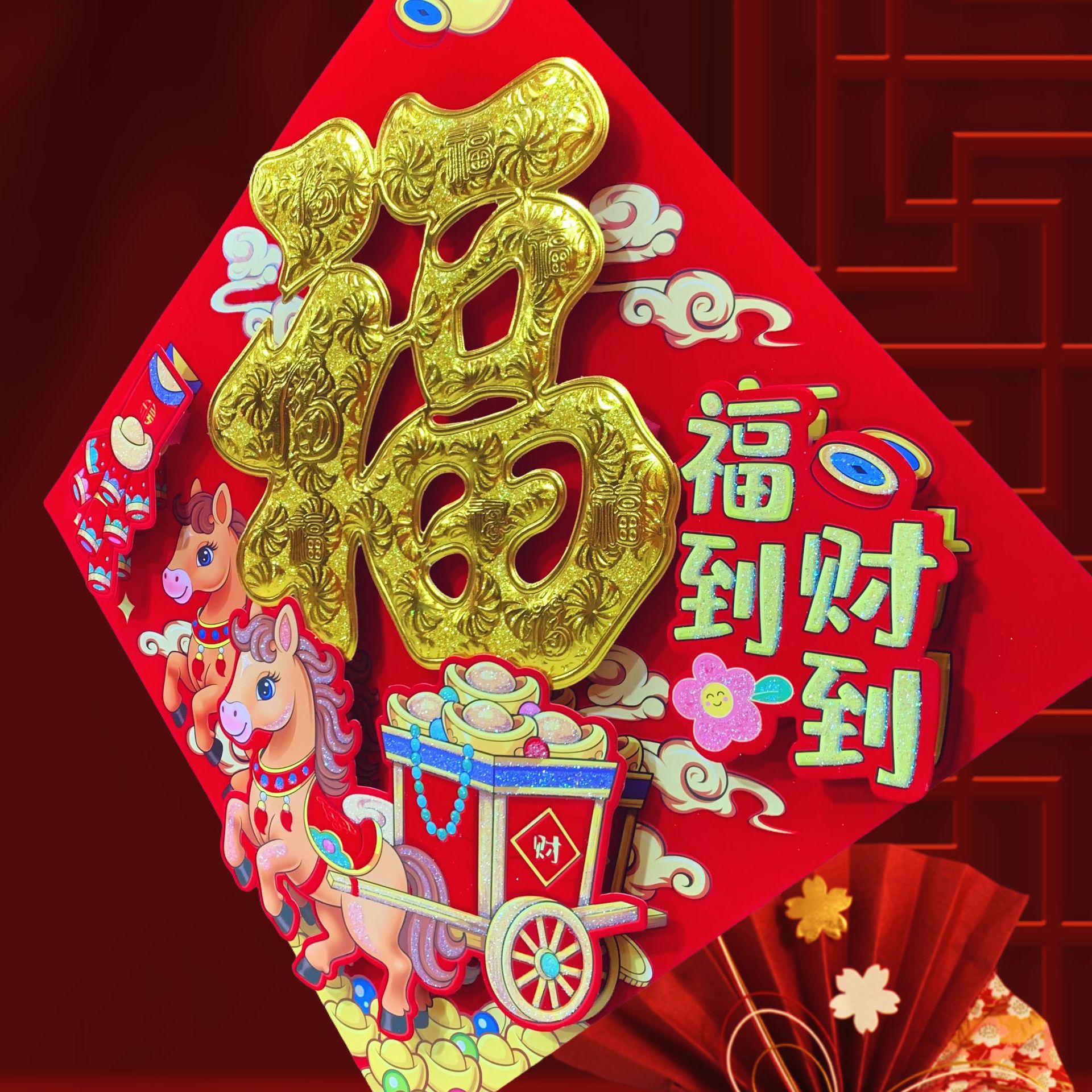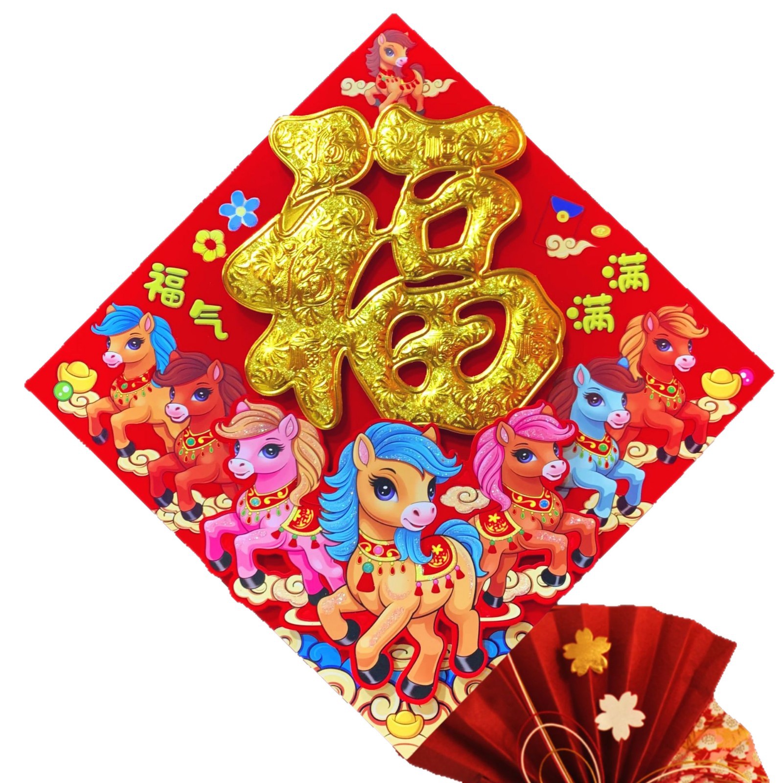新品上市,彩色全胶生肖植绒立体金福,40# 1.6元一张,50# 2.4元一张,真马3个款卡通马1个款,共四个款式,实际尺寸40# 33×33cm.50# 43.5×43.5cm新款上市.款式混搭发货, 底板全胶硬白卡纸植绒彩色印花+福字撒粉加烫金,+配件马植绒撒水晶粉工艺,高端大气上档次……箱装清装数量:40# 400/箱,50# 300/箱