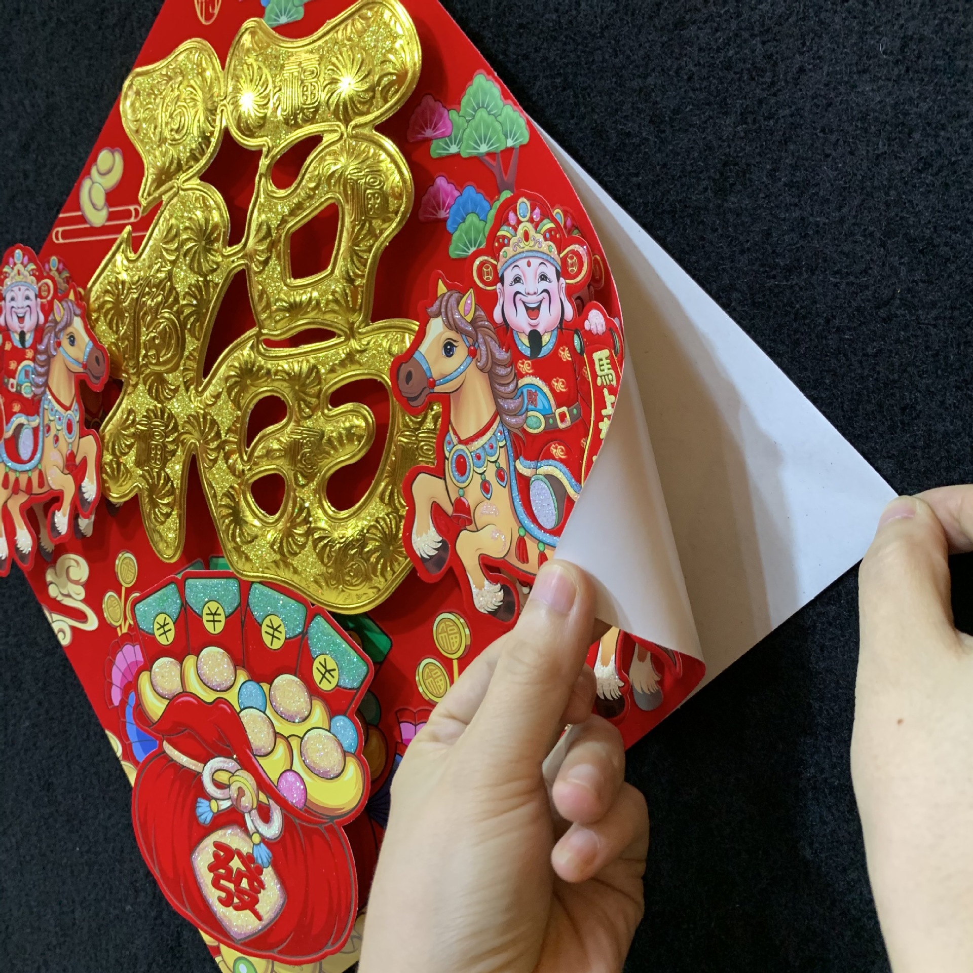 新年生肖福字门贴春节过年布置装饰品彩色全胶生肖植绒立体金福
