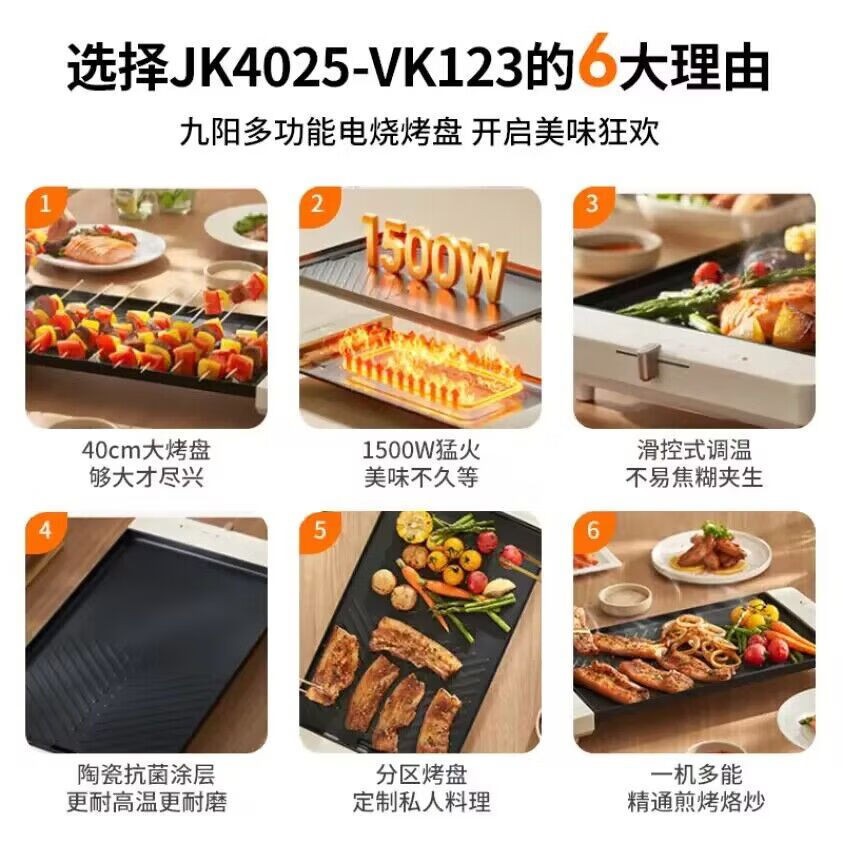九阳JK4025-VK123烤肉盘电烤盘家用电烧烤炉家庭室内电烤锅