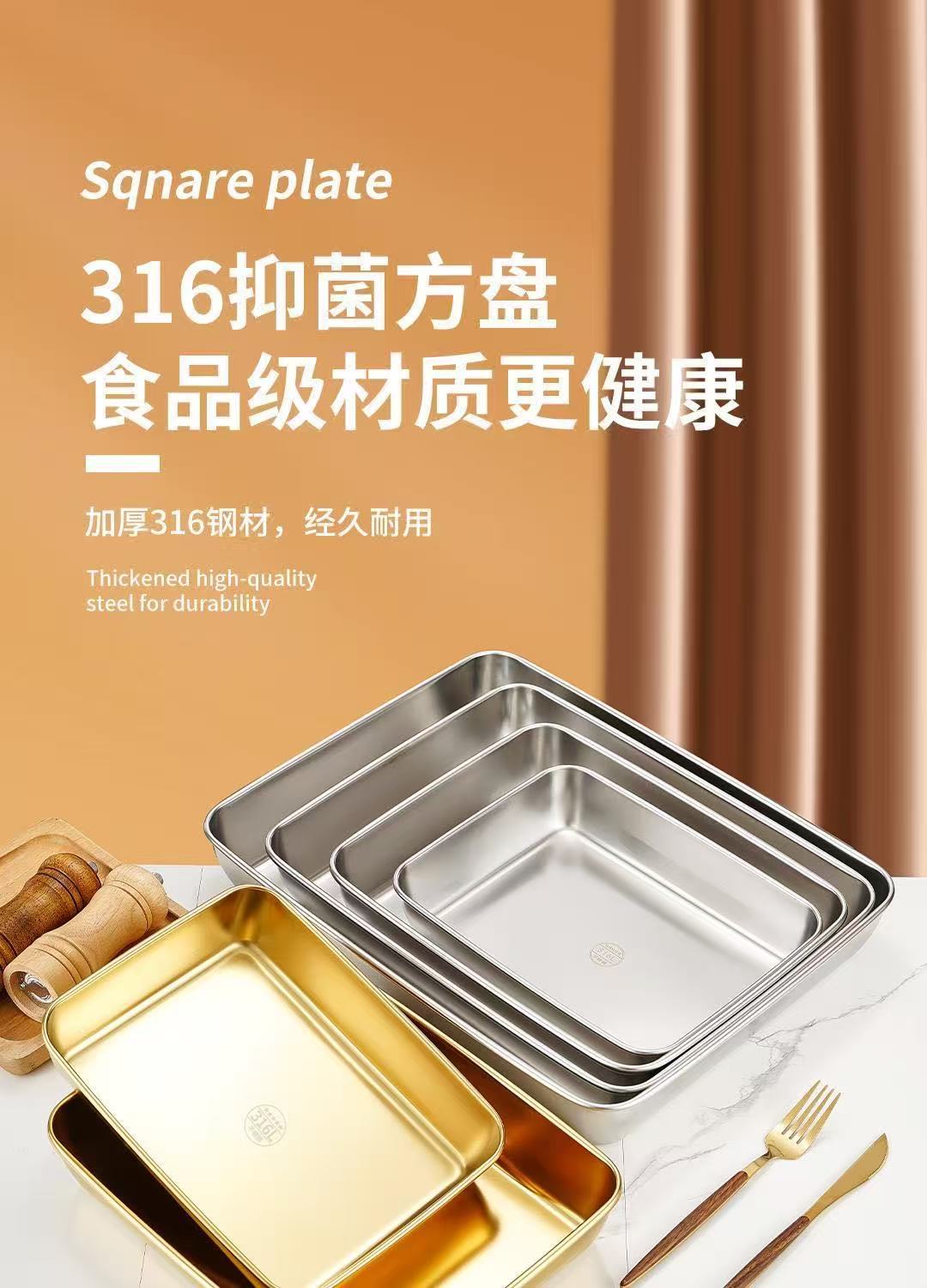 备菜盘不锈钢餐盘加厚饺子盘餐厅烧烤盘商用毛巾盘方盘烤鱼盘托盘