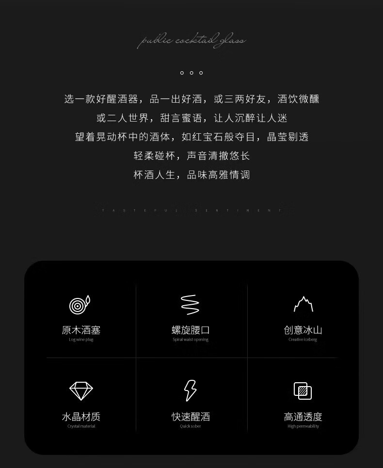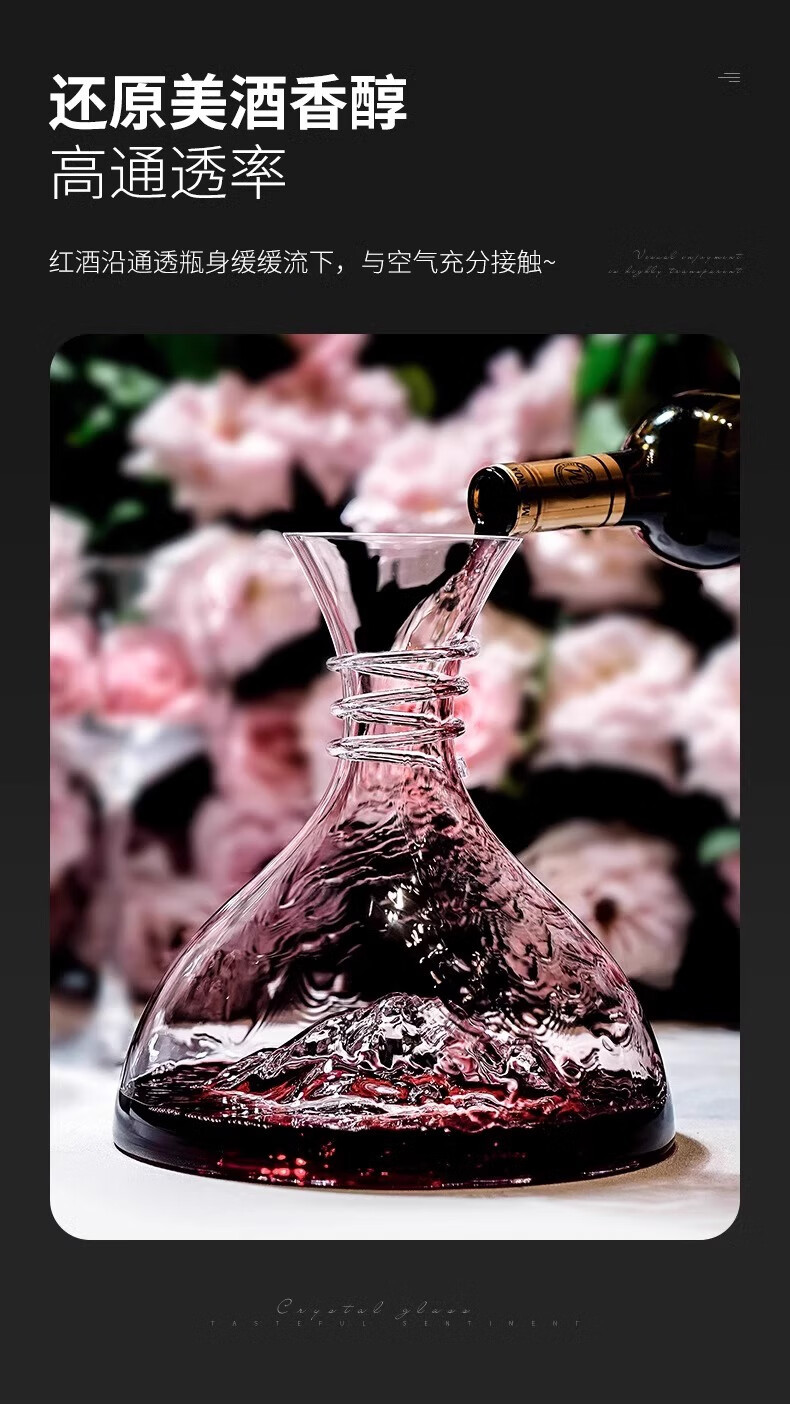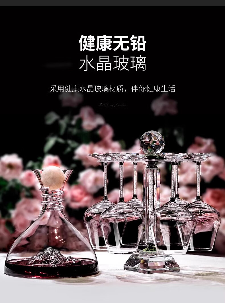高档轻奢水晶无铅冰山红酒醒酒器快速葡萄酒分酒器红酒杯套装家用