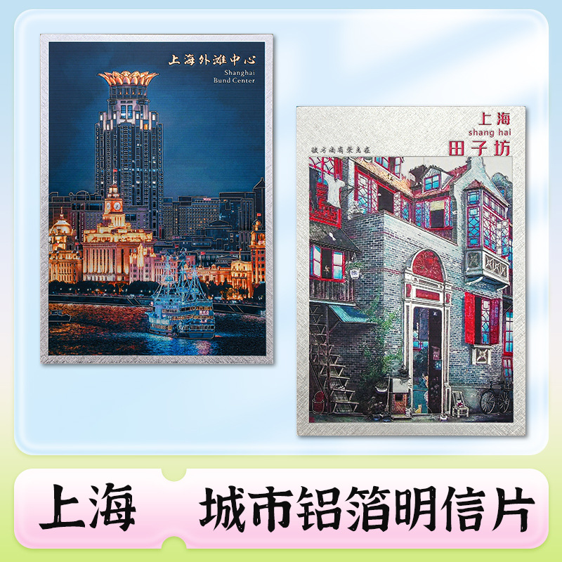 铝箔明信片上海外滩石库门明信片铝箔城市风景文创旅游纪念品批发