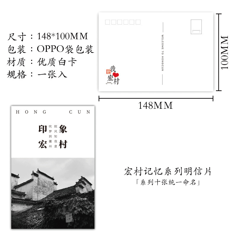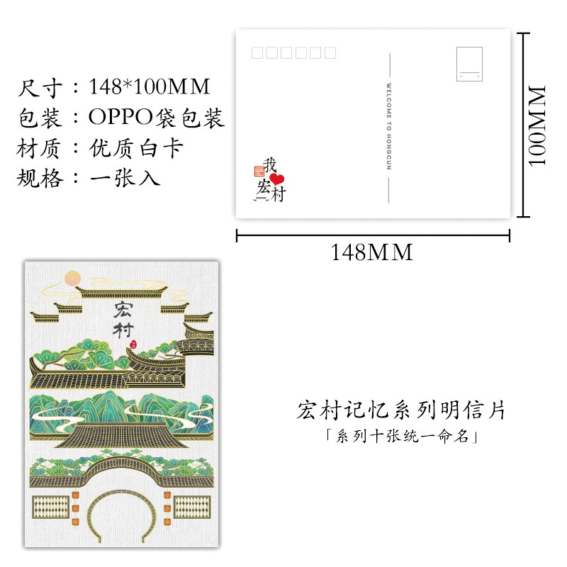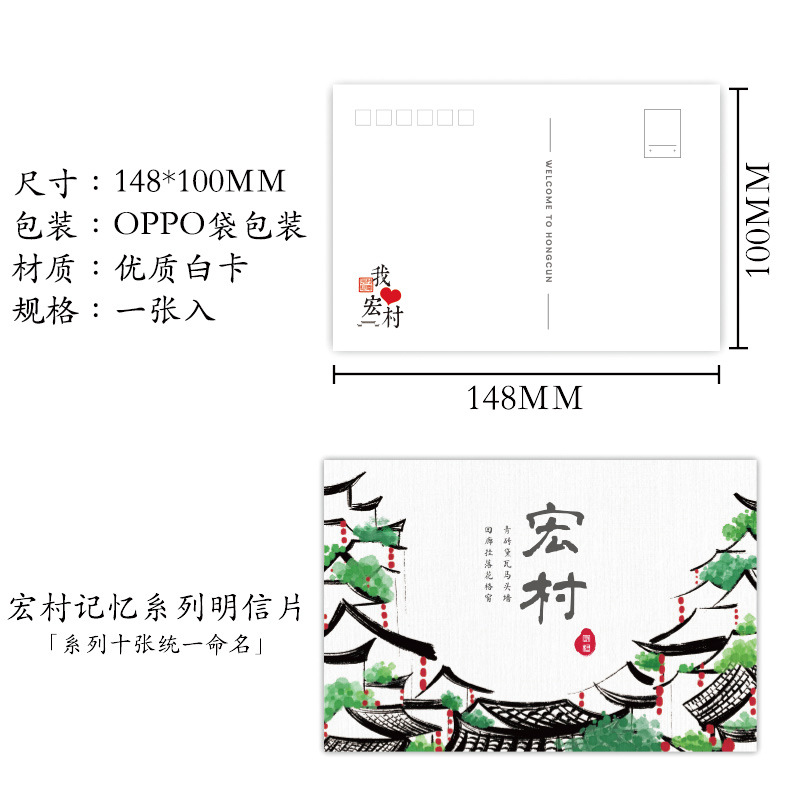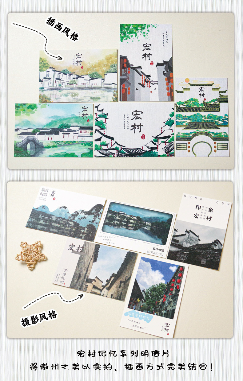 梦鱼宏村记忆明信片城市旅游景点打卡纪念品宏村风景贺卡礼物卡片