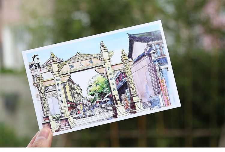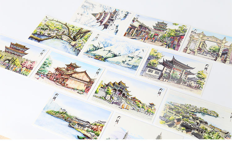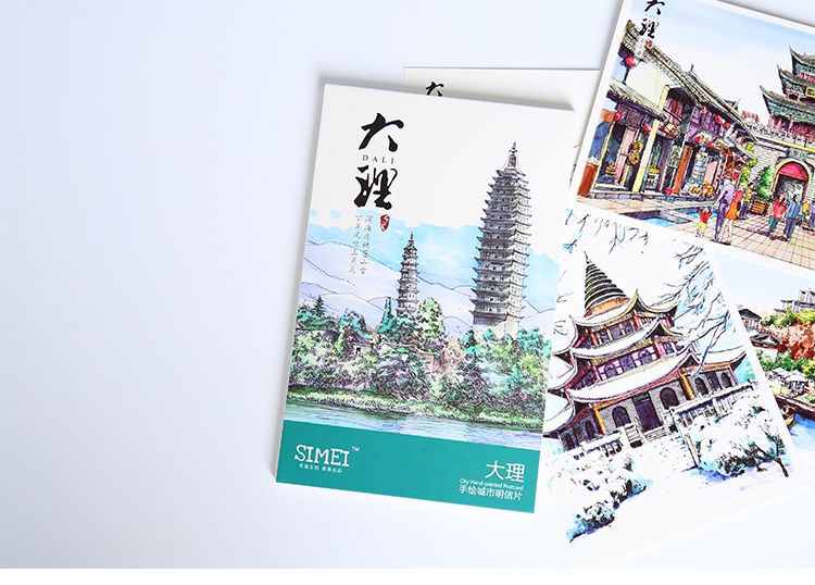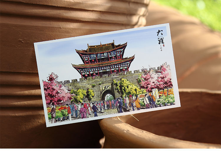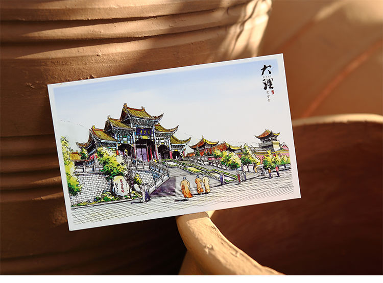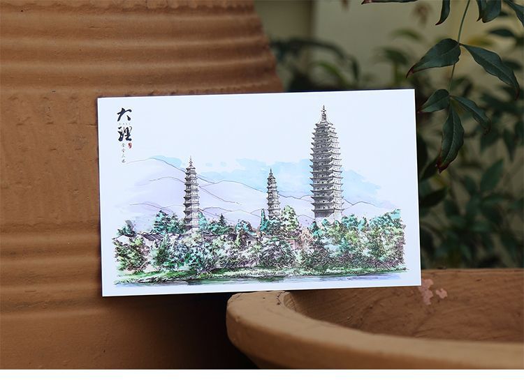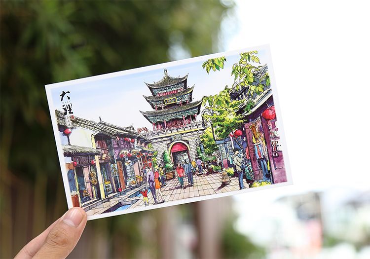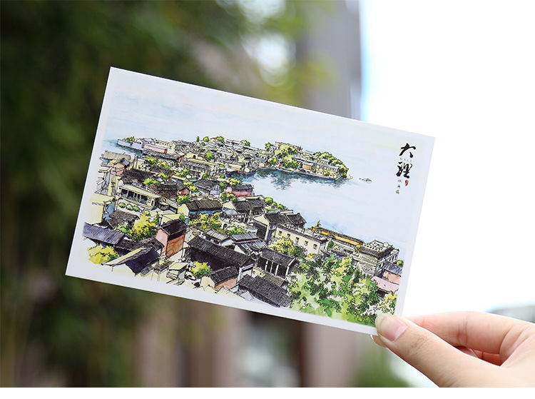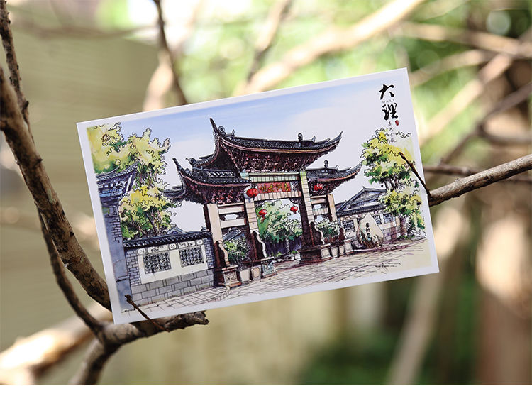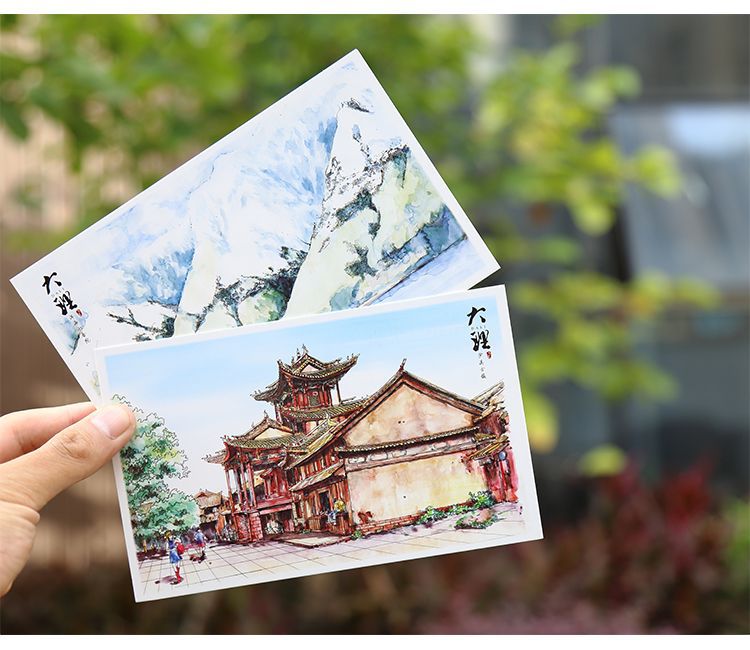 手绘大理明信片12张云南印象古城风景旅游景点纪念品卡片文创礼物