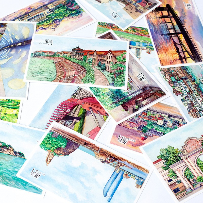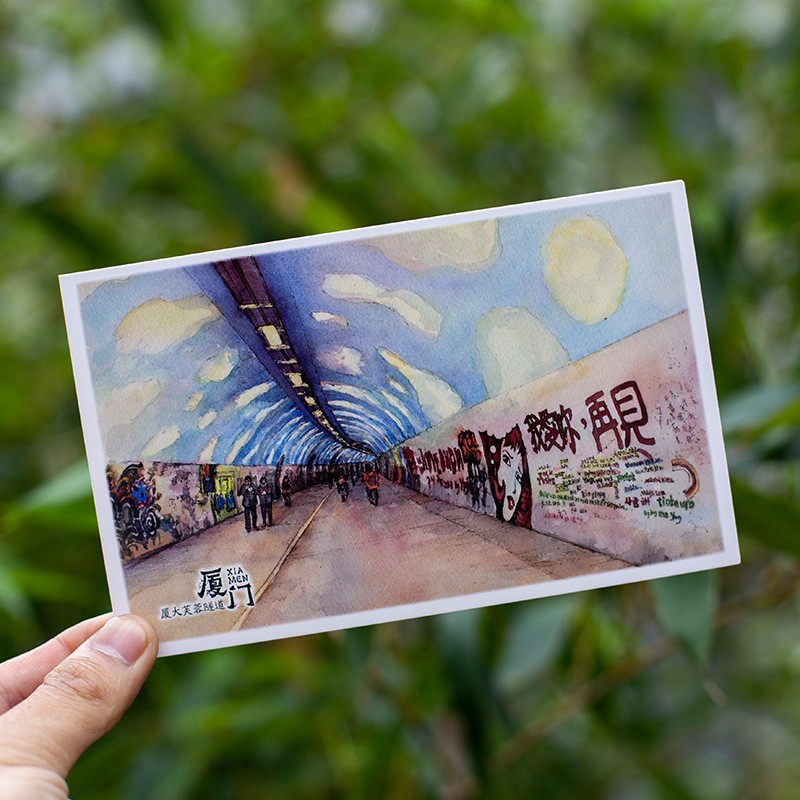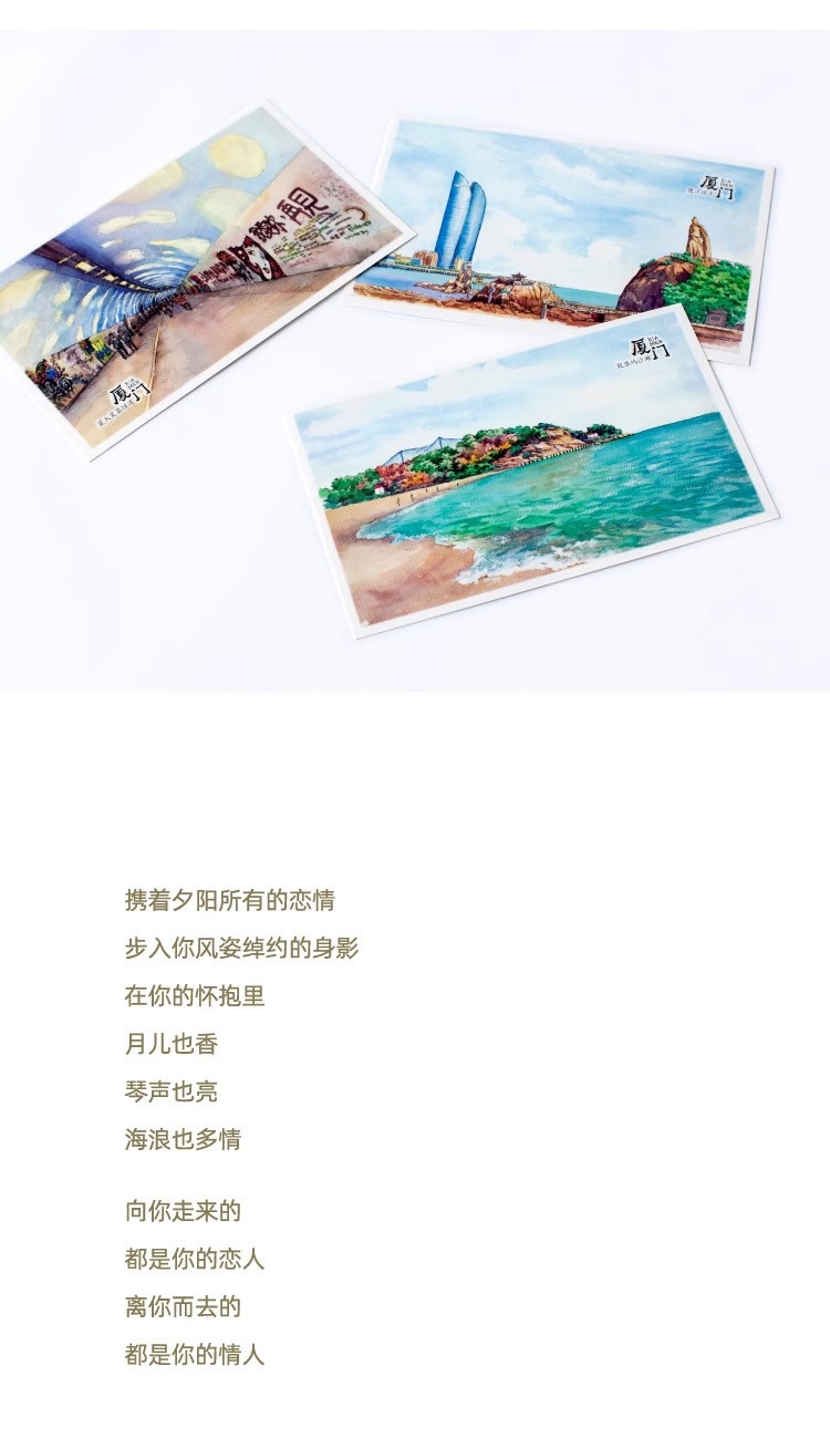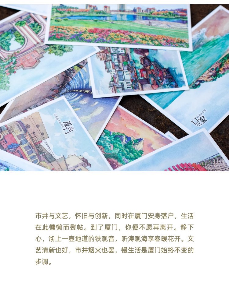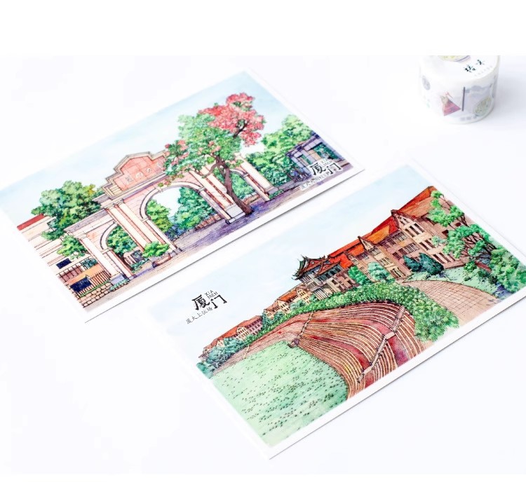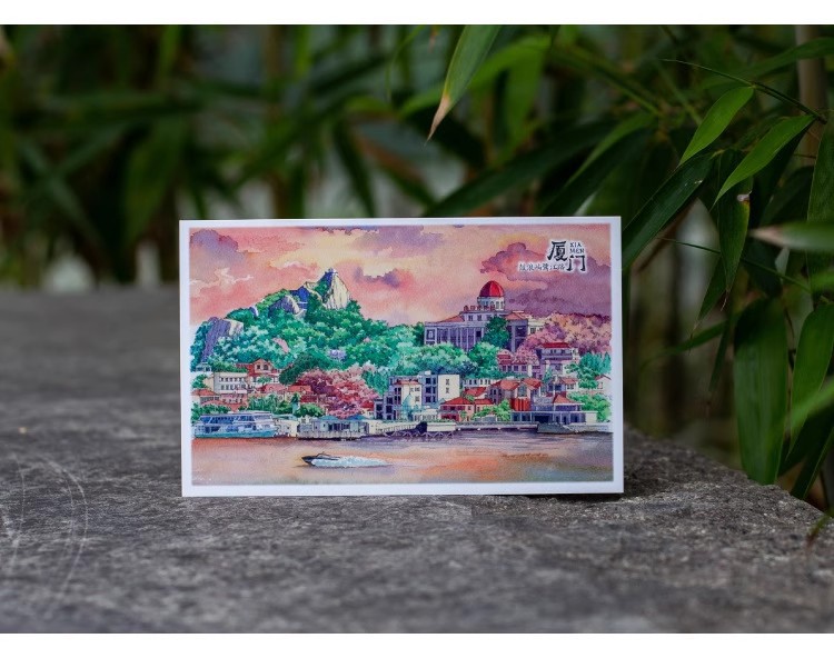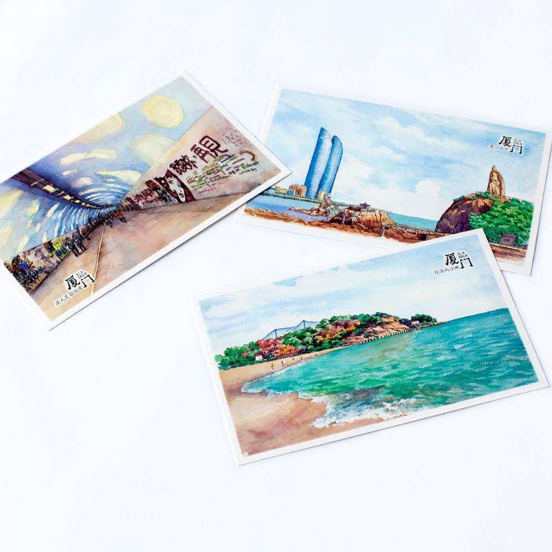 厦门鼓浪屿文艺小清新旅游纪念品礼物特色景点卡片手绘风景明信片