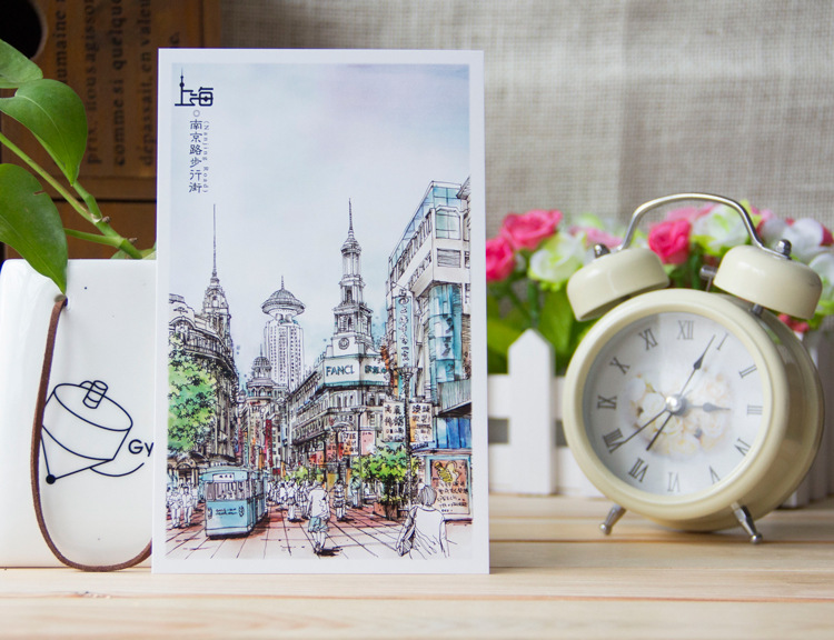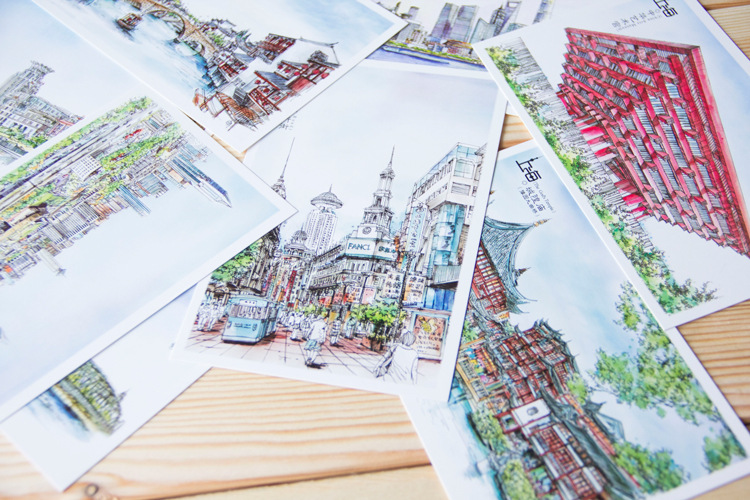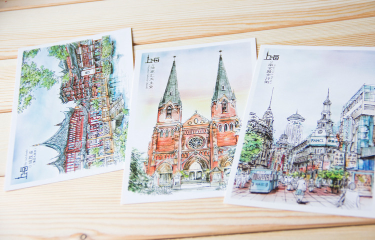 手绘上海明信片 上海印象旅游景点风景特色创意礼品贺卡 旅游纪念