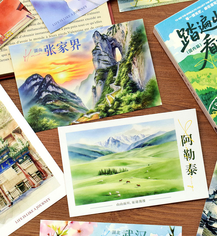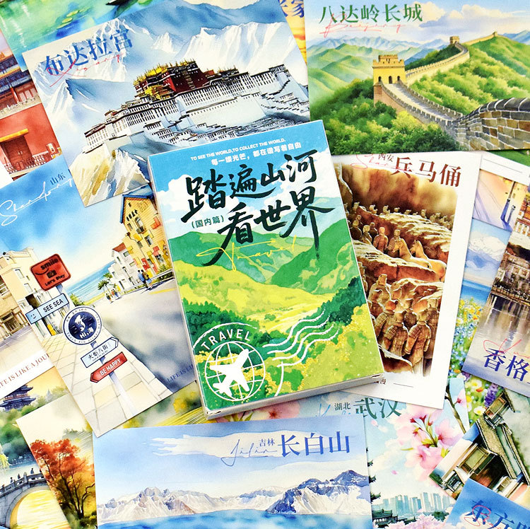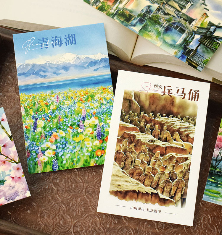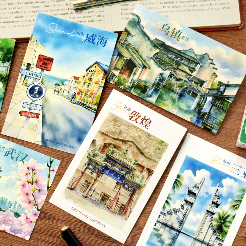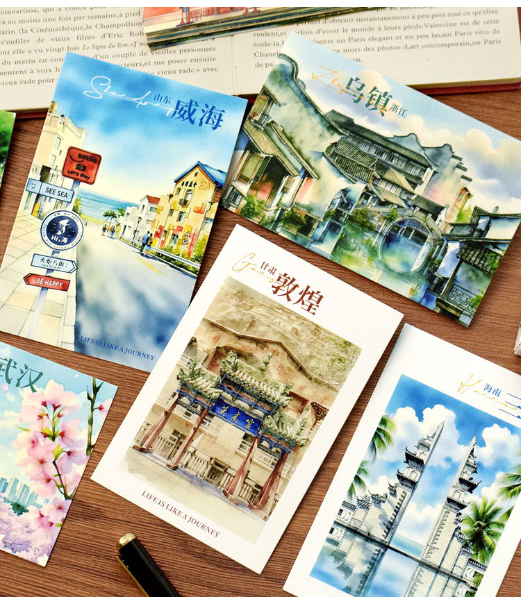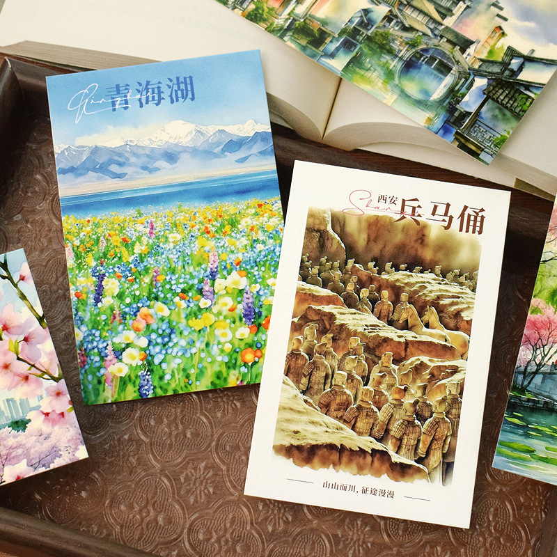 中国各地风景明信片手绘水彩插画旅游景点名胜古迹城市地标留言卡