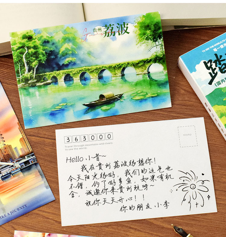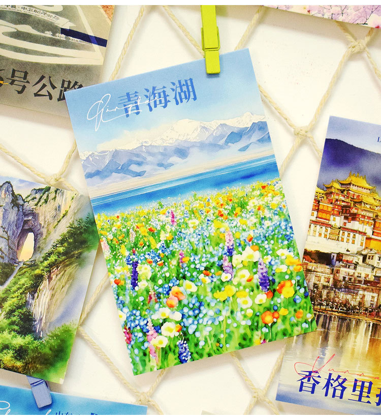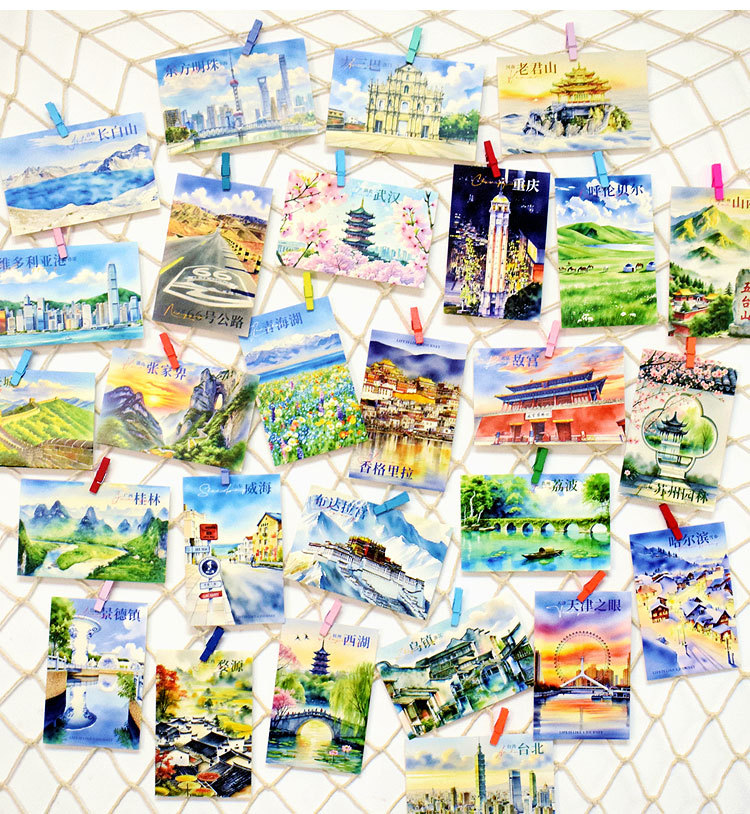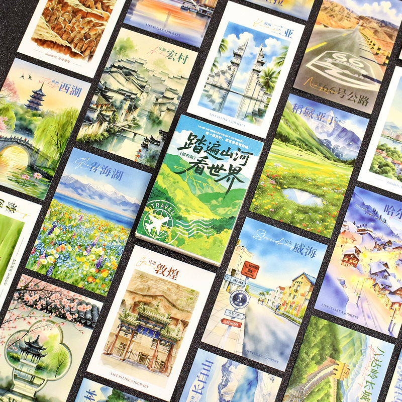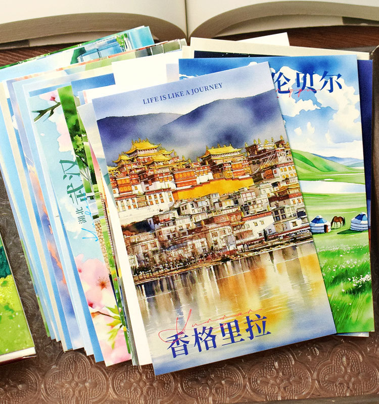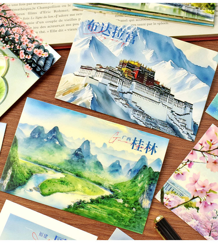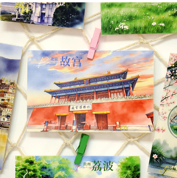 中国各地风景明信片手绘水彩插画旅游景点名胜古迹城市地标留言卡