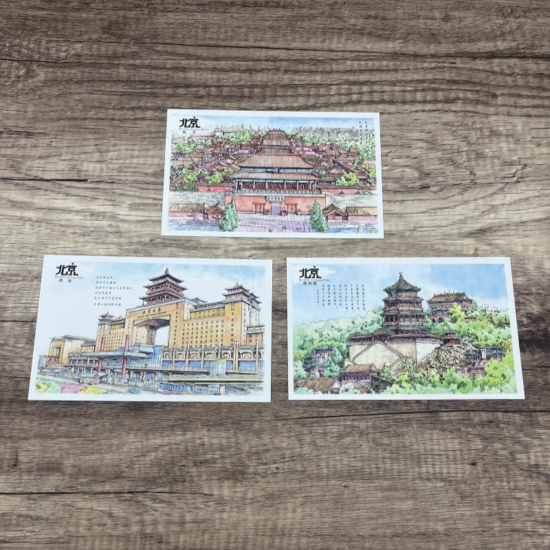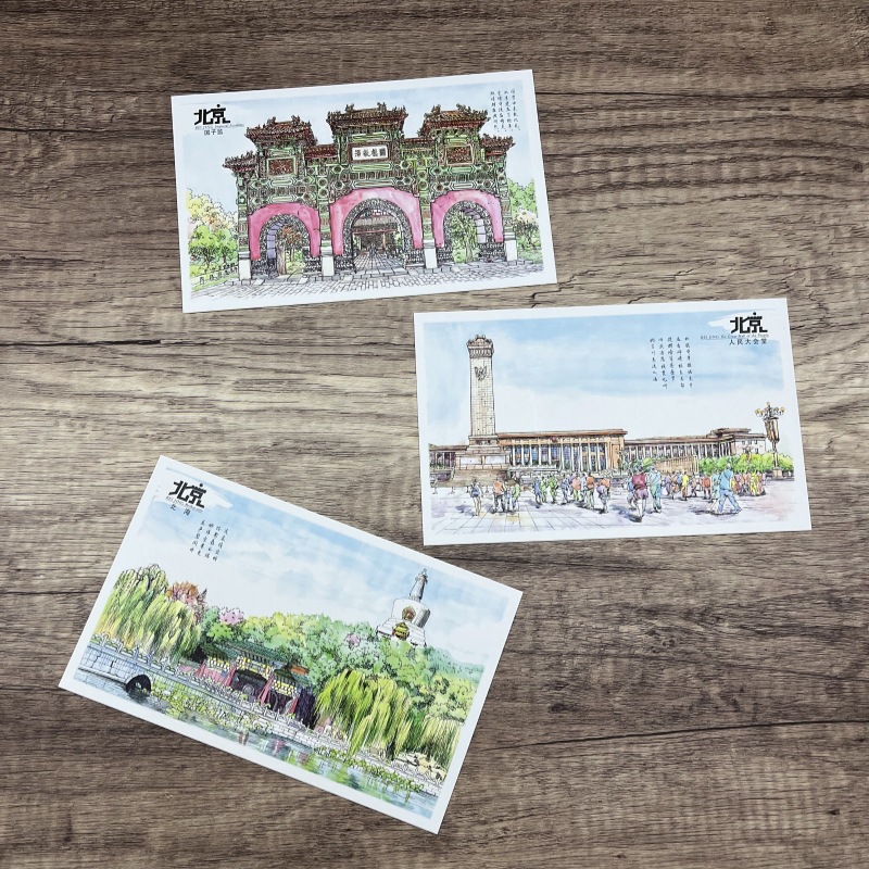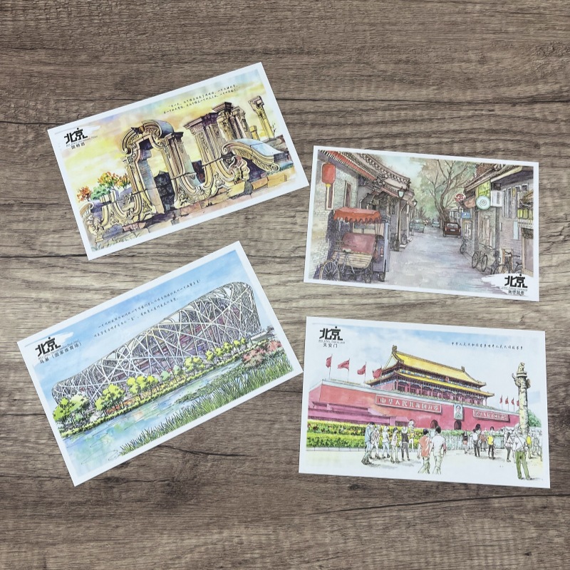 北京旅游纪念礼品手绘明信片长城故宫鸟巢天坛天安门景点商务礼品