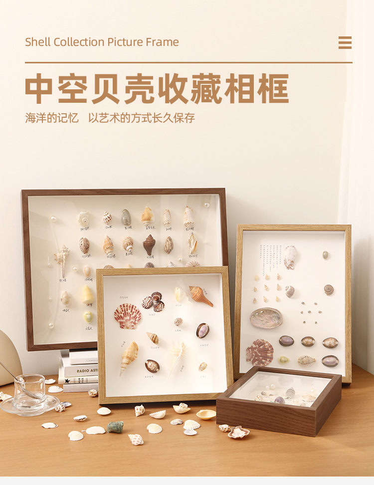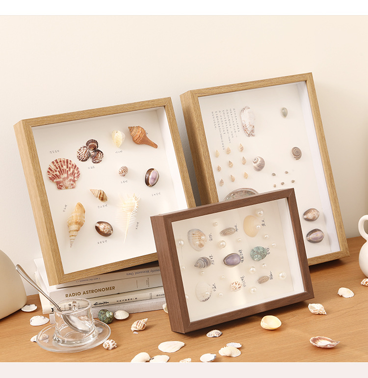 立体中空木相框手工DIY创意干花标本框贝壳海螺装饰框 灯光画框