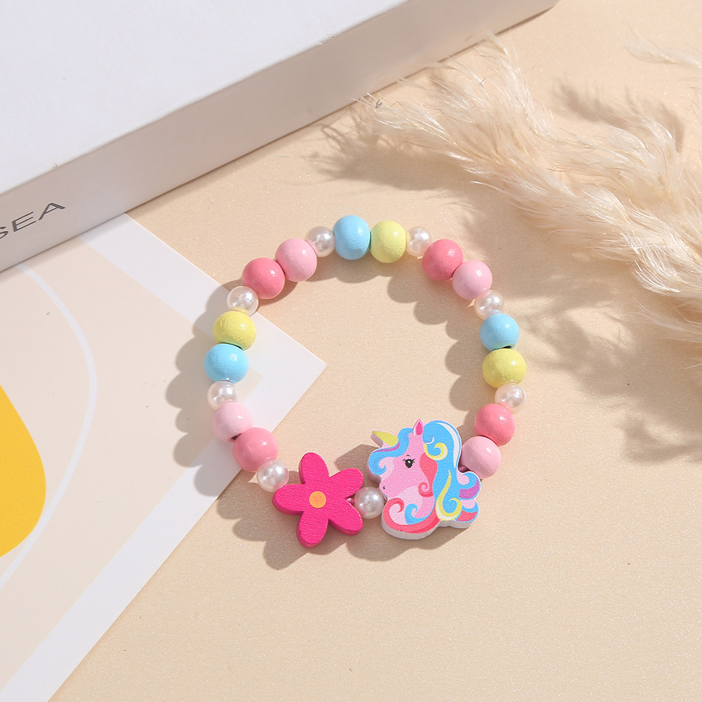 卡通创意木质独角兽手链可爱女童宝宝手环学生首饰手镯饰品装饰