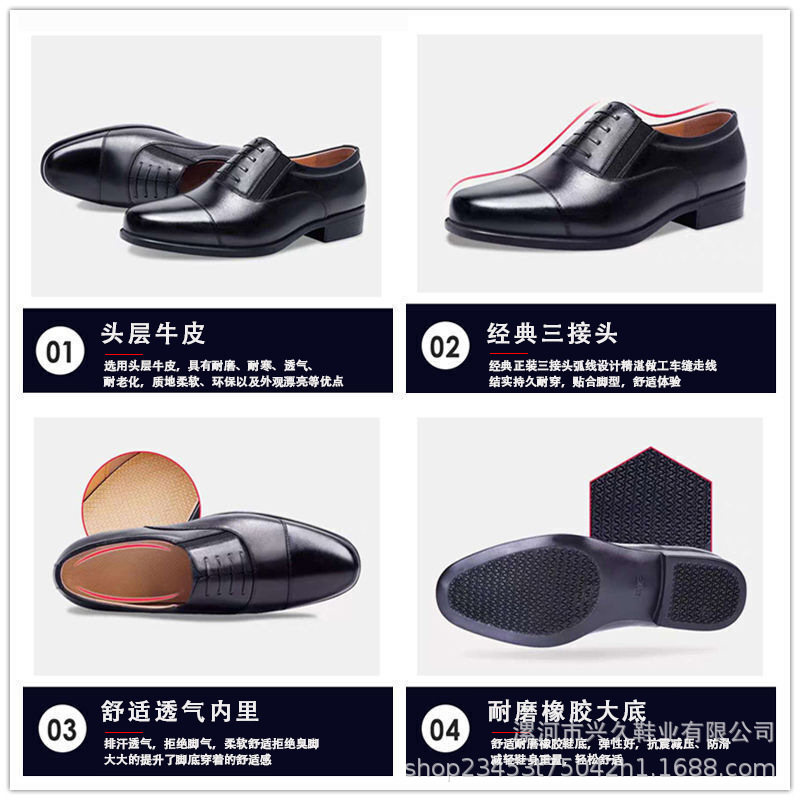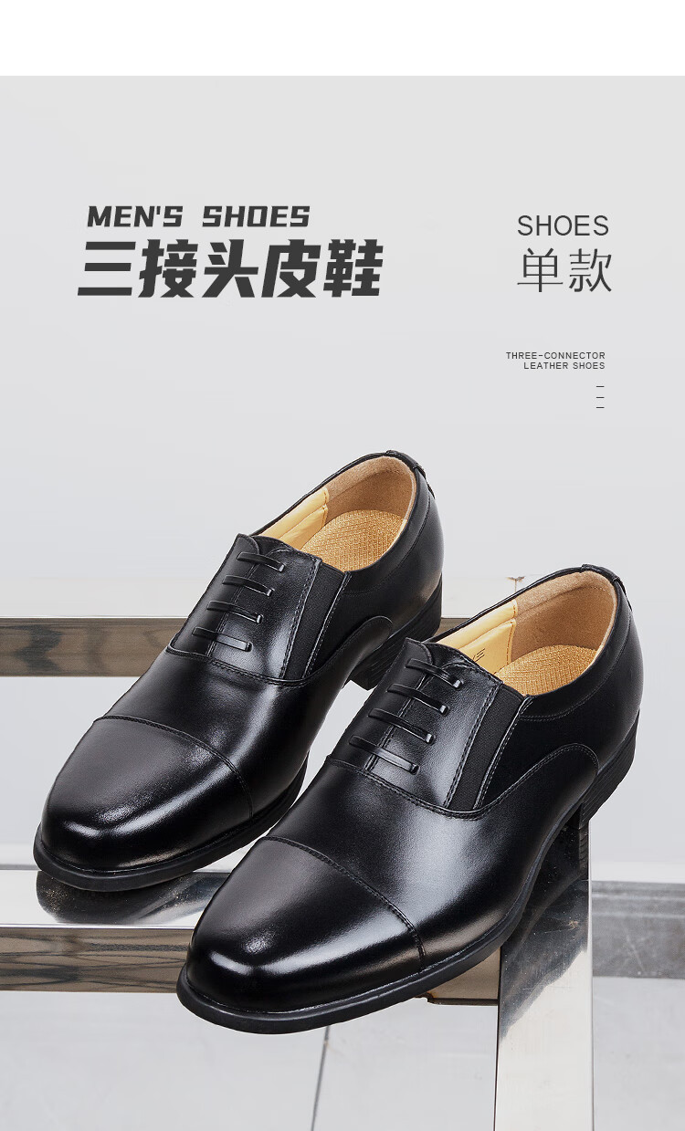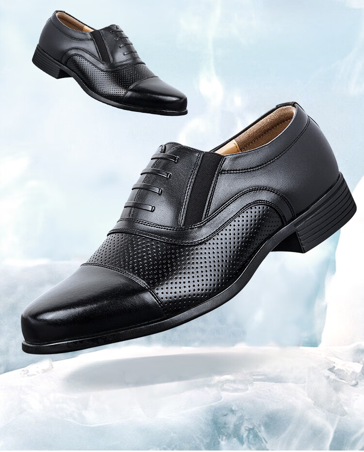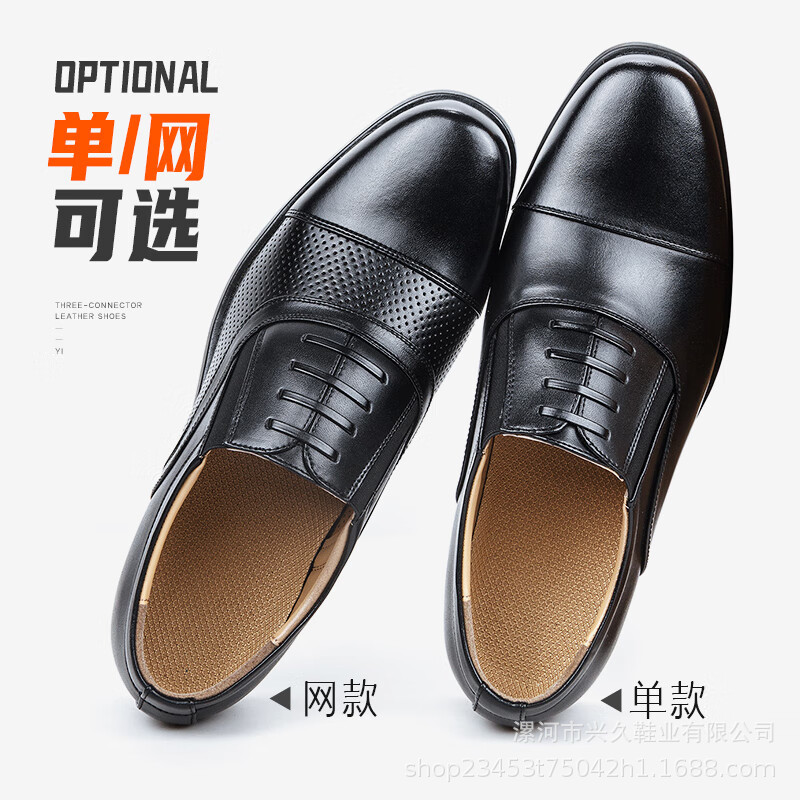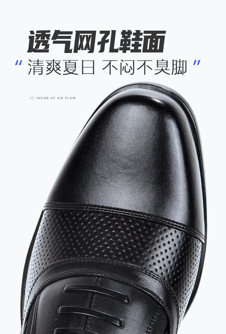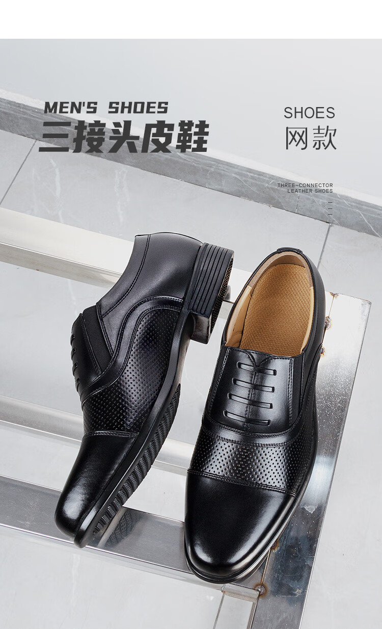 三接头皮鞋男款商务正装皮鞋网眼镂空制式皮鞋透气带皮鞋常服皮鞋