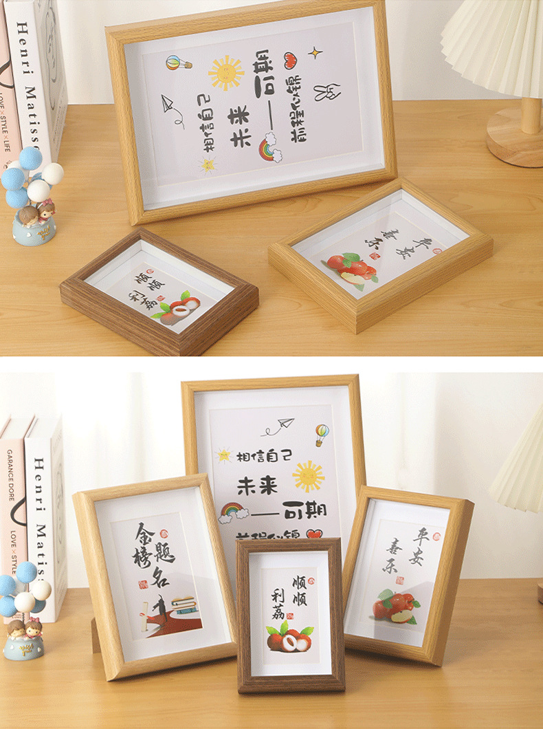 木质中空立体相框摆台卡纸diy手工标本尺寸创意logo照片画框相框
