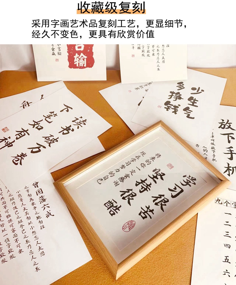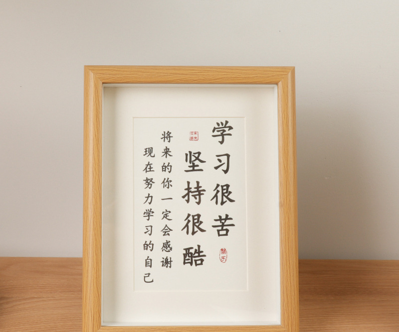 学习很苦坚持很酷学生励志摆台座右铭书法摆件鼓励中高考孩子相框