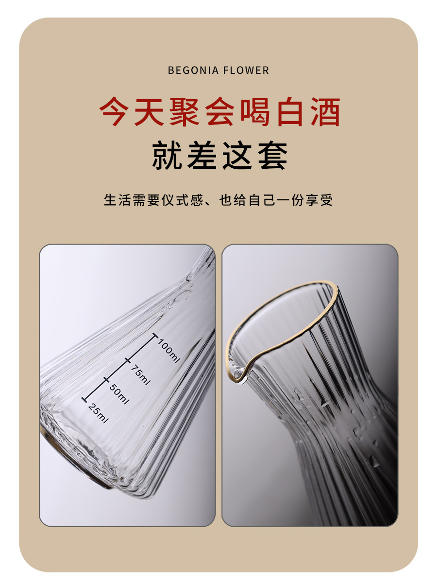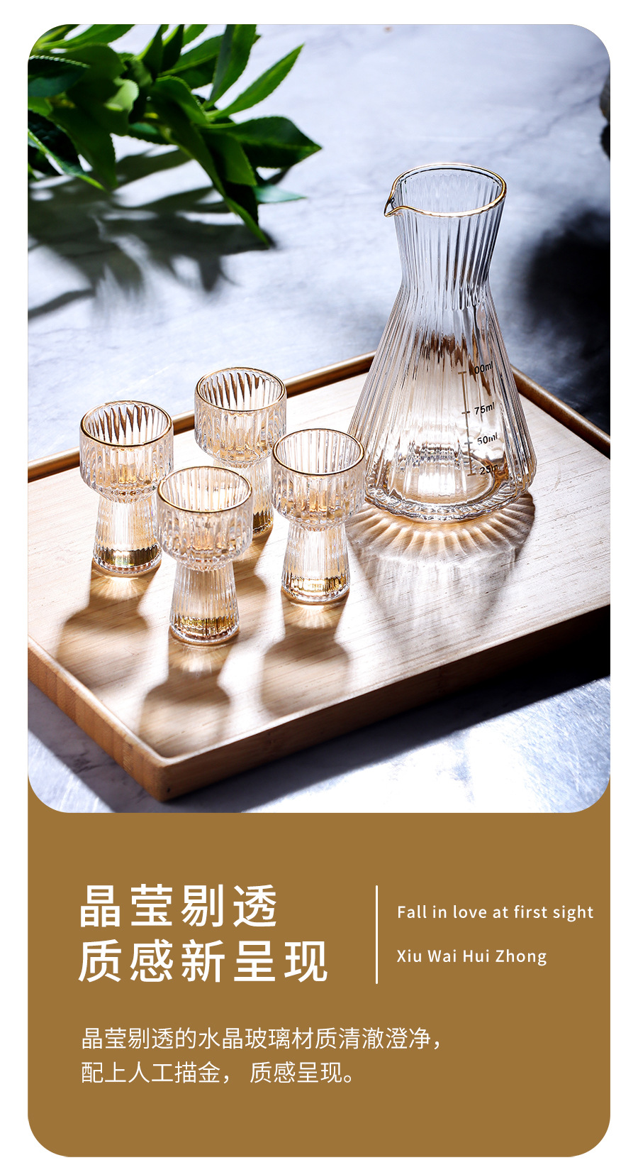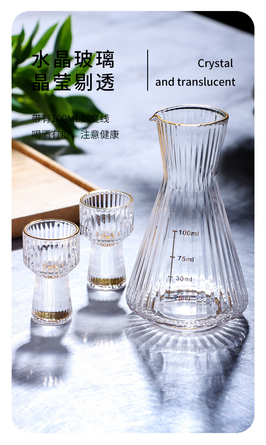新中式竖条纹分酒器束腰白酒酒具套装金边金底家用一壶一杯烈酒杯