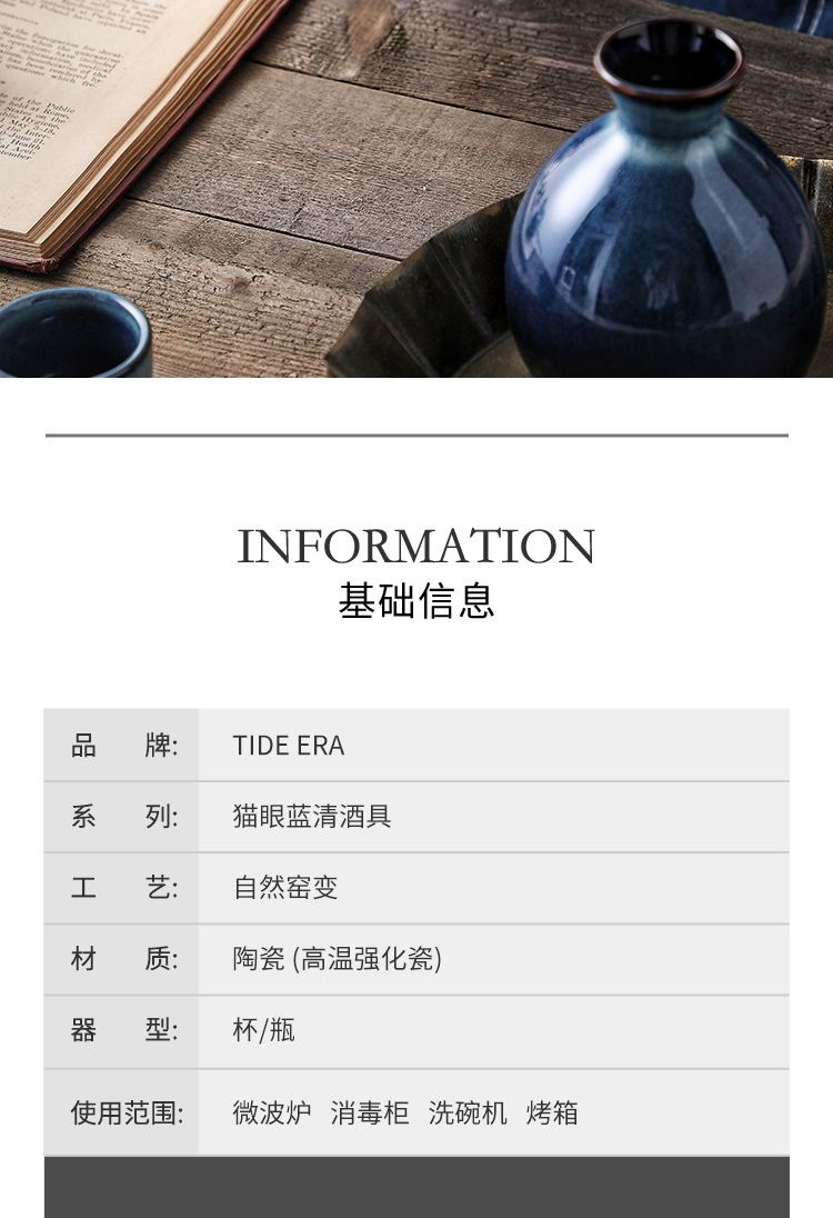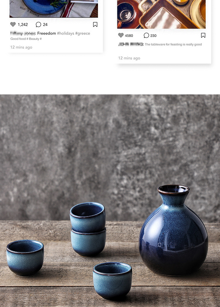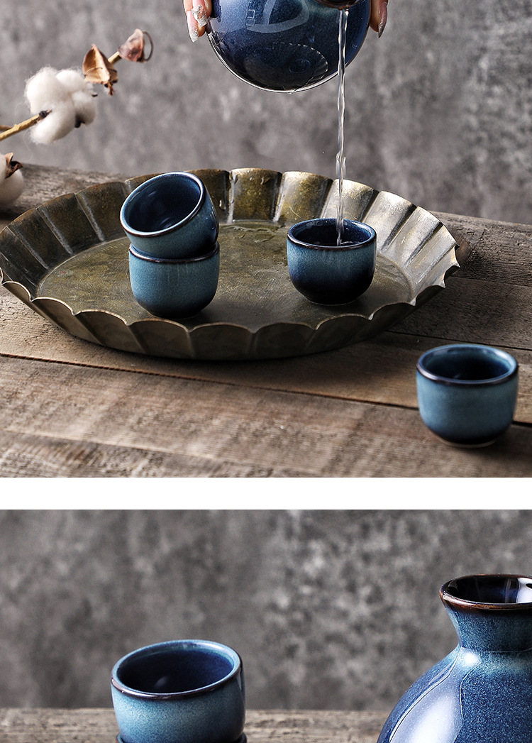 跨境窑变陶瓷酒具套装猫眼蓝复古酒杯白酒杯清酒杯分酒器酒壶酒瓶