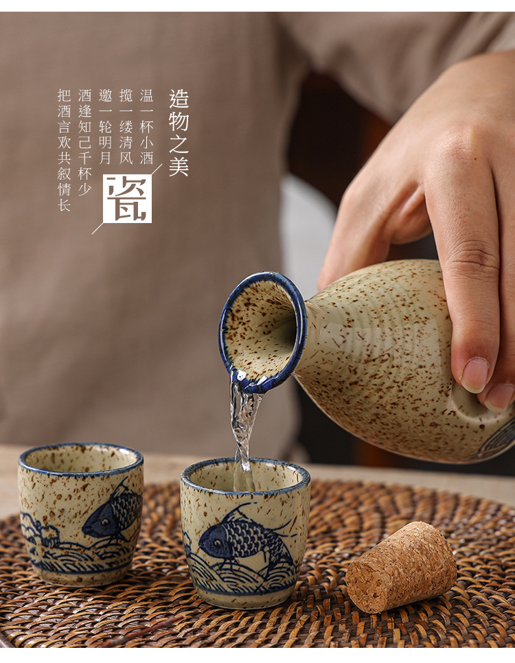 手彩酒杯日式陶瓷清酒小酒杯酒壶温酒盅分酒器釉下彩寿司店白酒杯