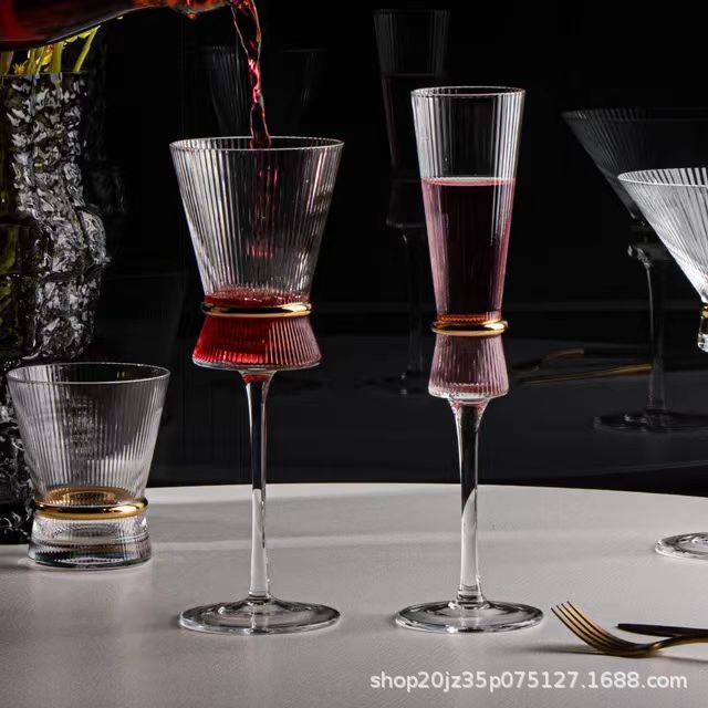密棱系列轻奢金腰带鸡尾杯醒酒器香槟杯口杯无铅水晶玻璃组合套装