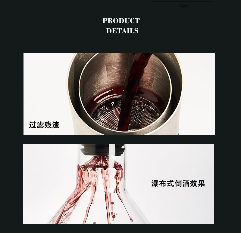 跨境玻璃倒酒器家用瀑布红酒醒酒器带过滤葡萄酒分酒器快速醒酒器