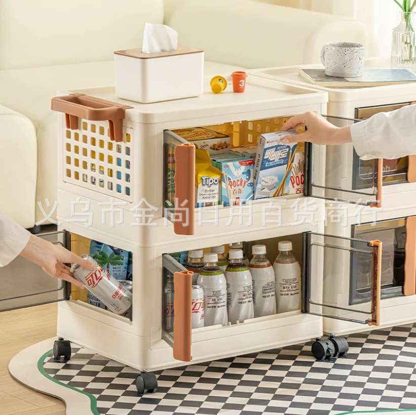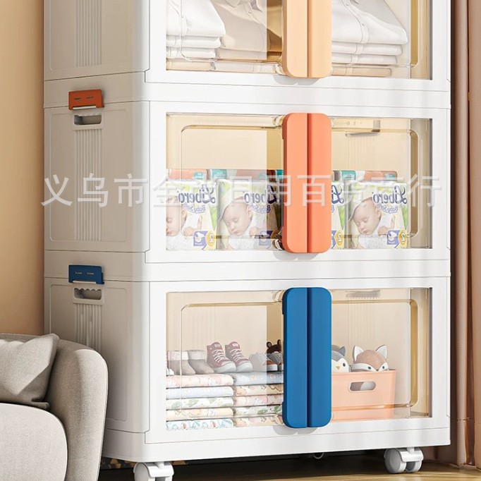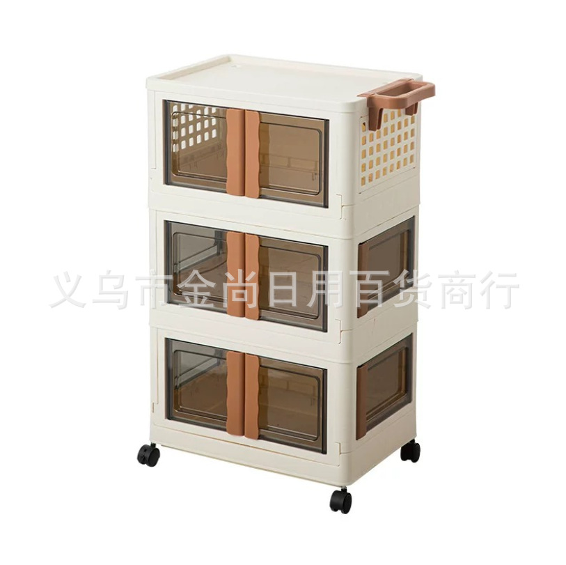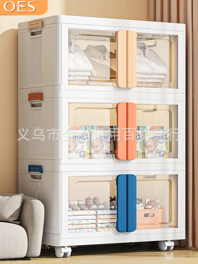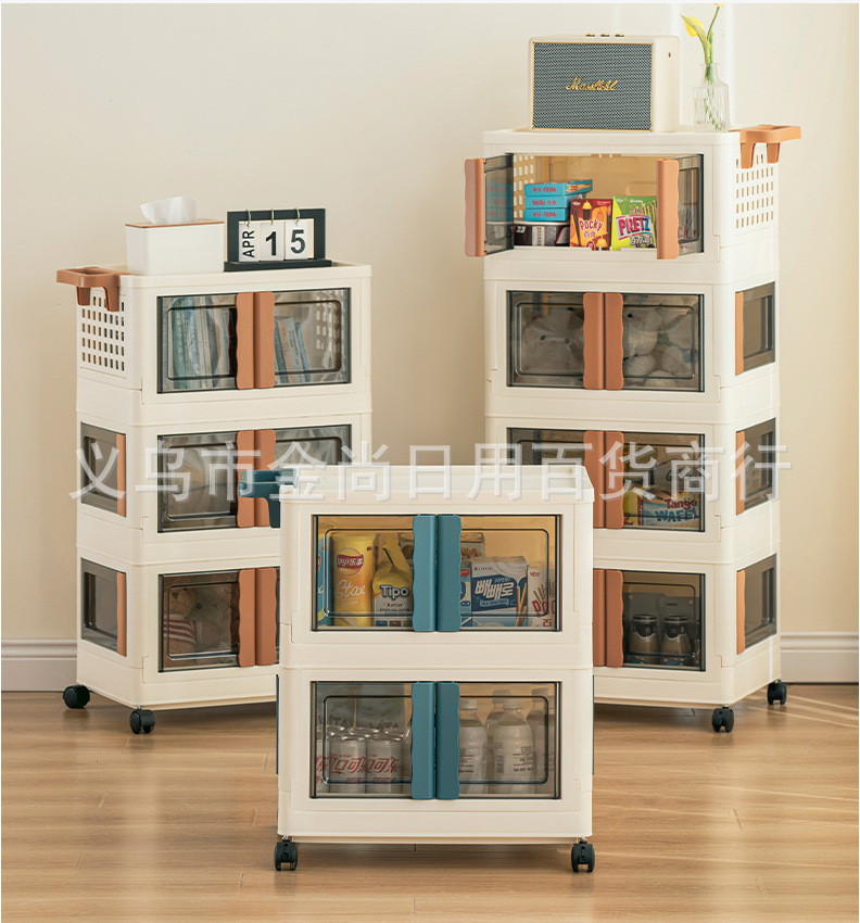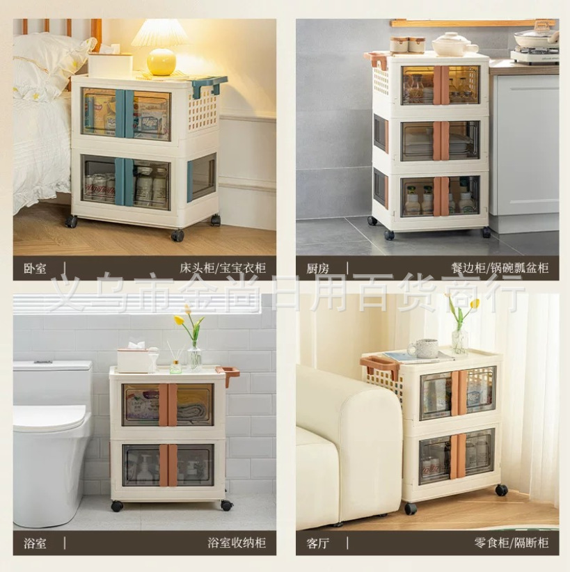 多功能折叠收纳箱小推车婴童用品衣物收纳柜可移动多层置物架