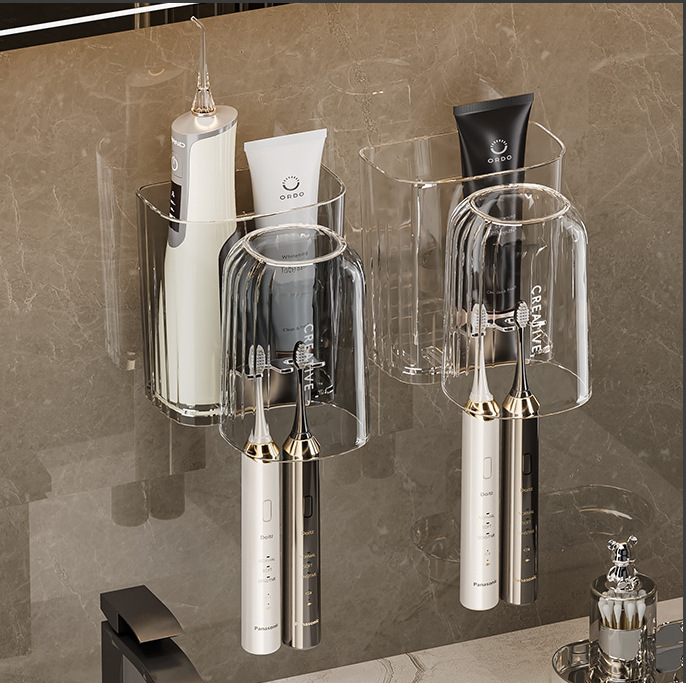 漱口杯收纳简约无痕壁挂牙刷架牙杯置物架卫生间免打孔浴室洗漱台