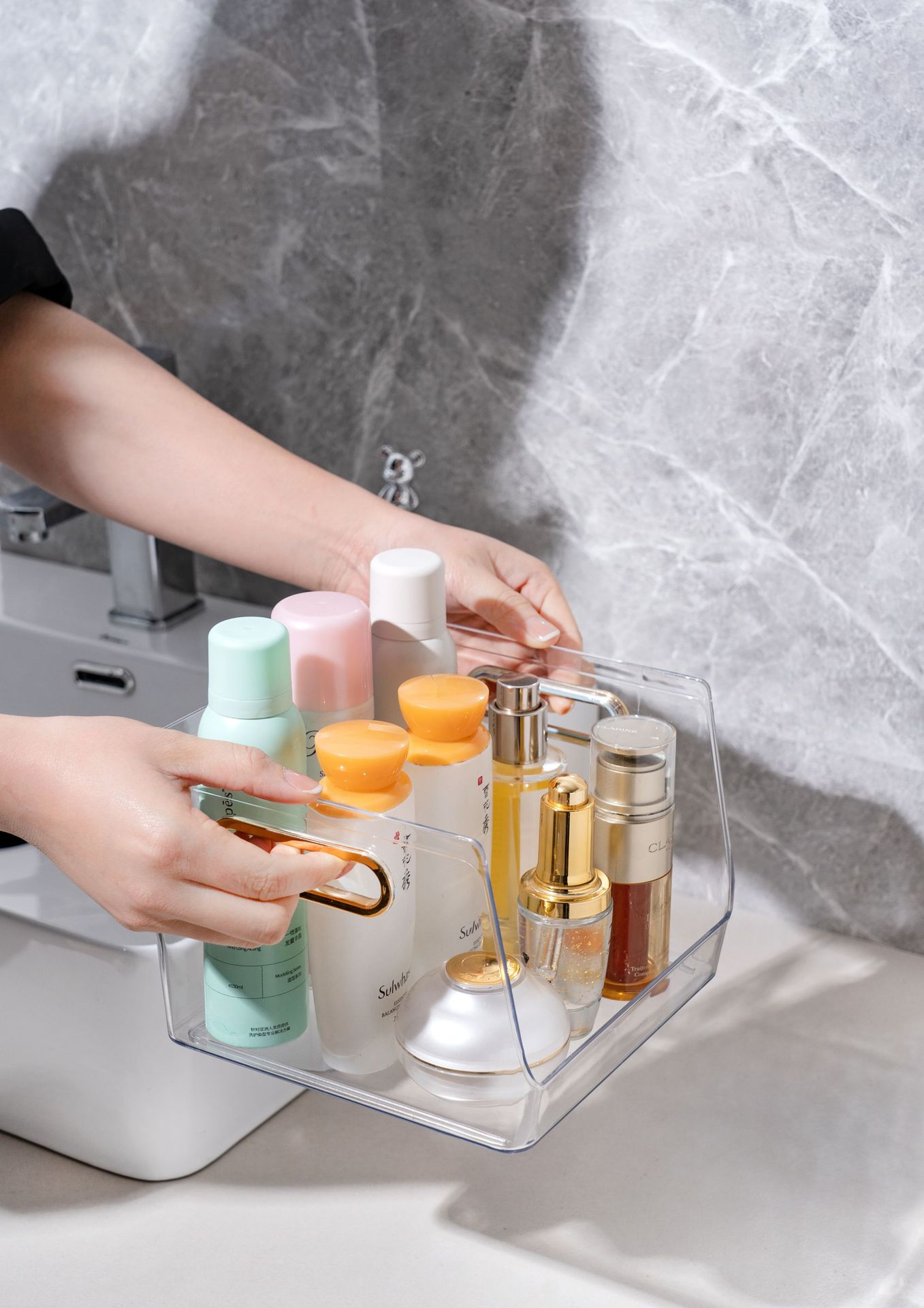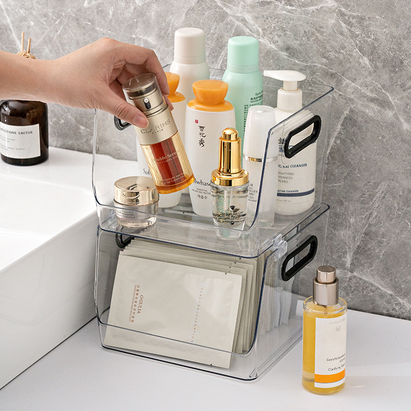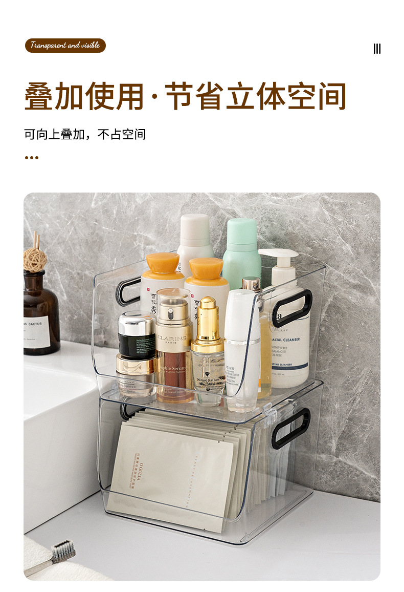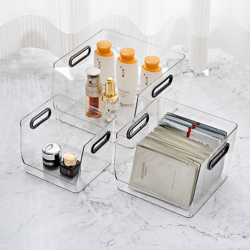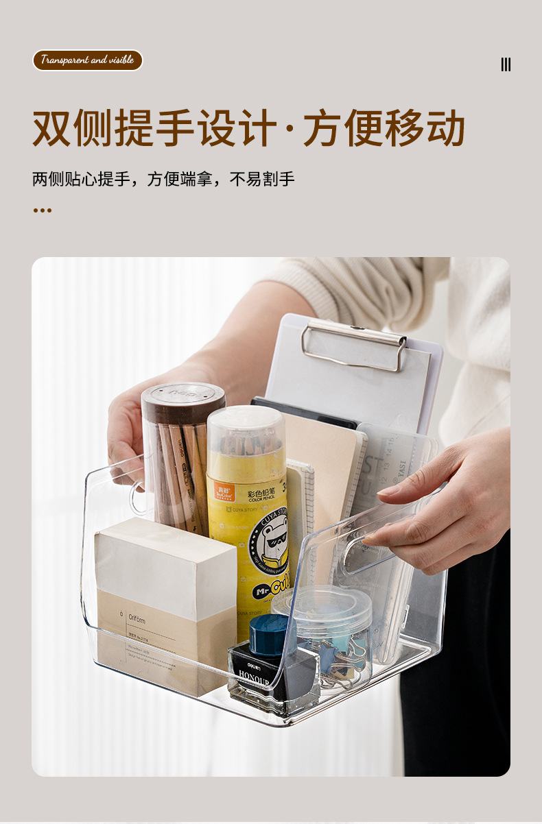 书本收纳盒透明塑料储物整理箱高中桌可叠加pet收纳筐 厂家直供