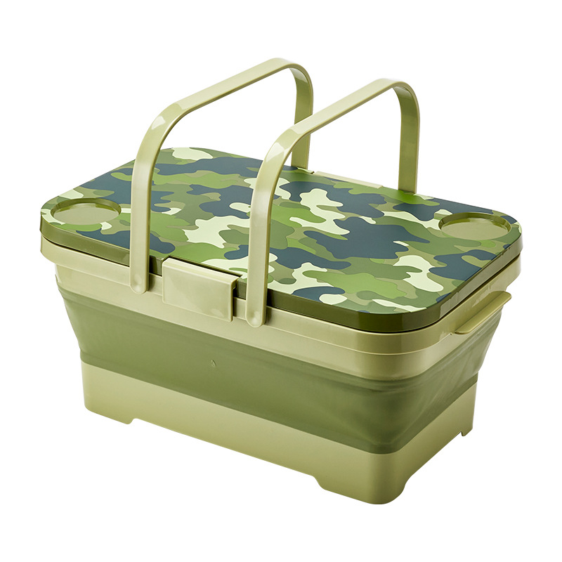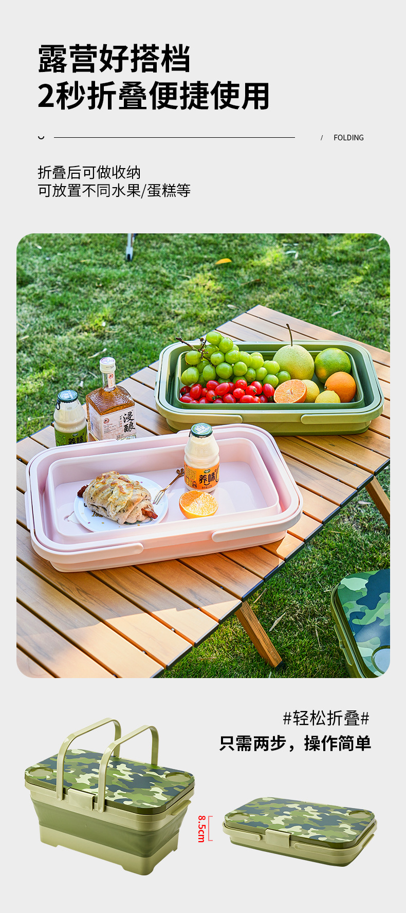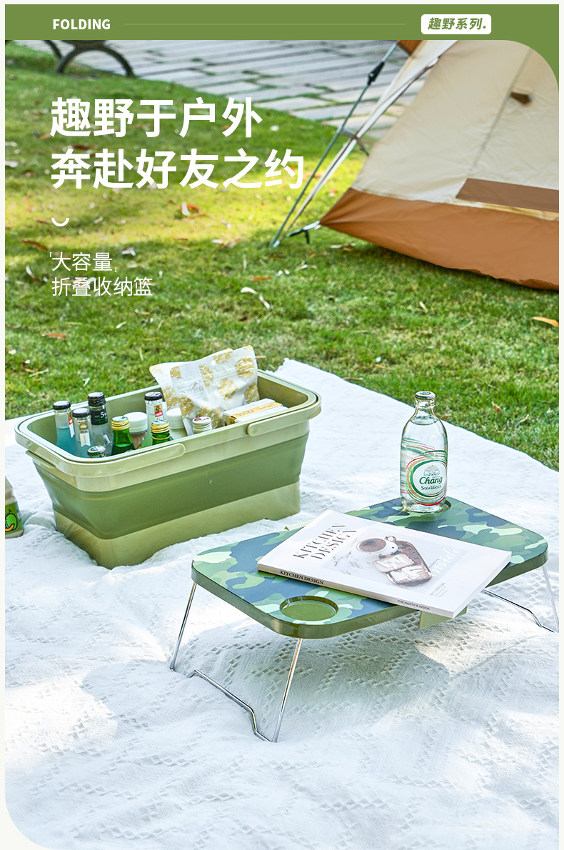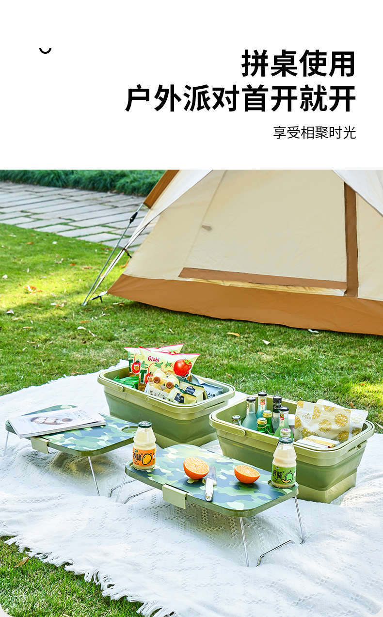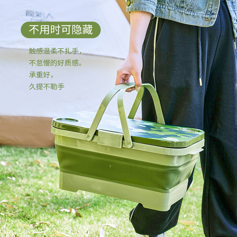 户外露营野餐篮多功能便携折叠带盖收纳篮自带小桌子折叠储物箱