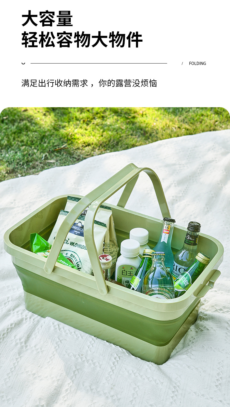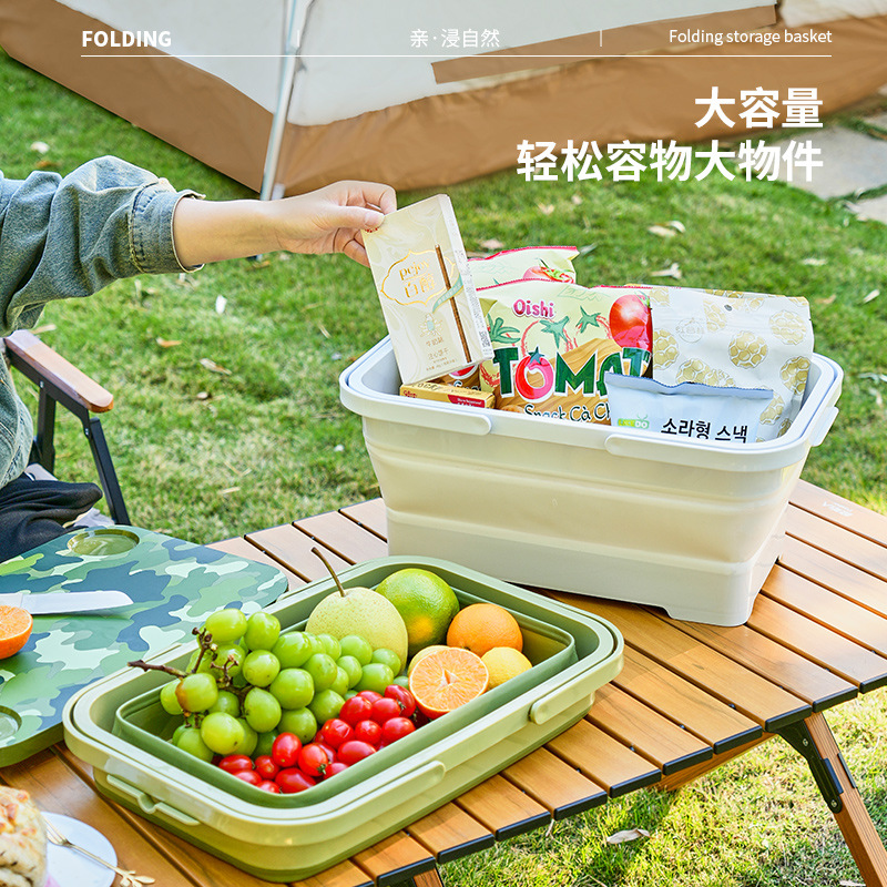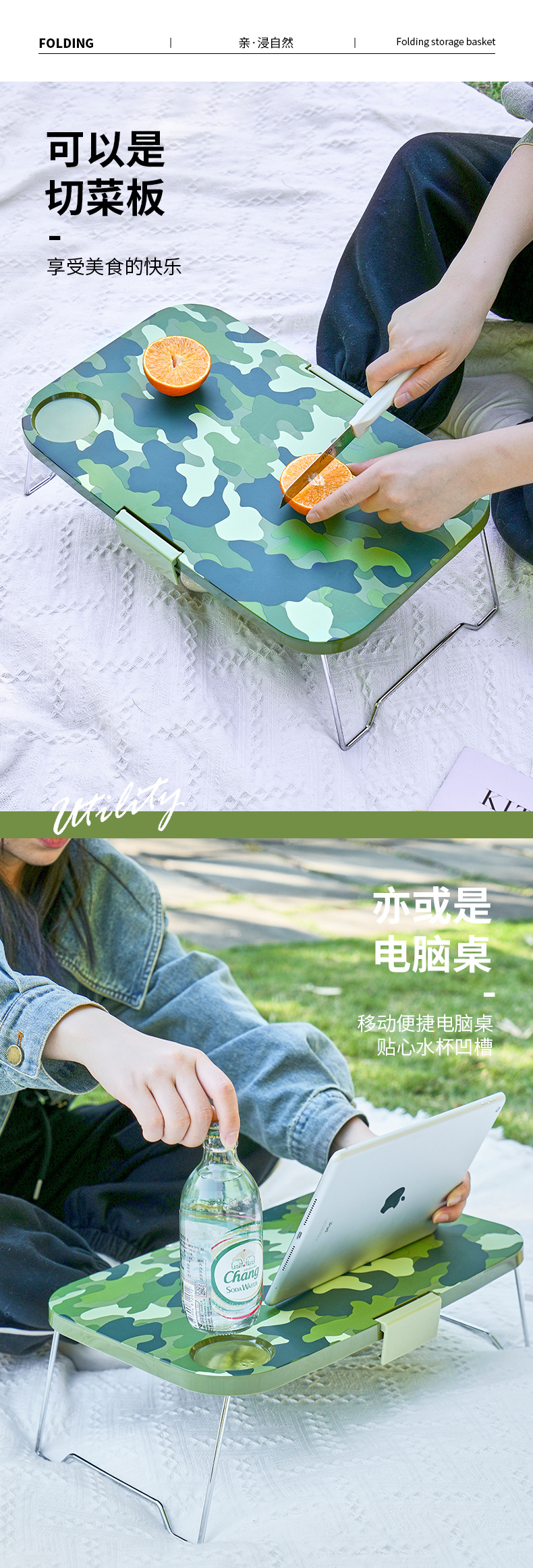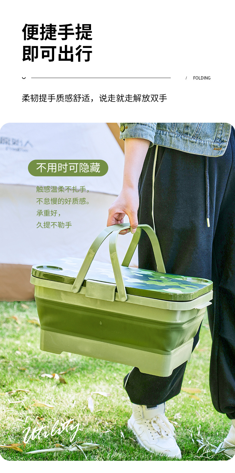 户外露营野餐篮多功能便携折叠带盖收纳篮自带小桌子折叠储物箱