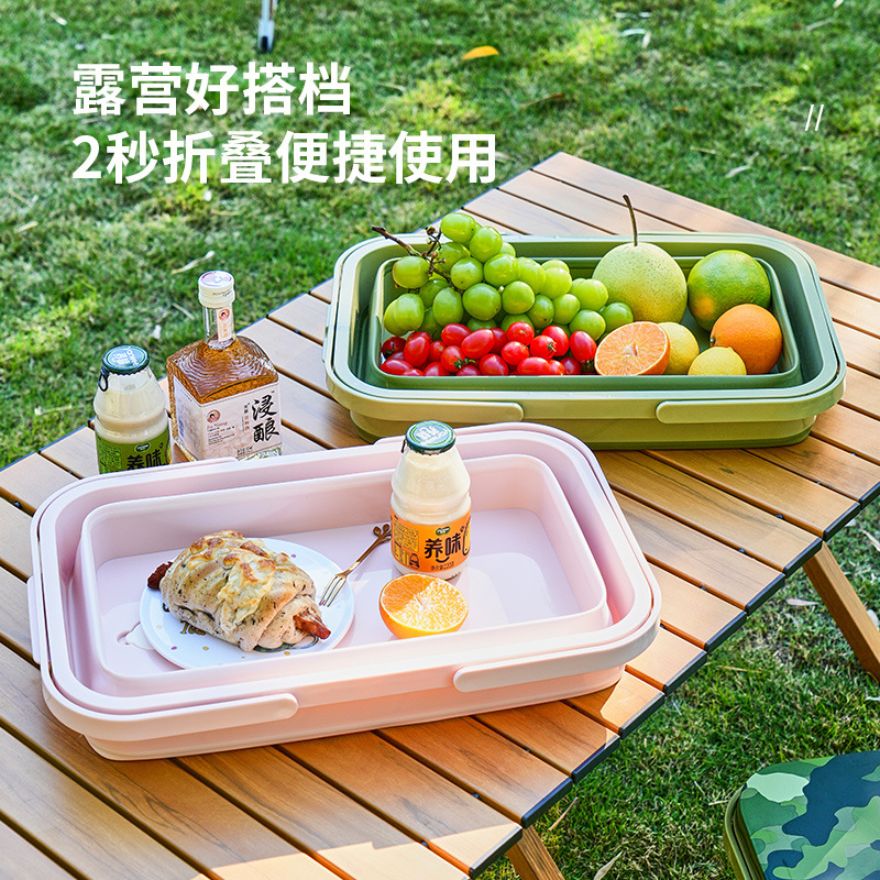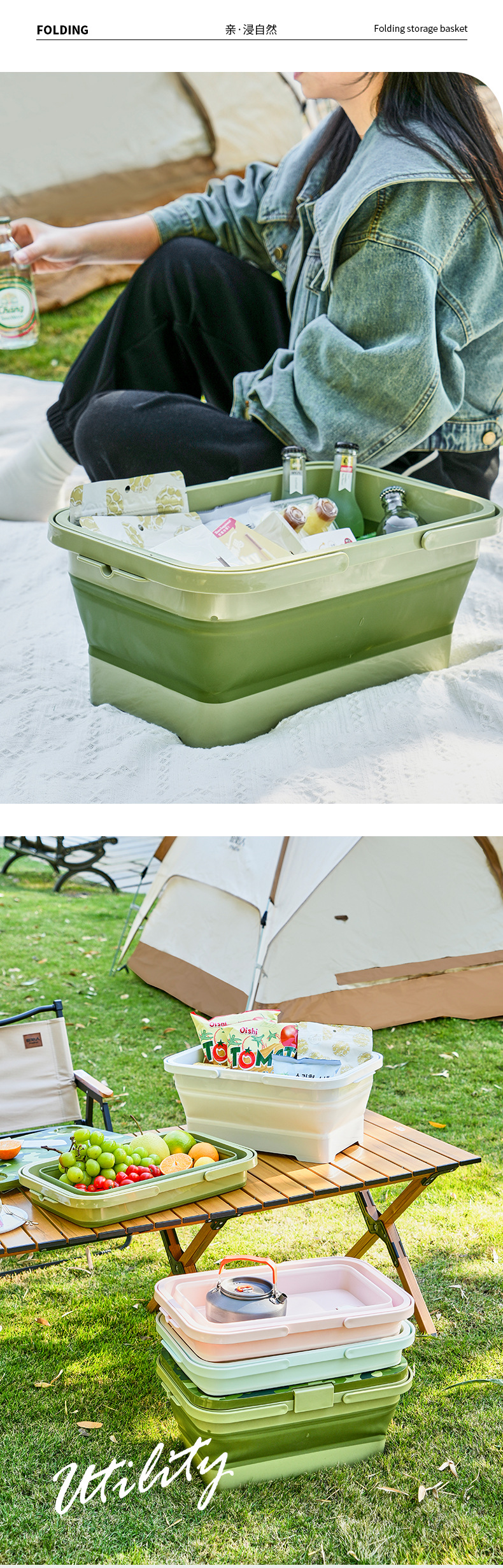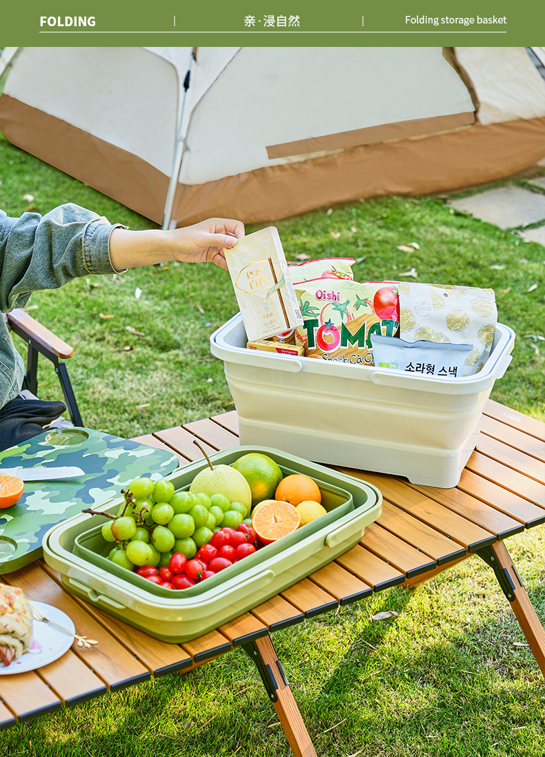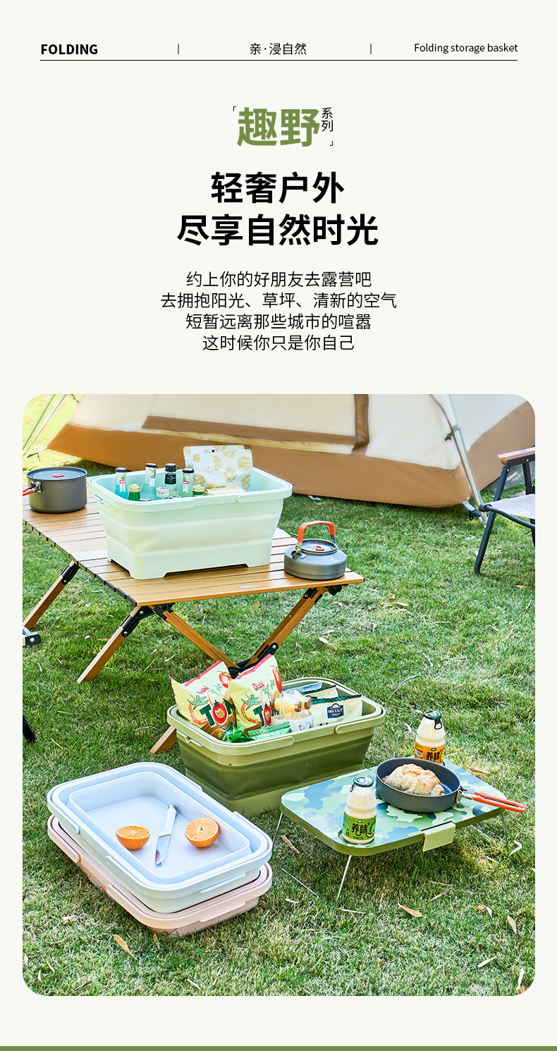 户外露营野餐篮多功能便携折叠带盖收纳篮自带小桌子折叠储物箱