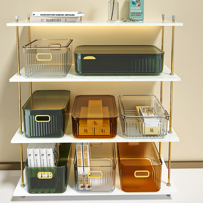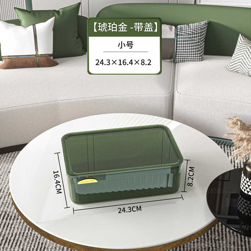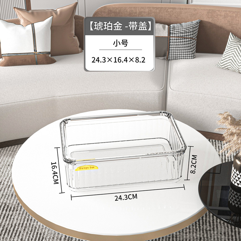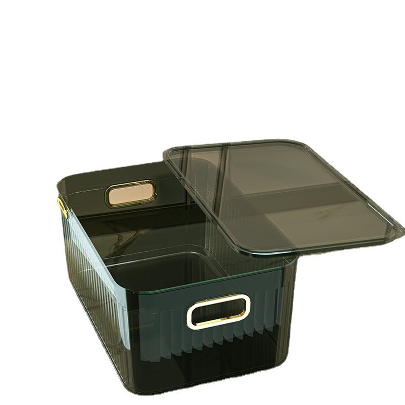 桌面收纳盒轻奢镀金多功能杂物整理化妆品盒带盖防尘储物箱零食筐