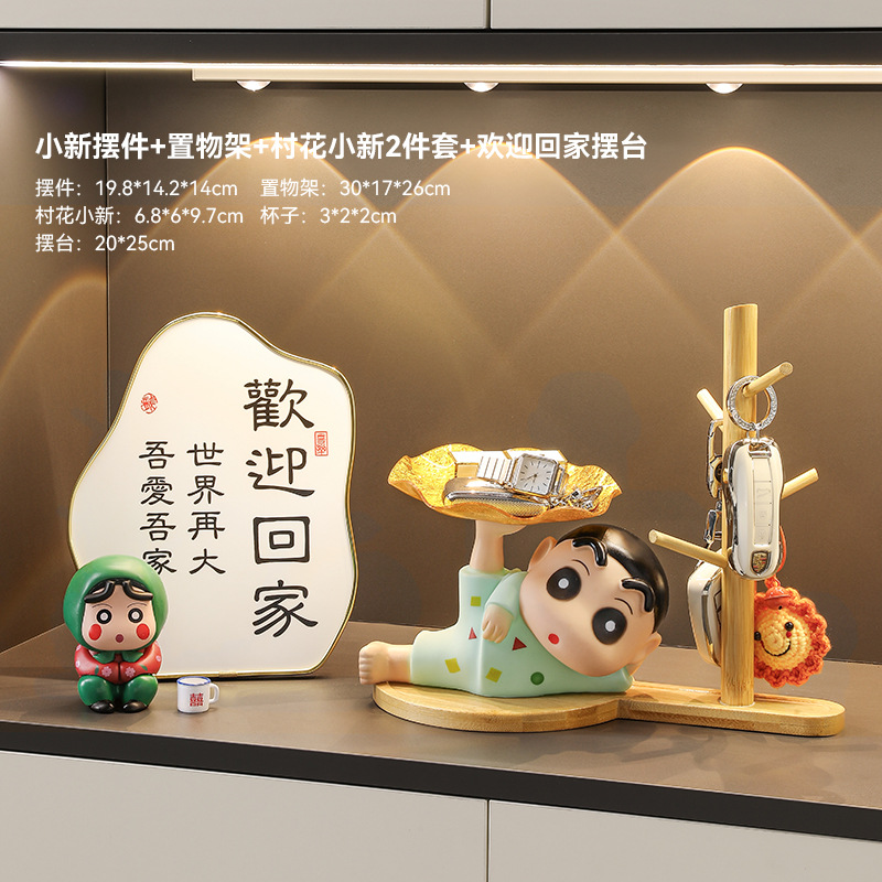 搪胶蜡笔小新钥匙收纳装饰品摆件入户玄关客厅桌面小众家居好物