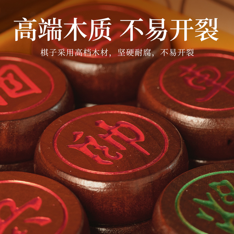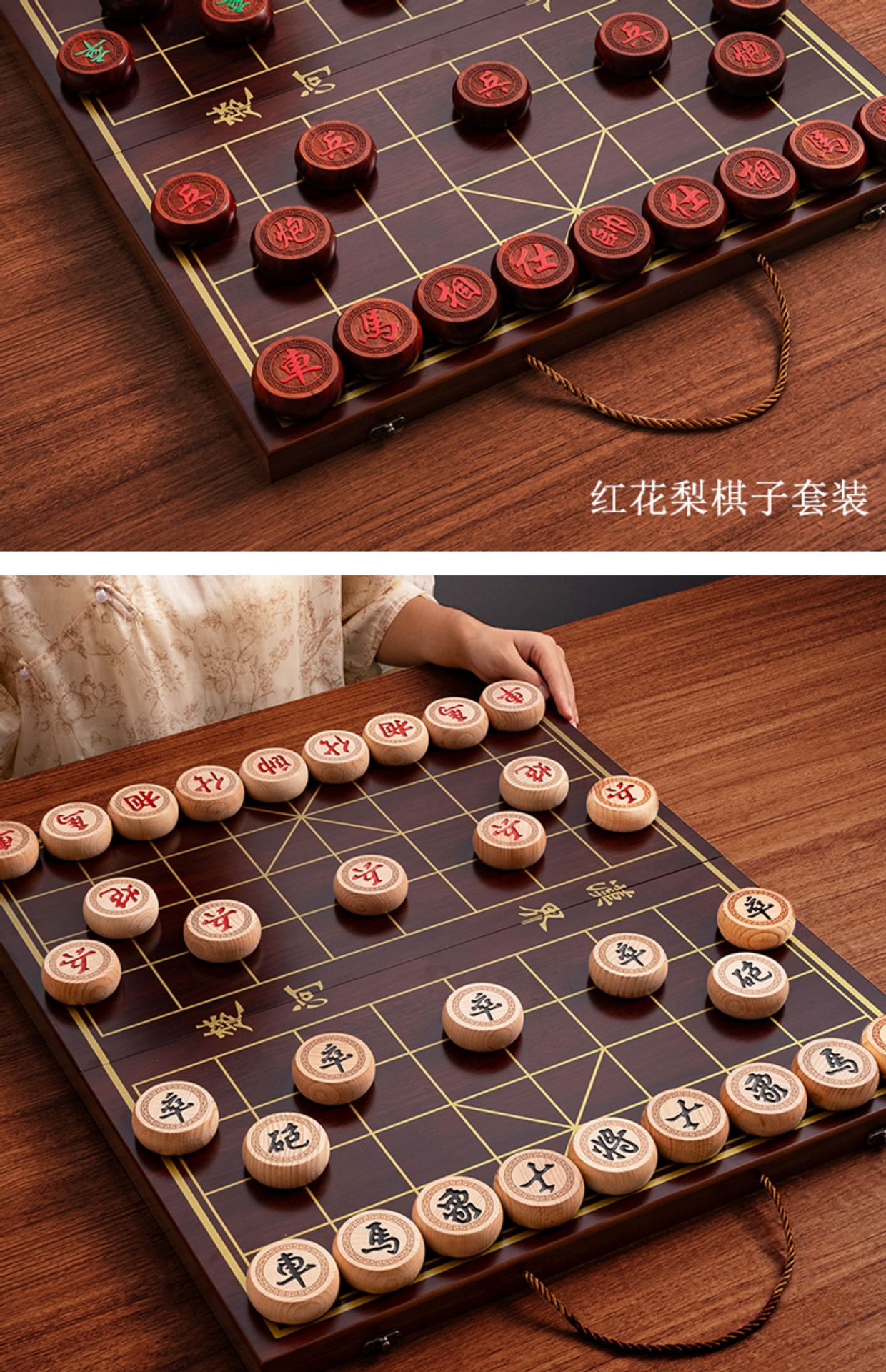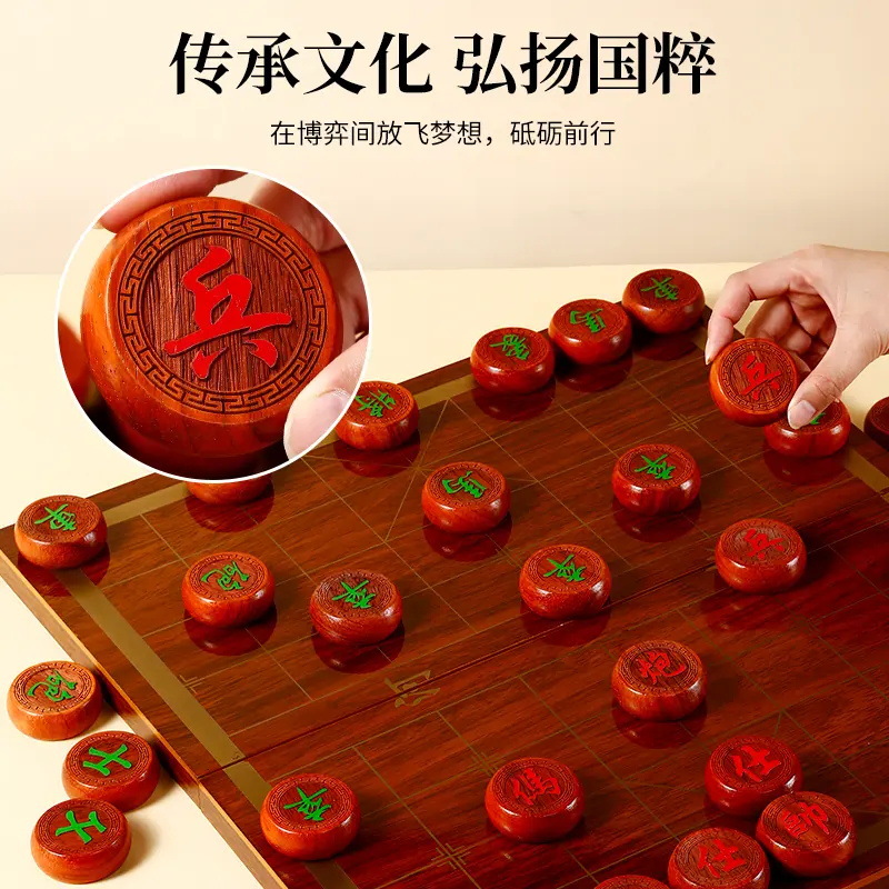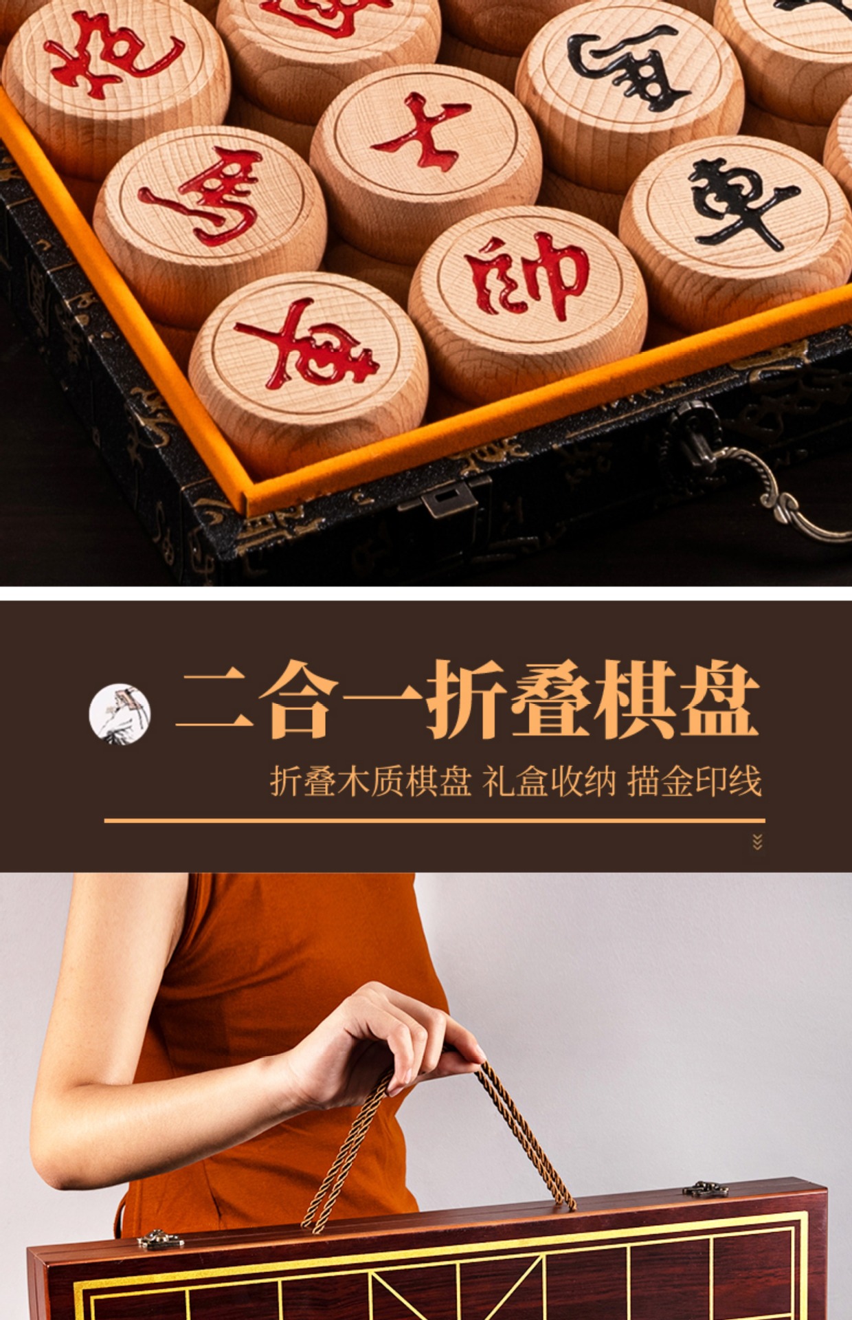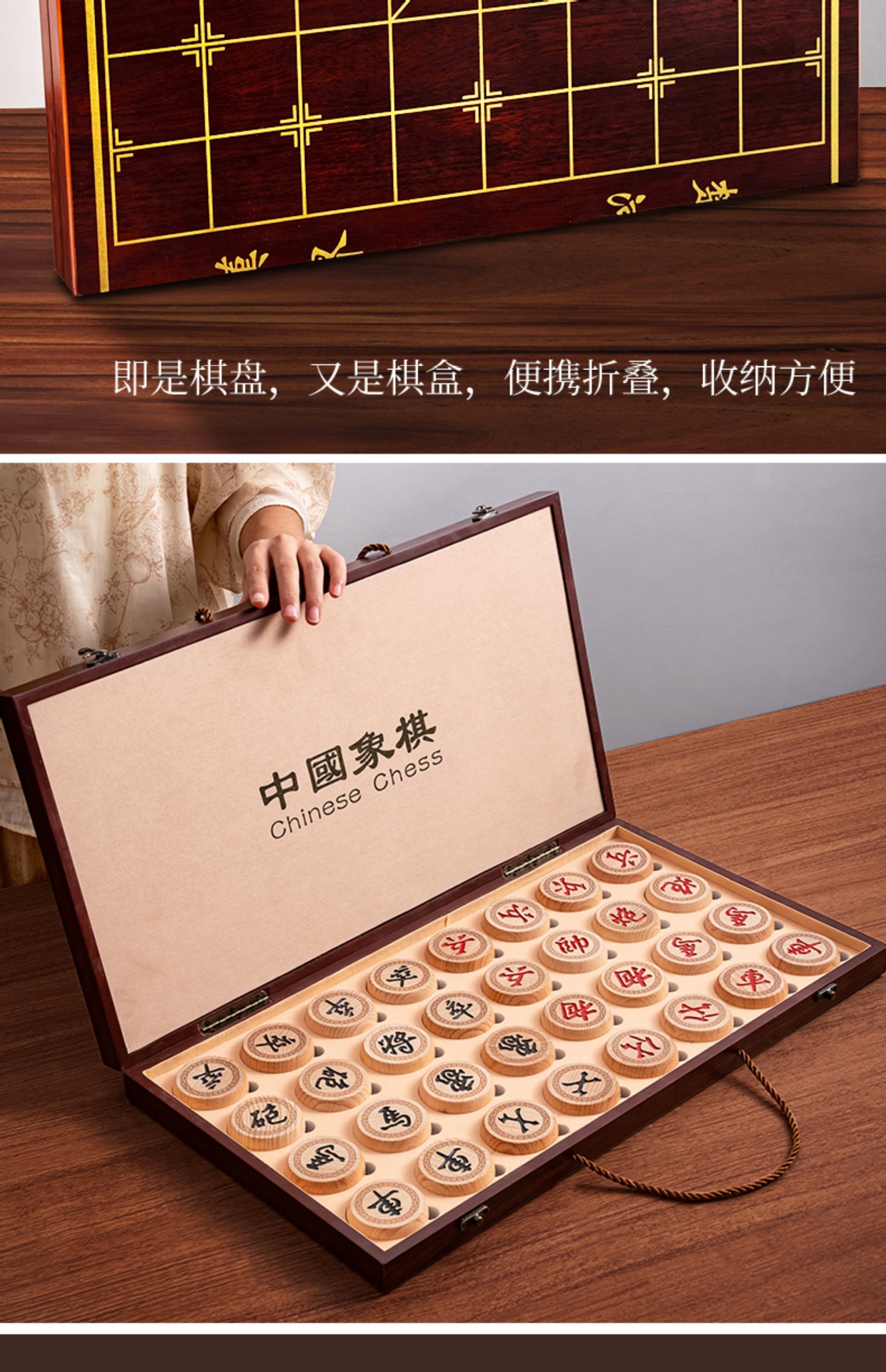 高档实木中国象棋成人象棋折叠实木棋盘成人送礼手提便携收纳盒送