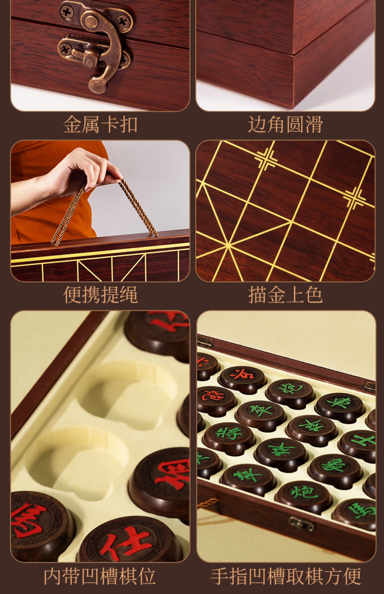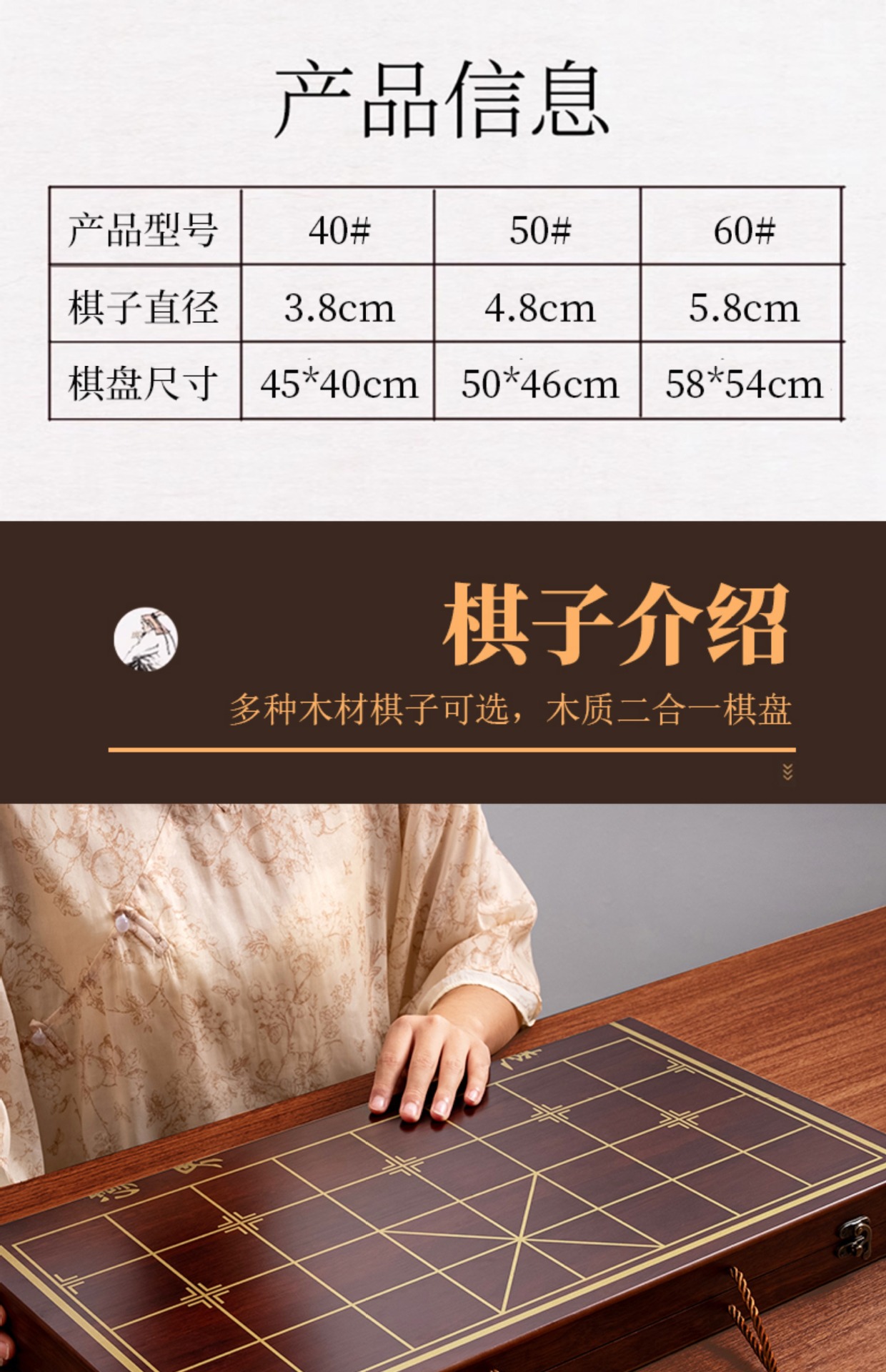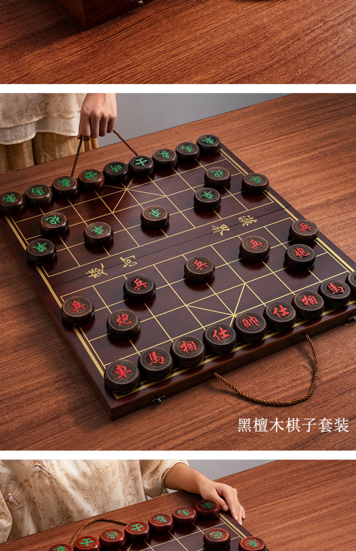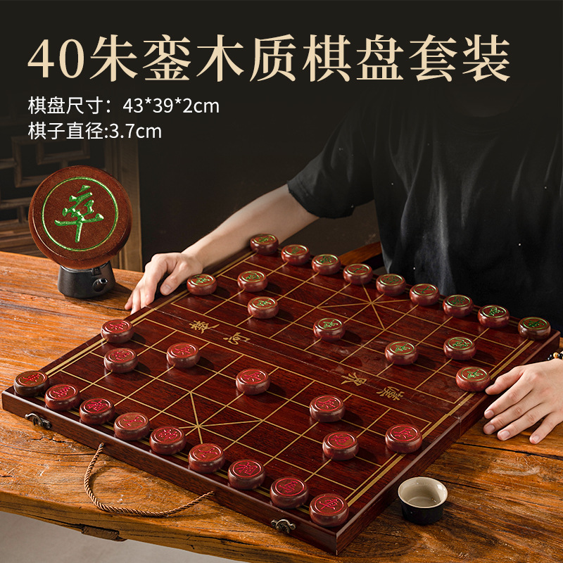 高档实木中国象棋成人象棋折叠实木棋盘成人送礼手提便携收纳盒送