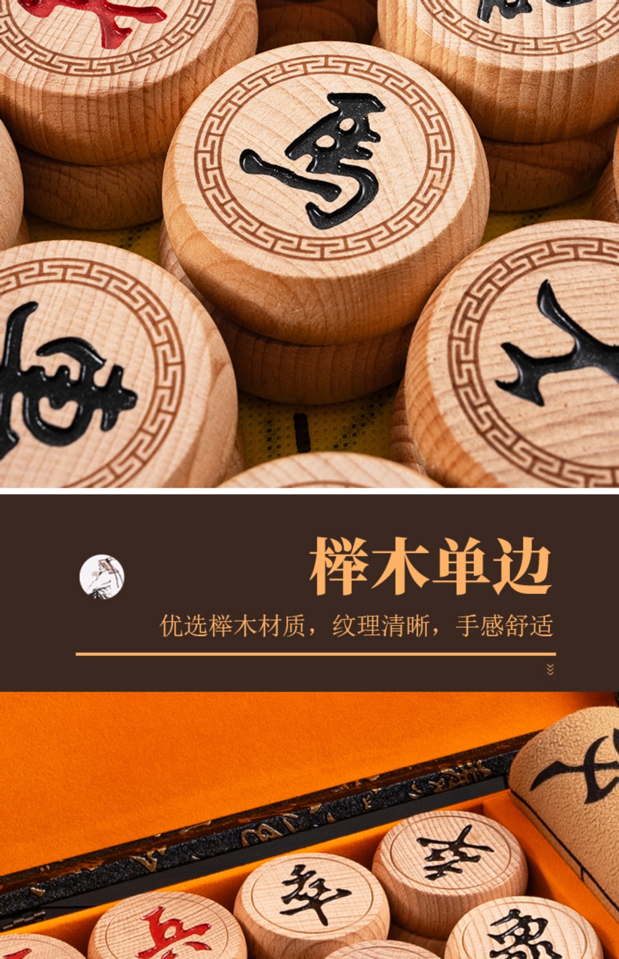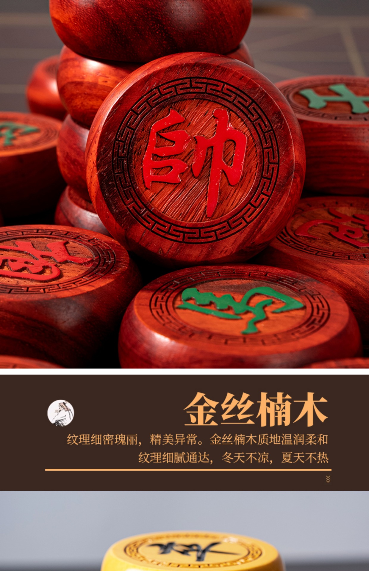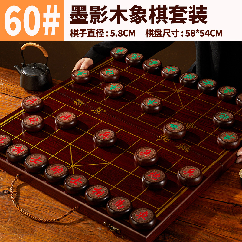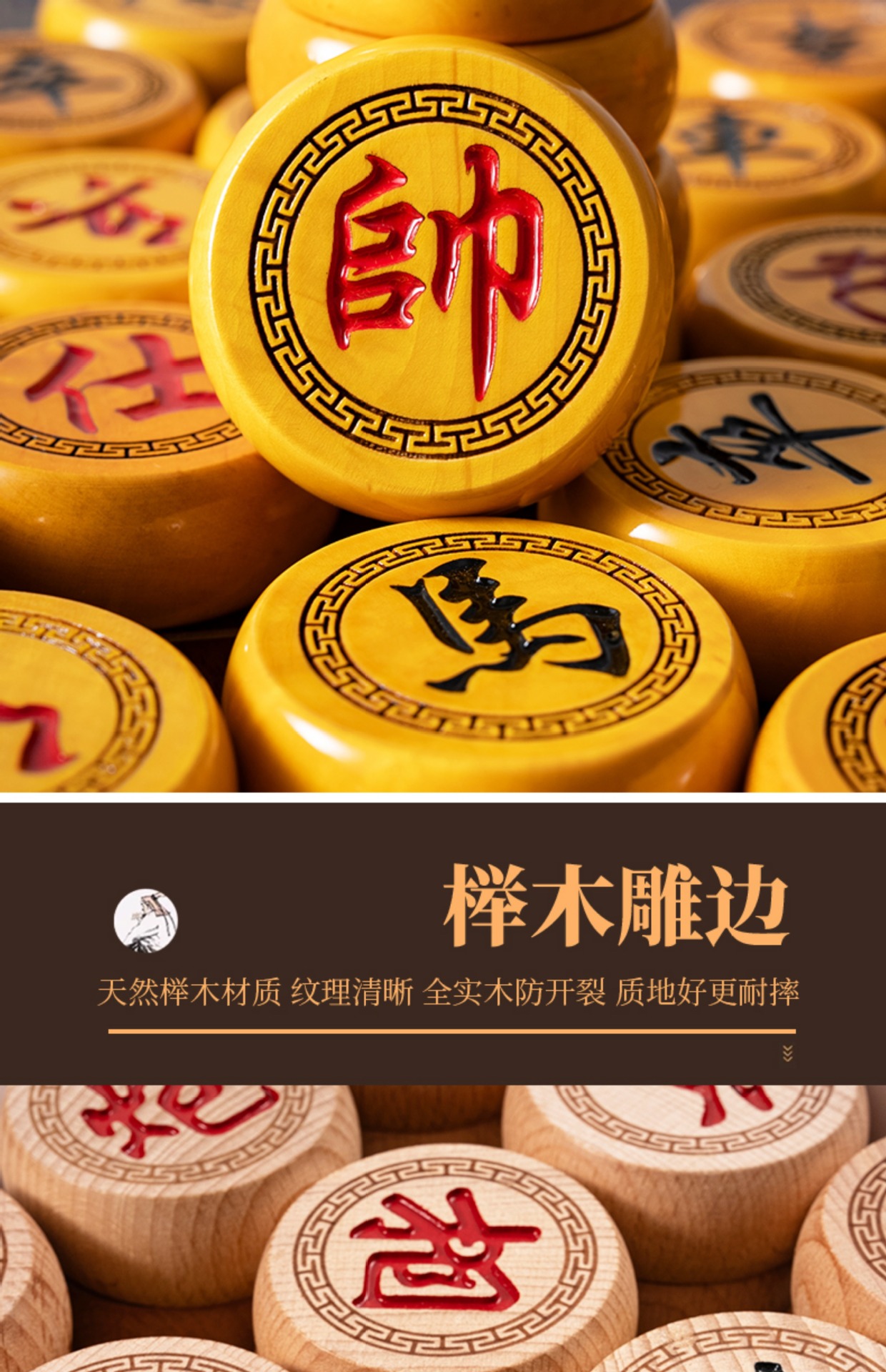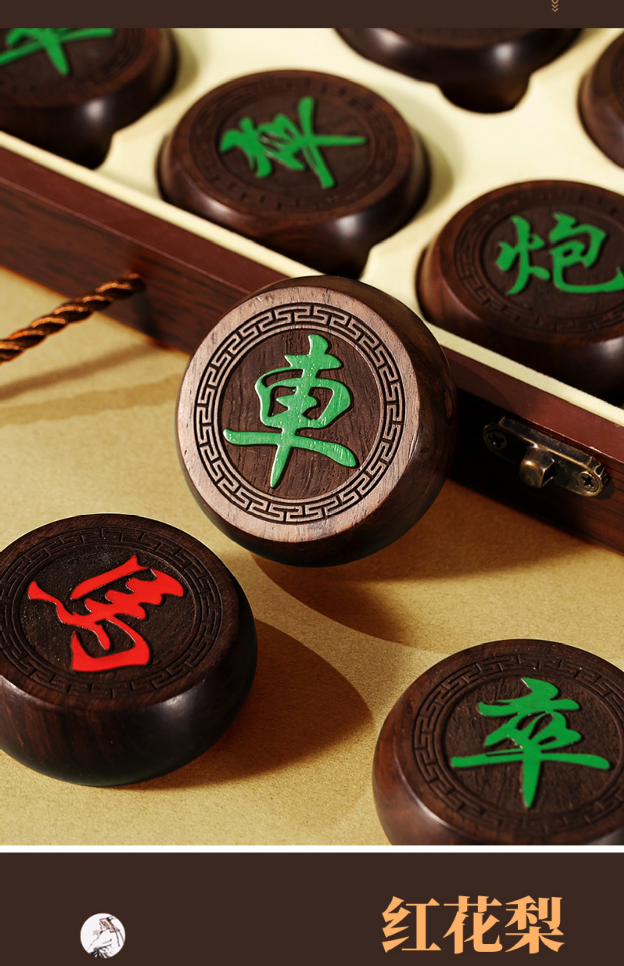 高档实木中国象棋成人象棋折叠实木棋盘成人送礼手提便携收纳盒送