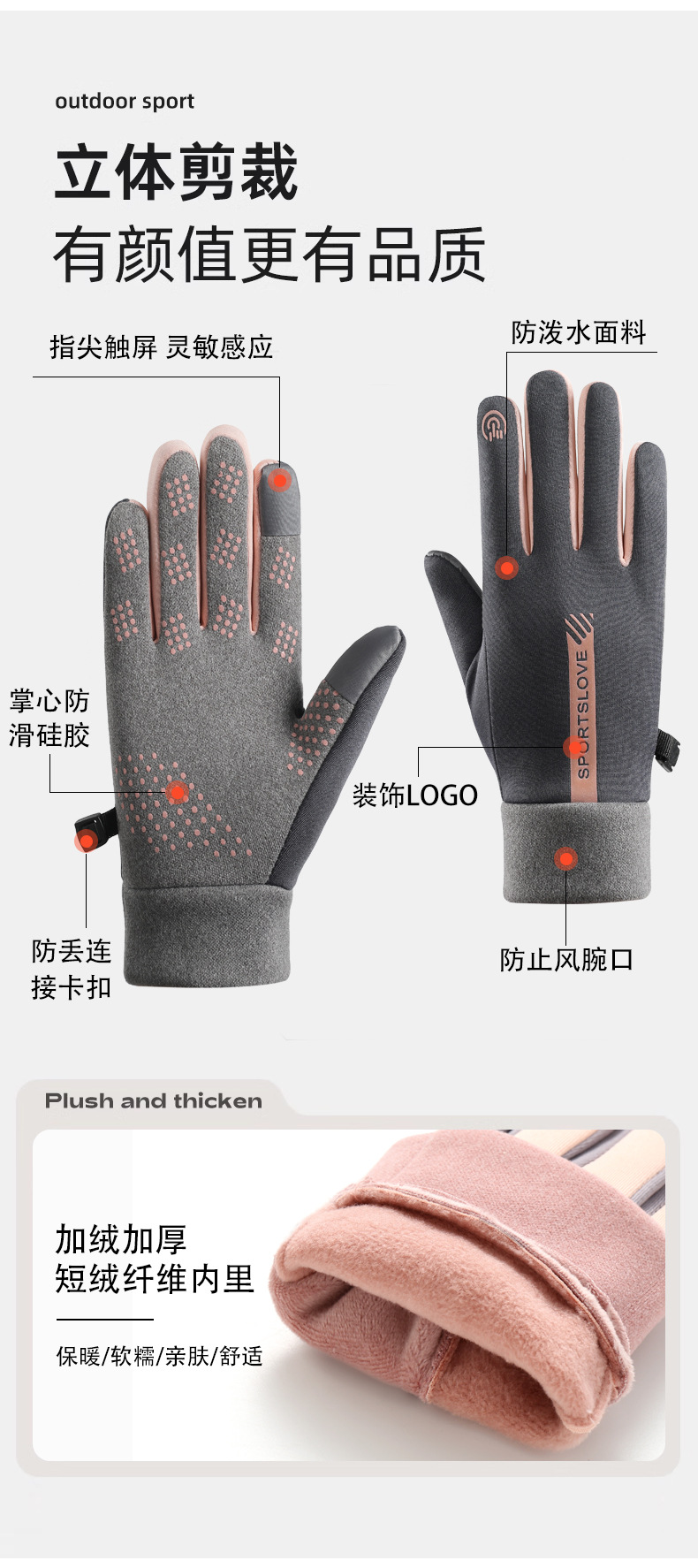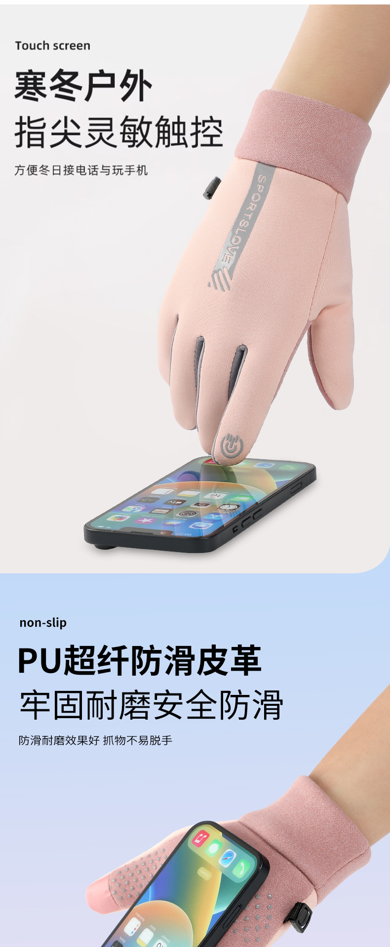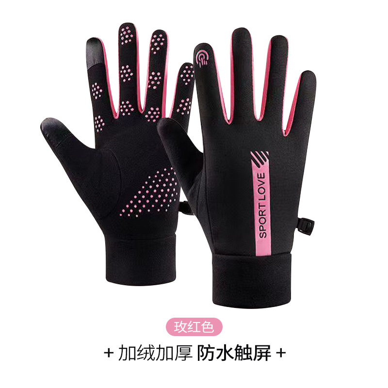 保暖手套女冬季可触屏运动户外开车防滑加绒加厚防寒防风骑行手套