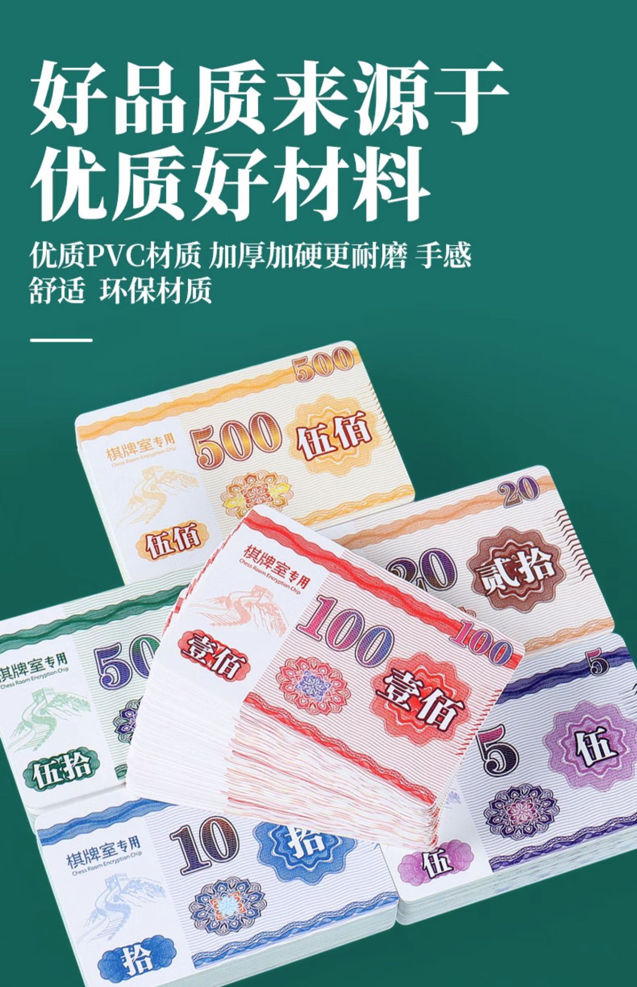 筹码卡棋牌专用卡片PVC德州扑克麻将加厚磨砂麻将打牌圆角耐磨