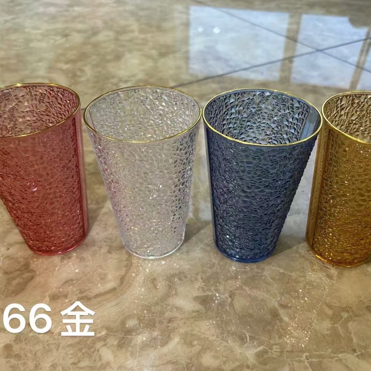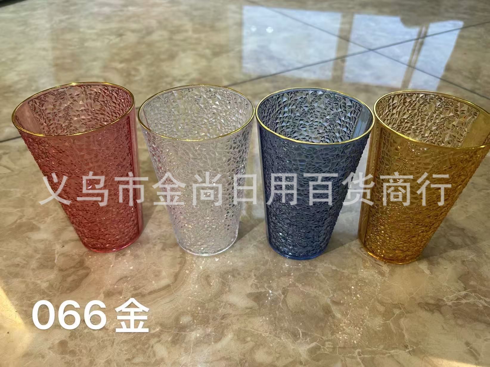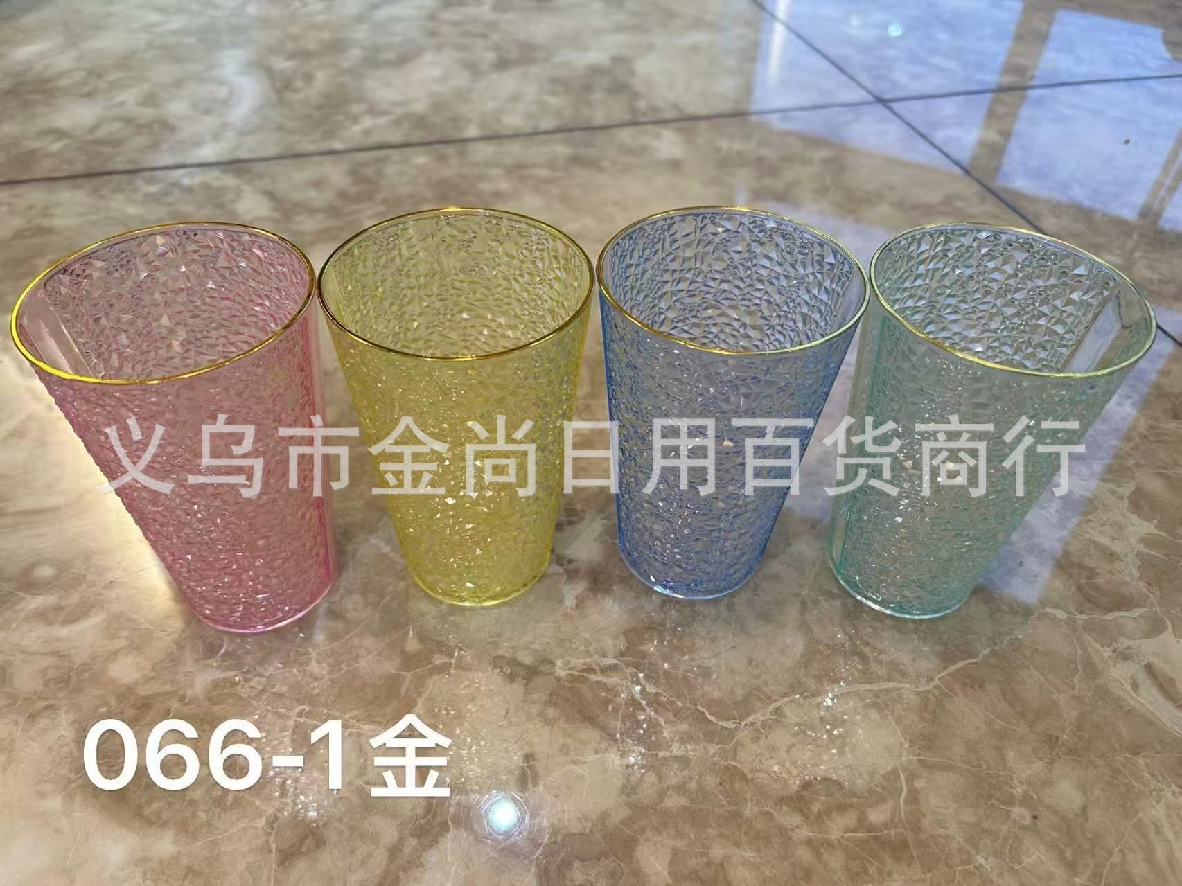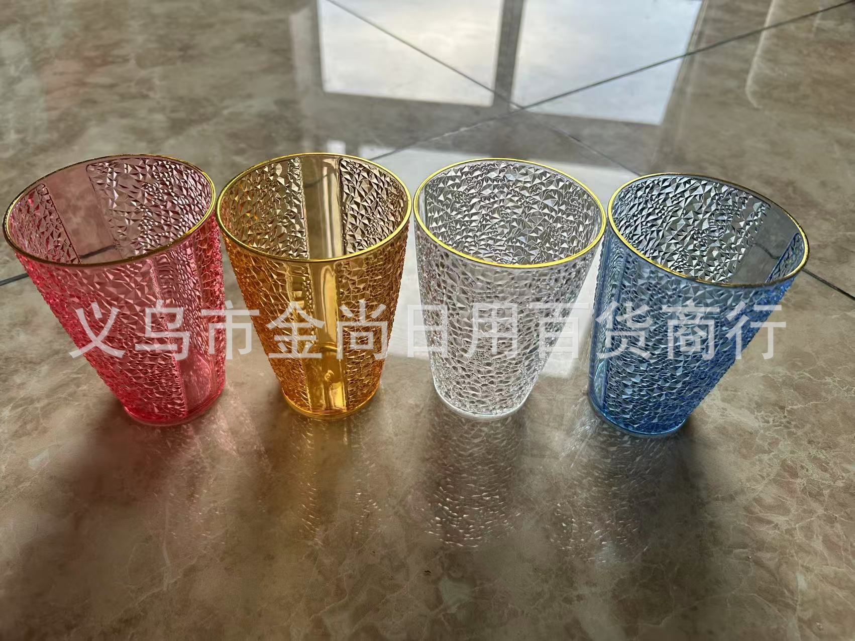 多彩水纹饮料杯刷牙杯口杯带金边创意杯子外贸塑料杯混色口杯简装