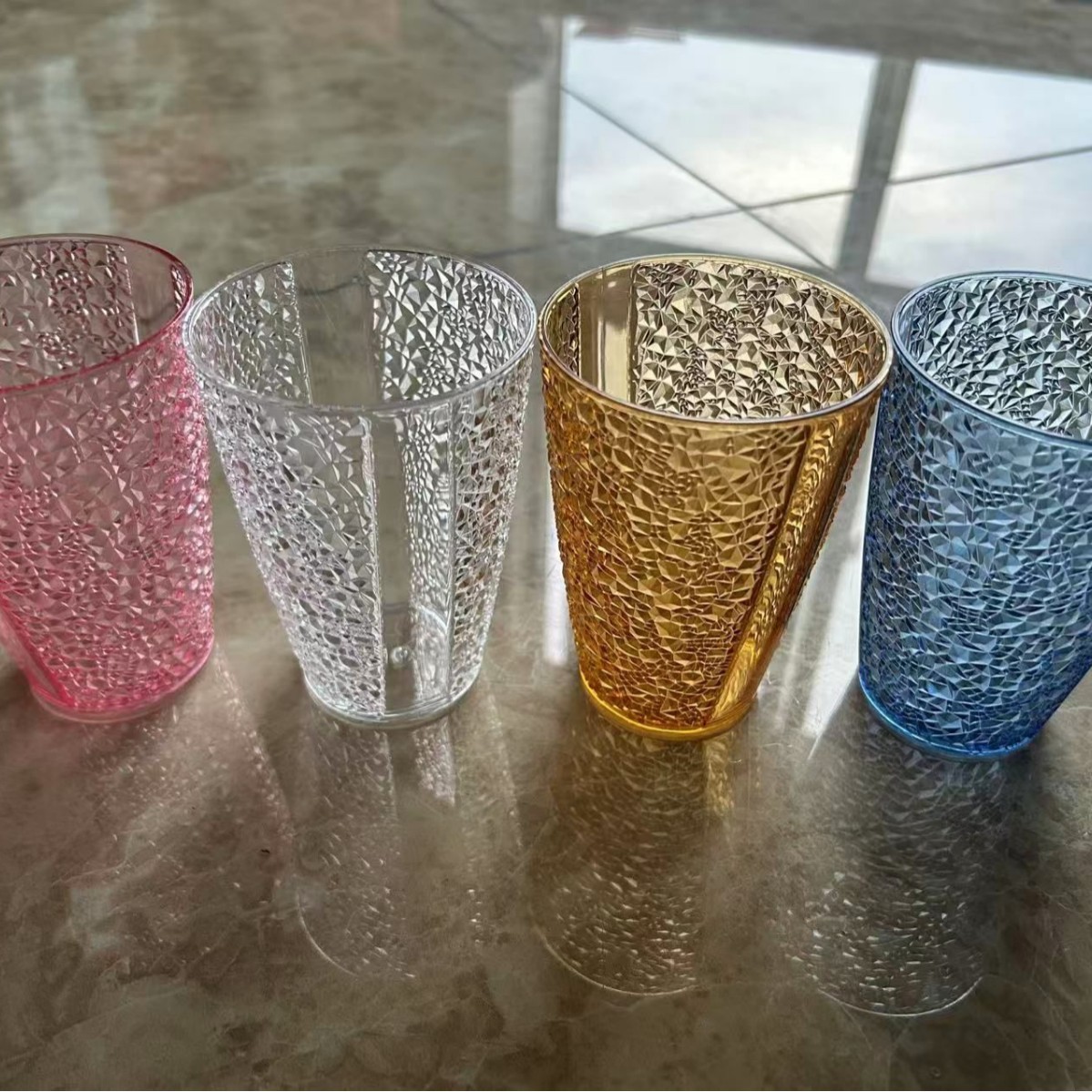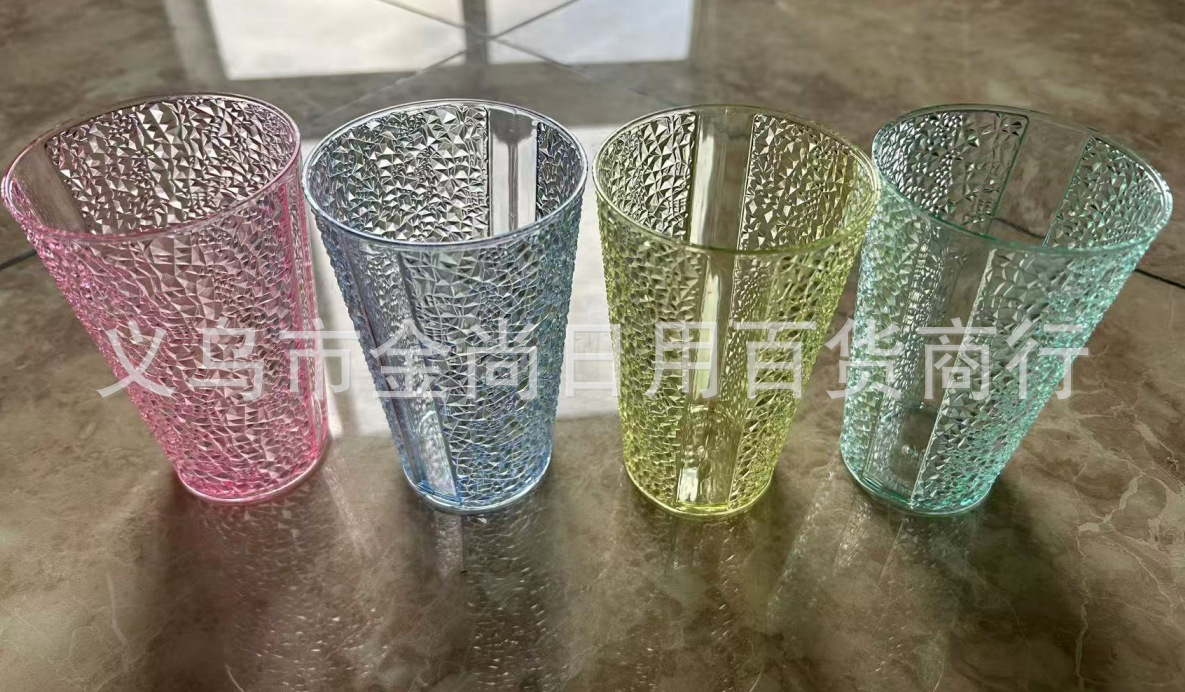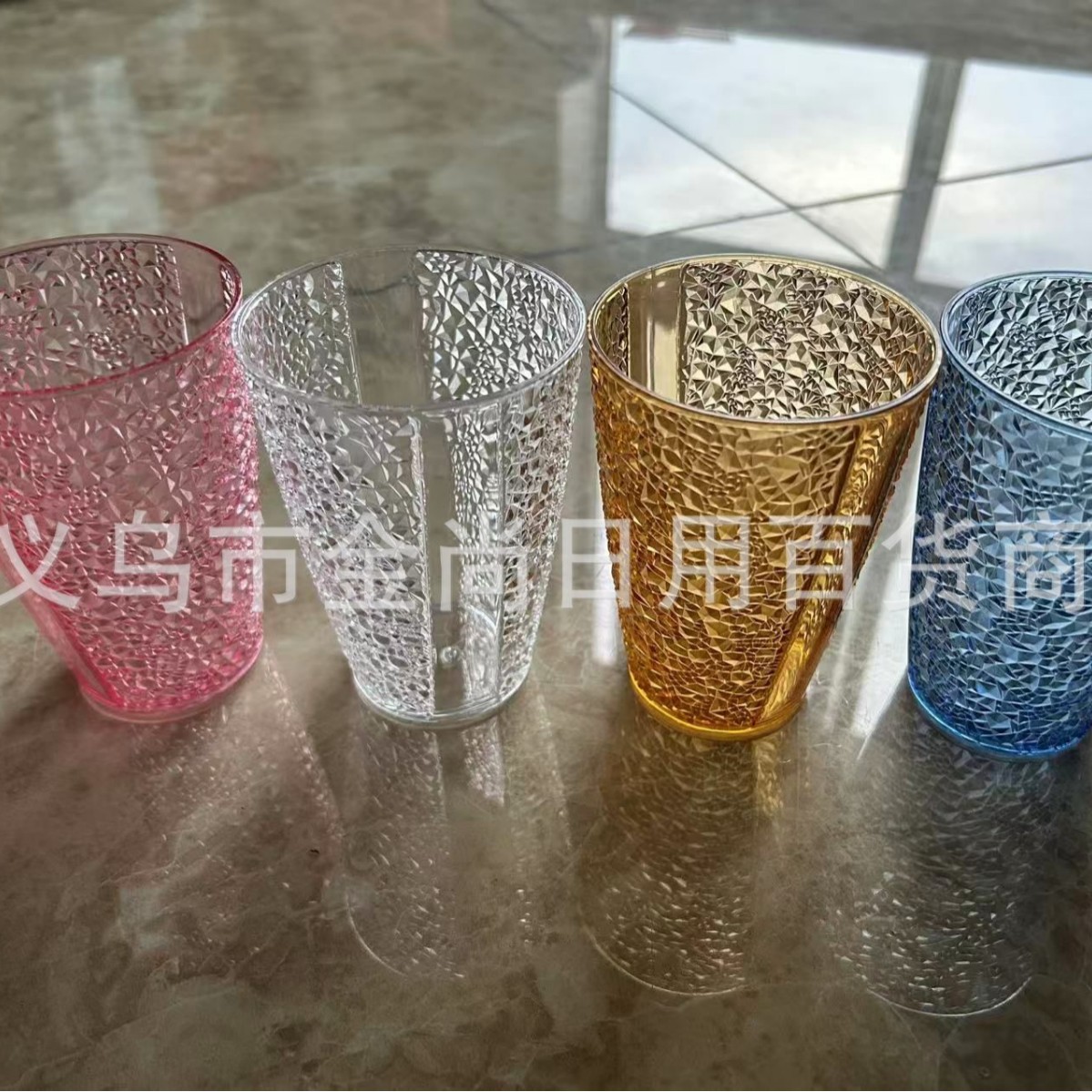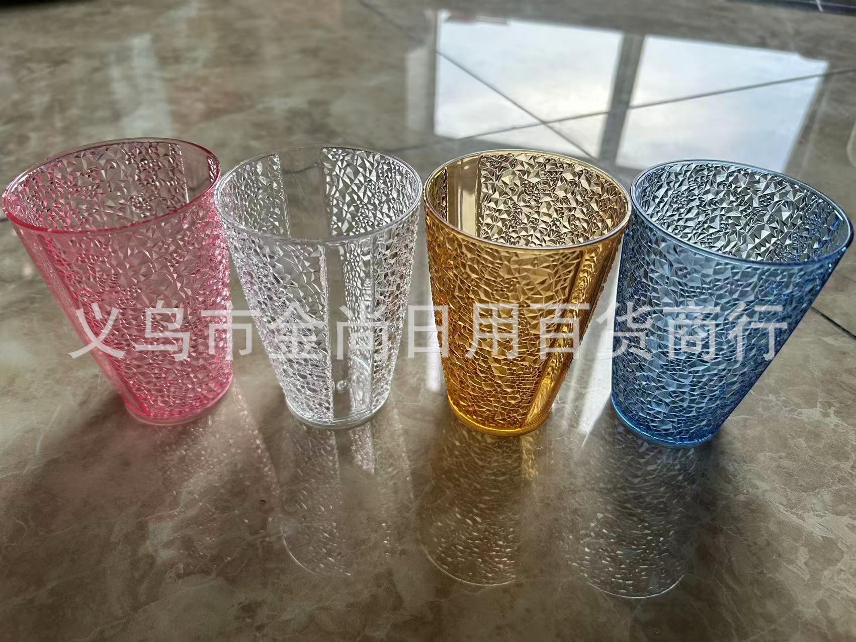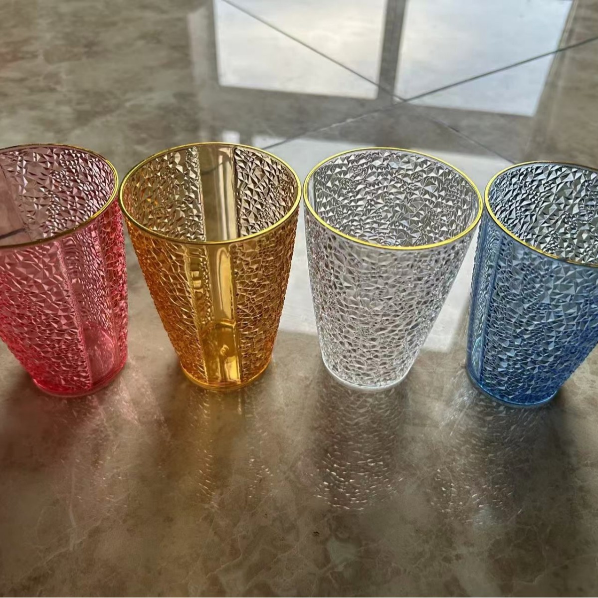 多彩水纹饮料杯刷牙杯口杯带金边创意杯子外贸塑料杯混色口杯简装